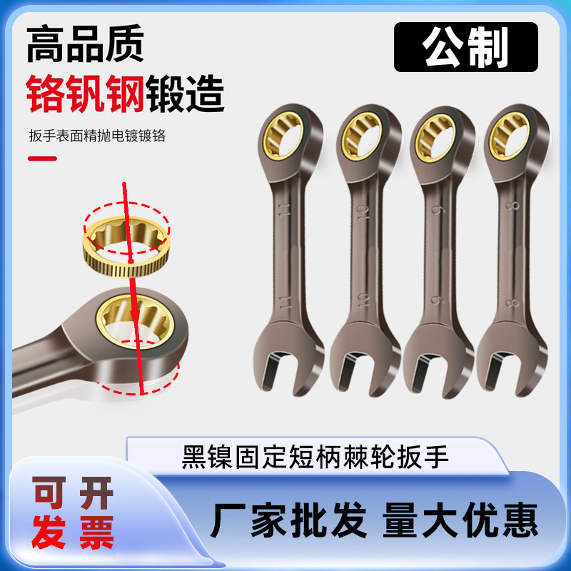 짧은 손잡이 블랙 니켈 고정 래칫 렌치 미니 오픈 매화 이중 목적 렌치 양방향 노동 절약 자동 수리 하드웨어 렌치