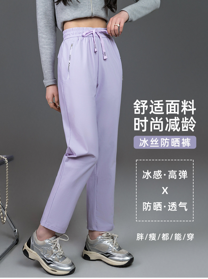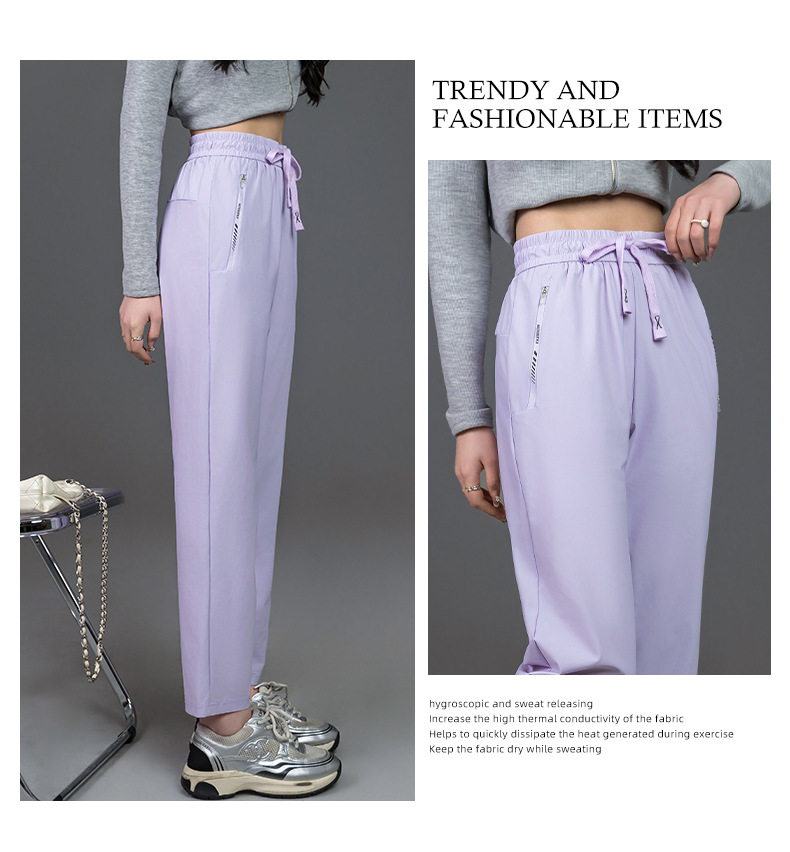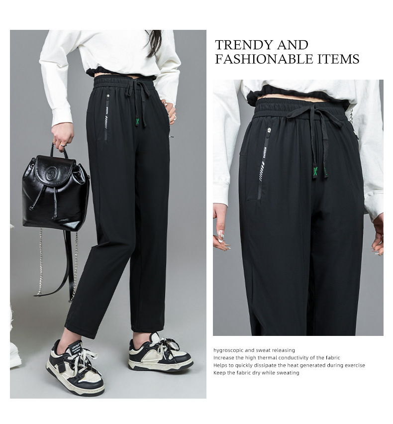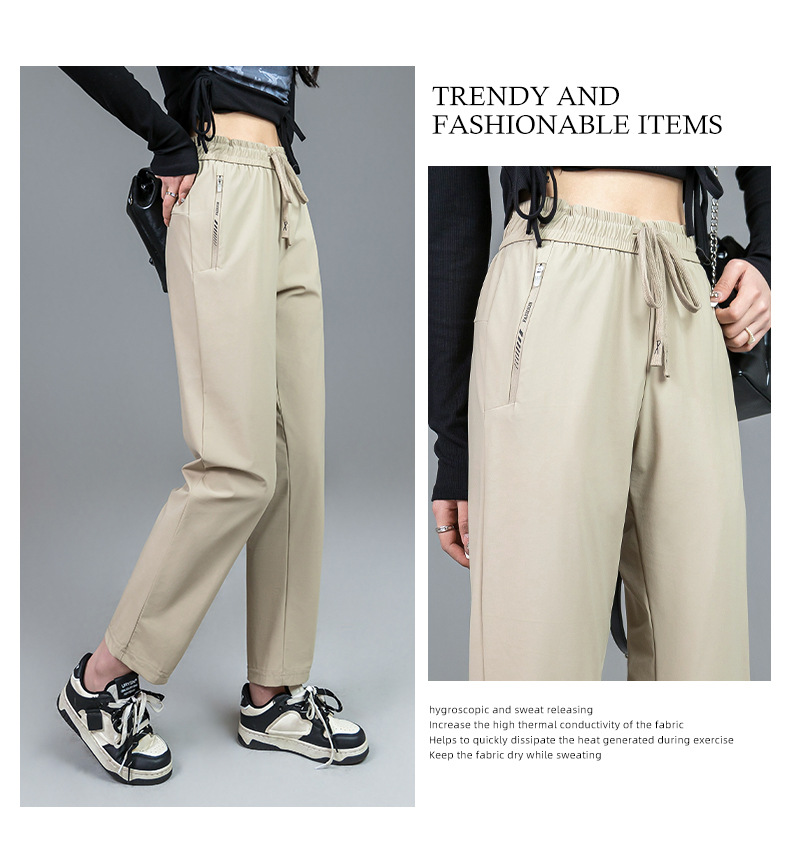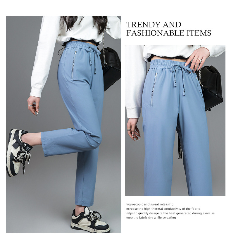 BJ2221 아이스 실크 빠른 건조 바지 캐주얼 바지 여성 여름 얇은 평면 다리 태양 보호 스포츠 바지 느슨한 슬리밍 플러스 사이즈 지방