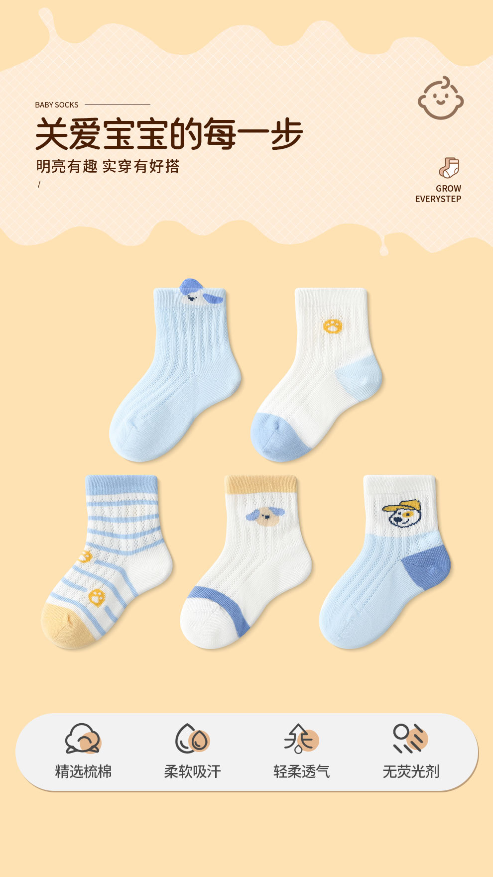 여름 새 소년 양말 만화 블루 아기 양말 짧은 튜브 대형 메쉬 순수 코튼 아기 양말 도매스토어 가기