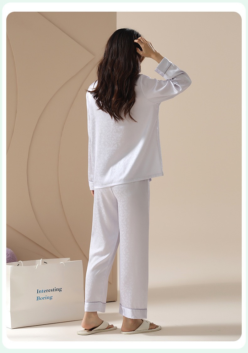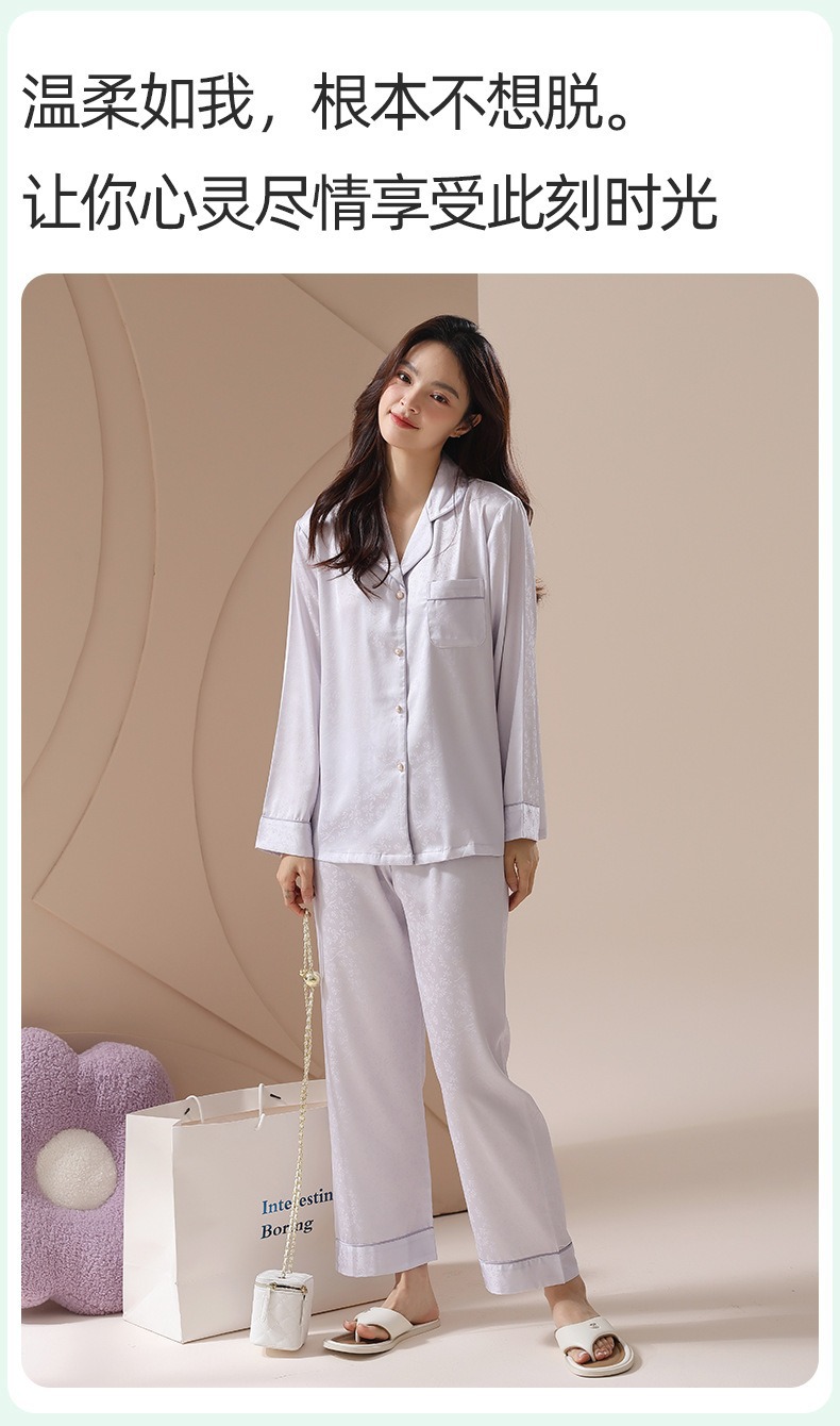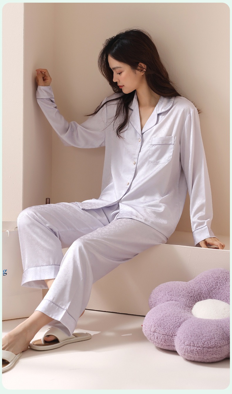 [아이스실크] 봄 얼음 실크 잠옷 여성 중국식 얇은 인조 실크 잠옷 여성 홈웨어 세트스토어 가기
