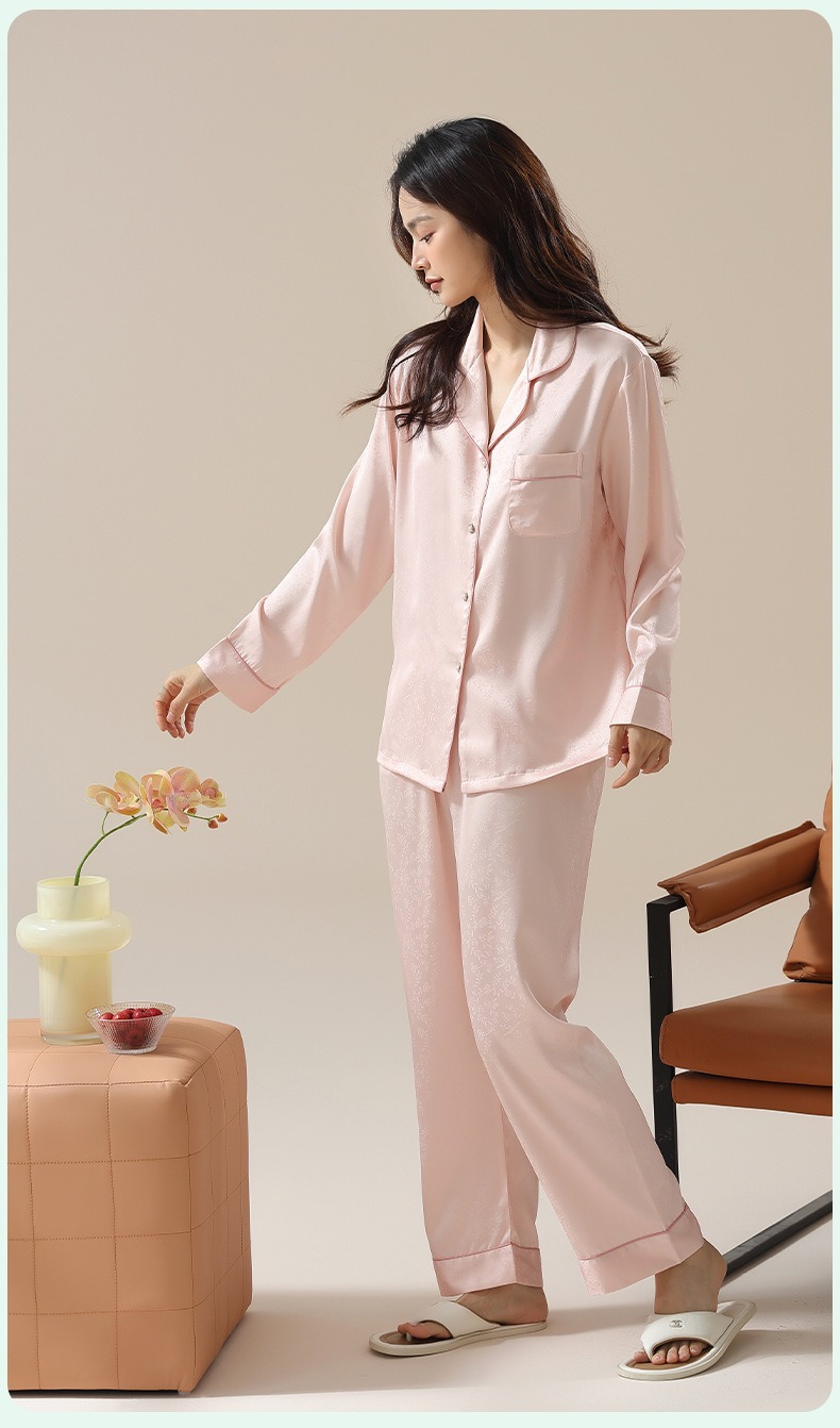 [아이스실크] 봄 얼음 실크 잠옷 여성 중국식 얇은 인조 실크 잠옷 여성 홈웨어 세트