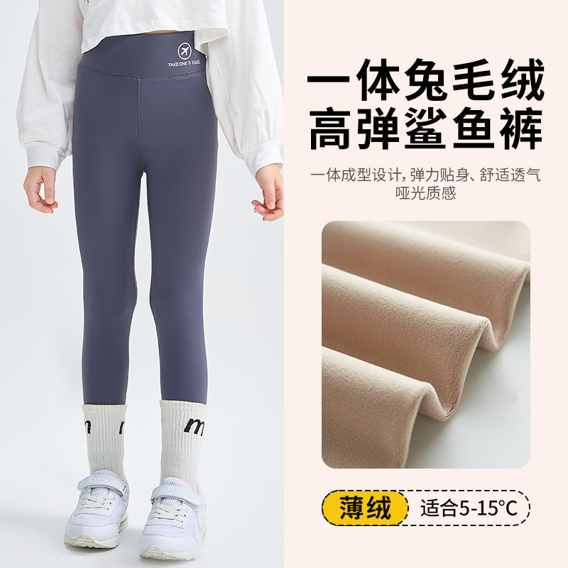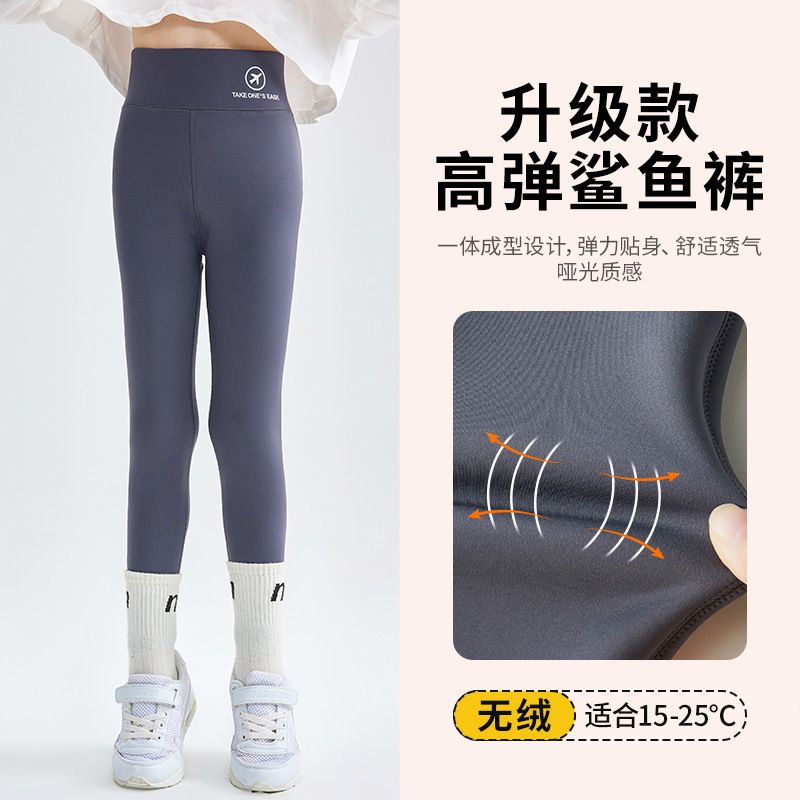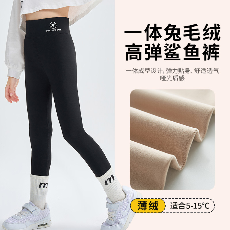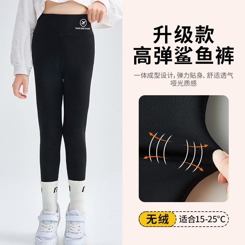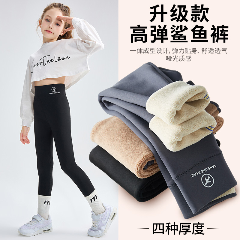 소녀 레깅스 가을/겨울 기모 두꺼운 외주 검은 소녀 상어 바지 어린이 2024 바비 바지