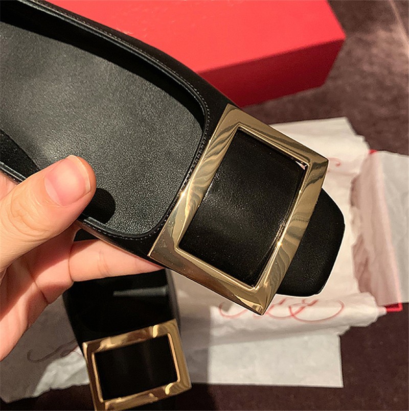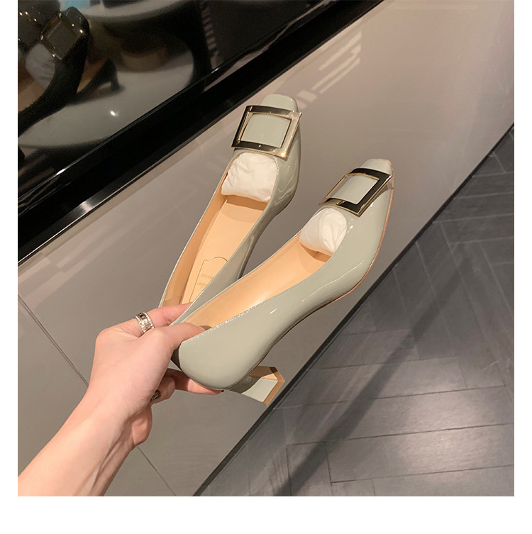 Wang Xiaodu Qingfeng과 사슴 R 스퀘어 버클 V 두꺼운 힐 신발 여성의 새로운 가죽 우울한 통근 하이힐 패션