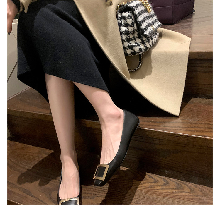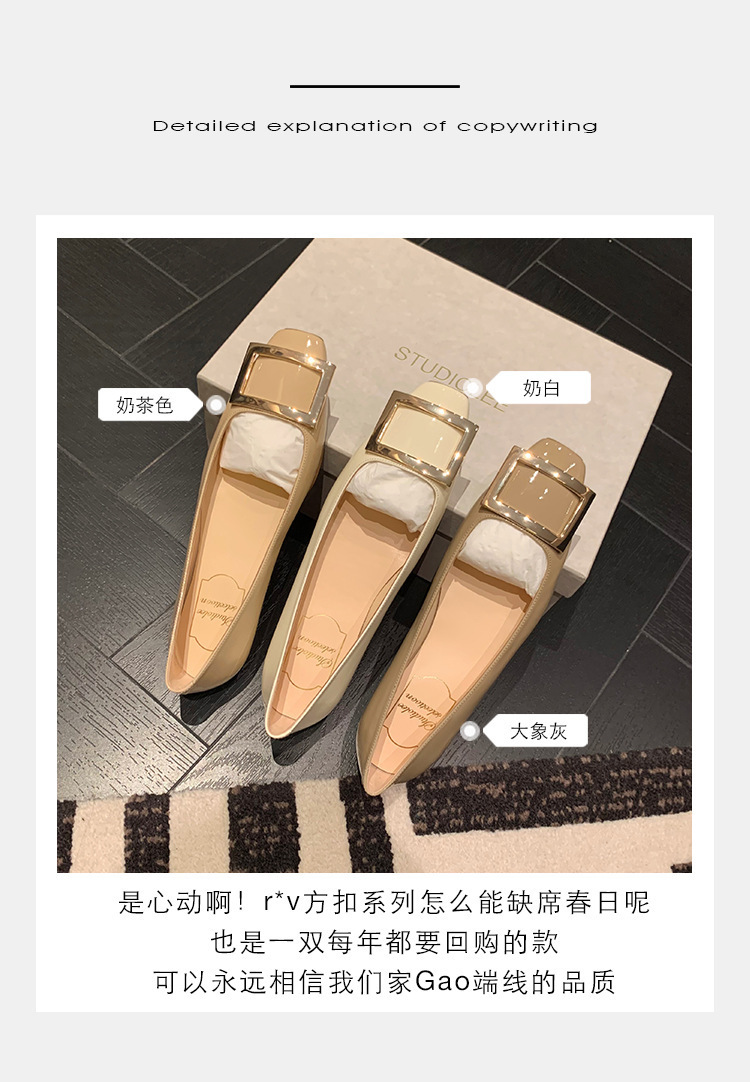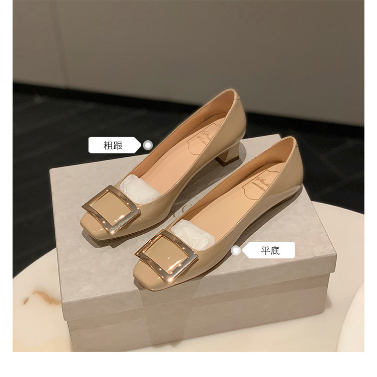 Wang Xiaodu Qingfeng과 사슴 R 스퀘어 버클 V 두꺼운 힐 신발 여성의 새로운 가죽 우울한 통근 하이힐 패션스토어 가기