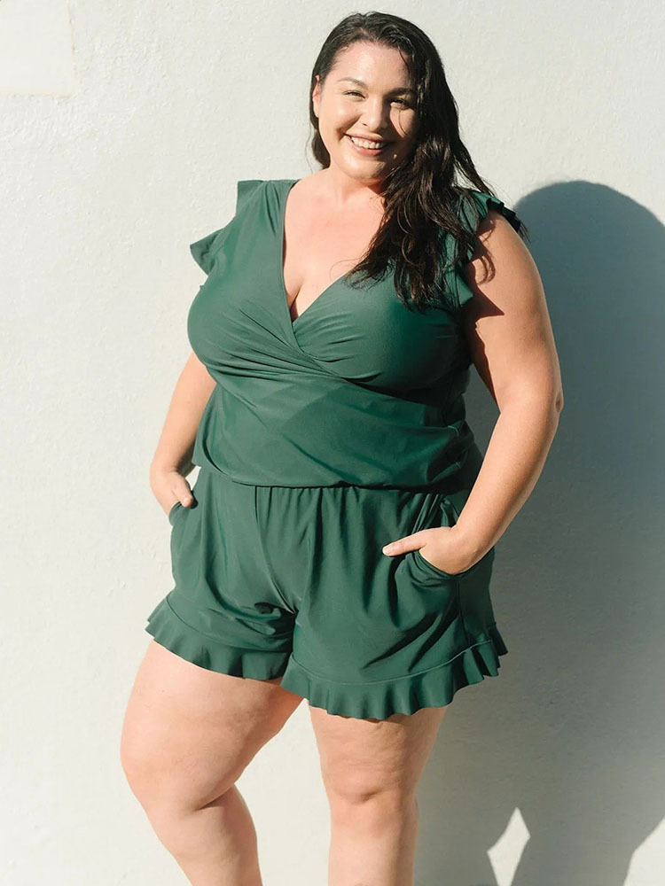 [라이닝이 달린 가슴 패드가있는 원피스 수영복] 2024 솔리드 컬러 플러스 사이즈 수영복 수영복 해변 휴일 보수 수영스토어 가기