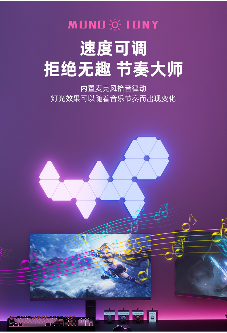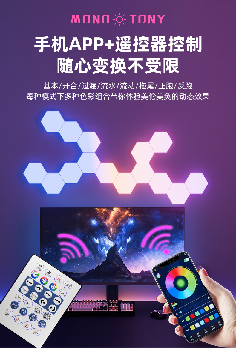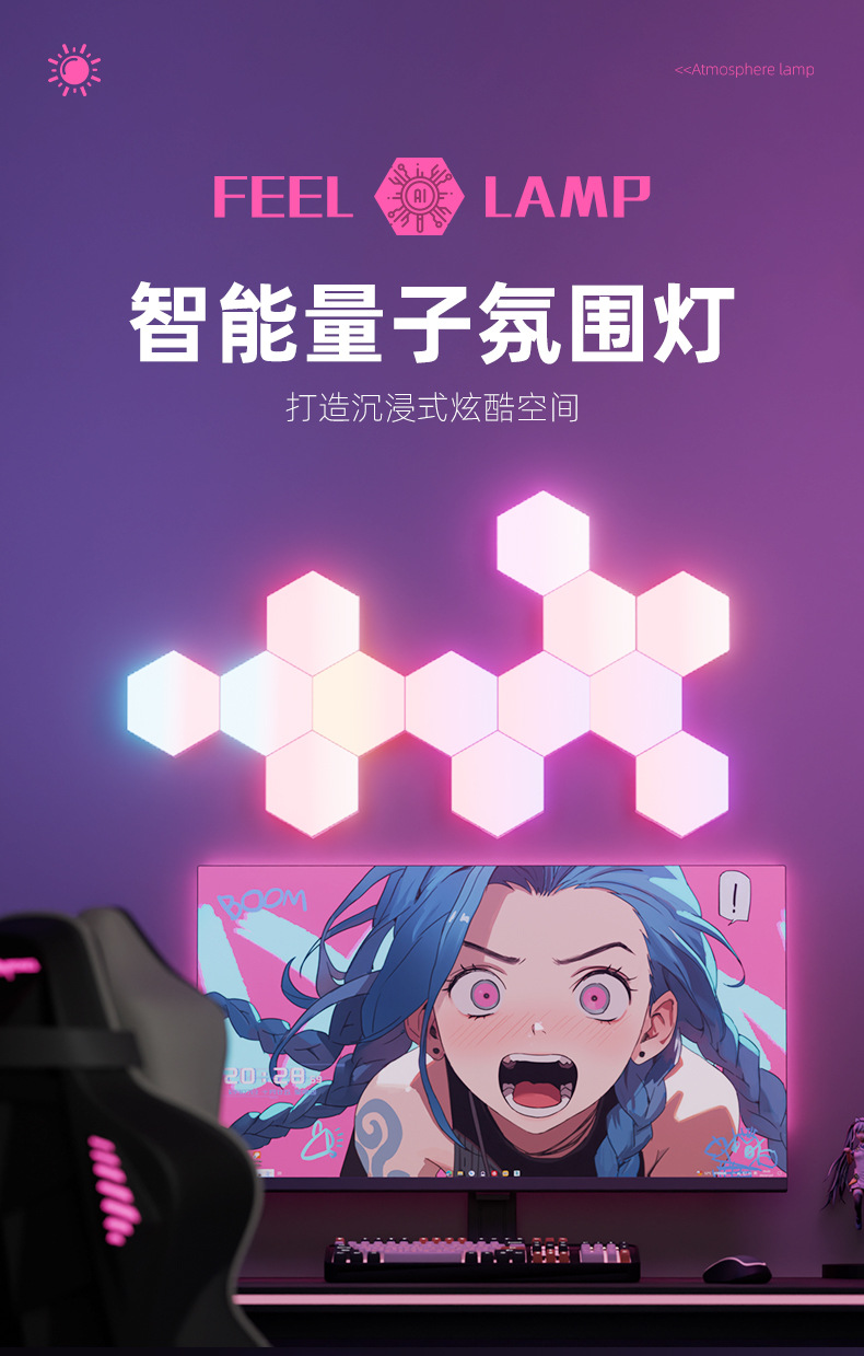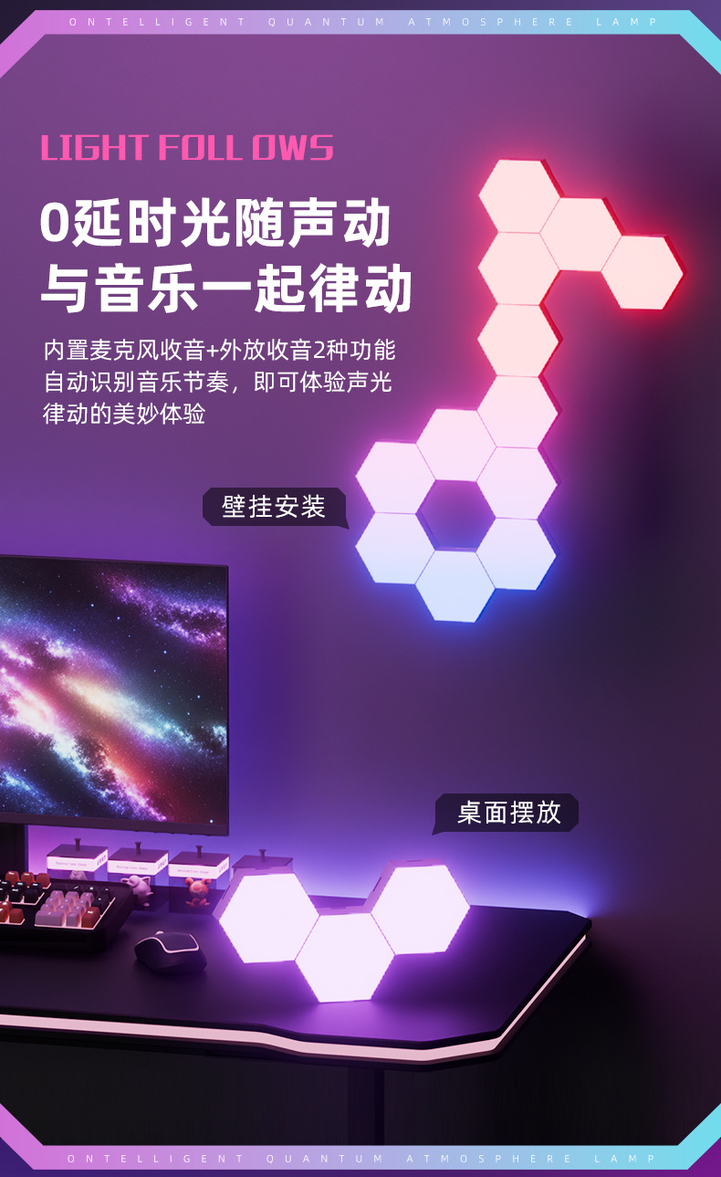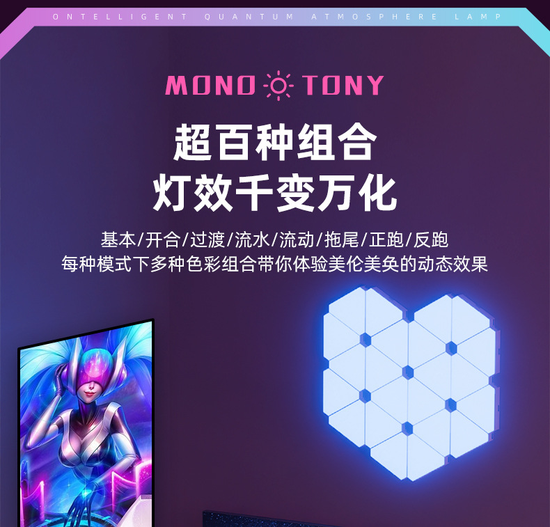 e스포츠 분위기 조명, 크로스보더 스마트 그래피티 WIFI 퀀텀 라이트, 리모컨 음성인식 조명, 벽등