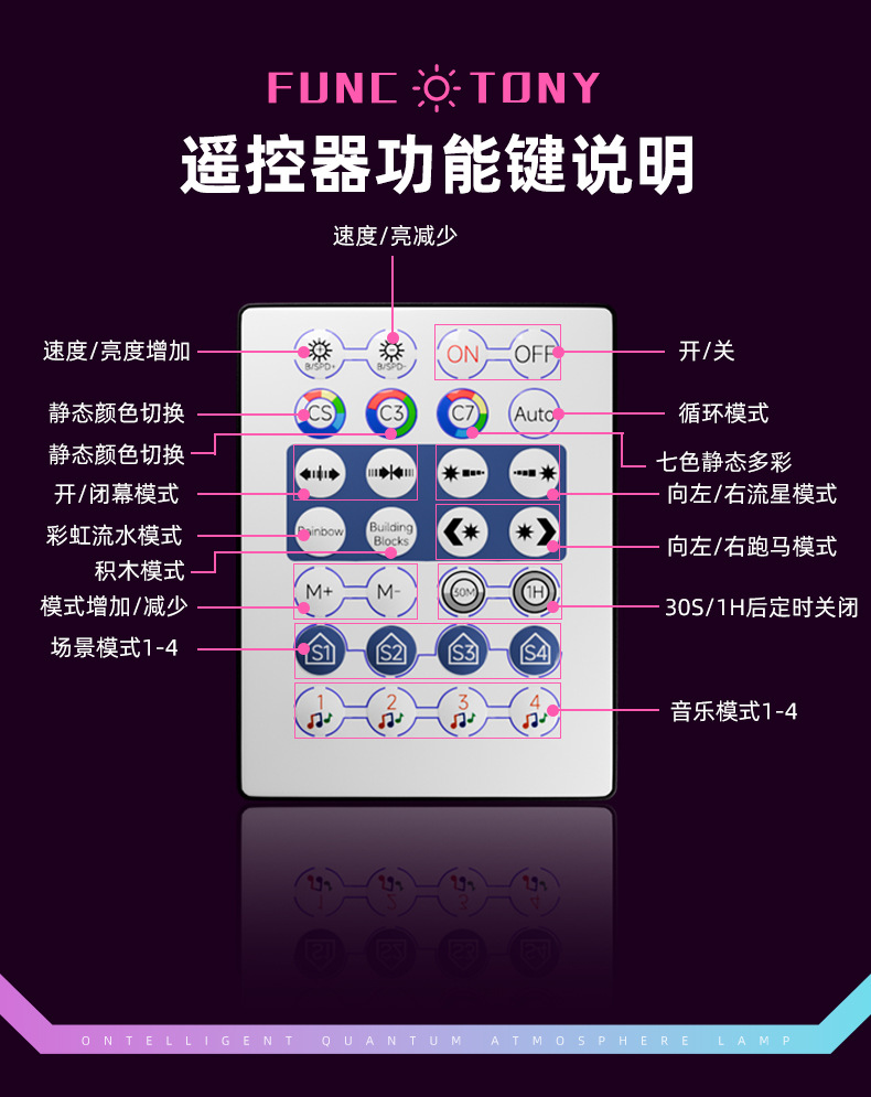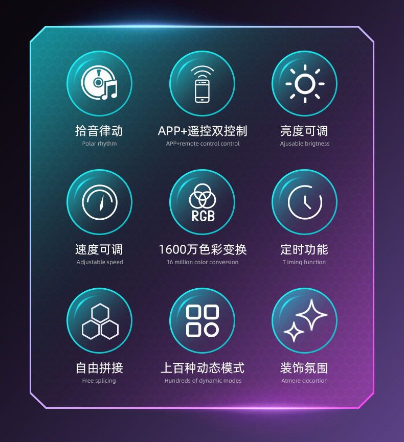 • 8 조명 + 원격 제어 + 매직 컬러 + 리듬