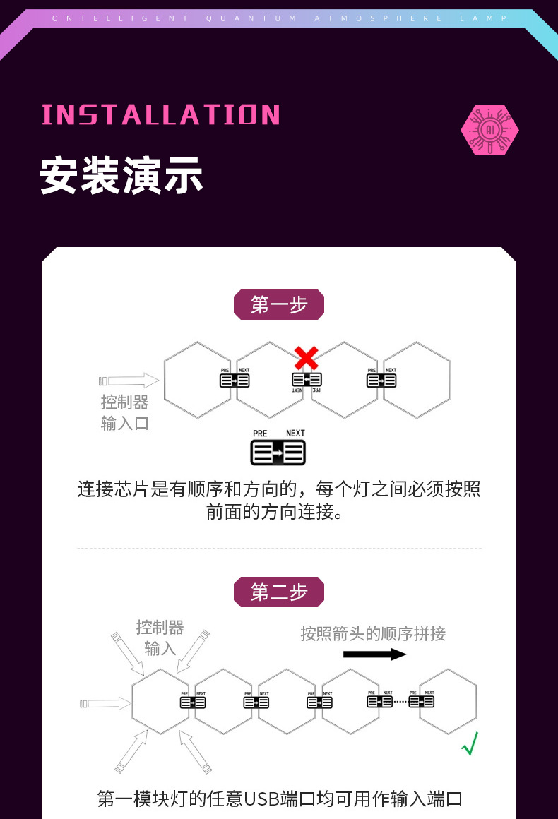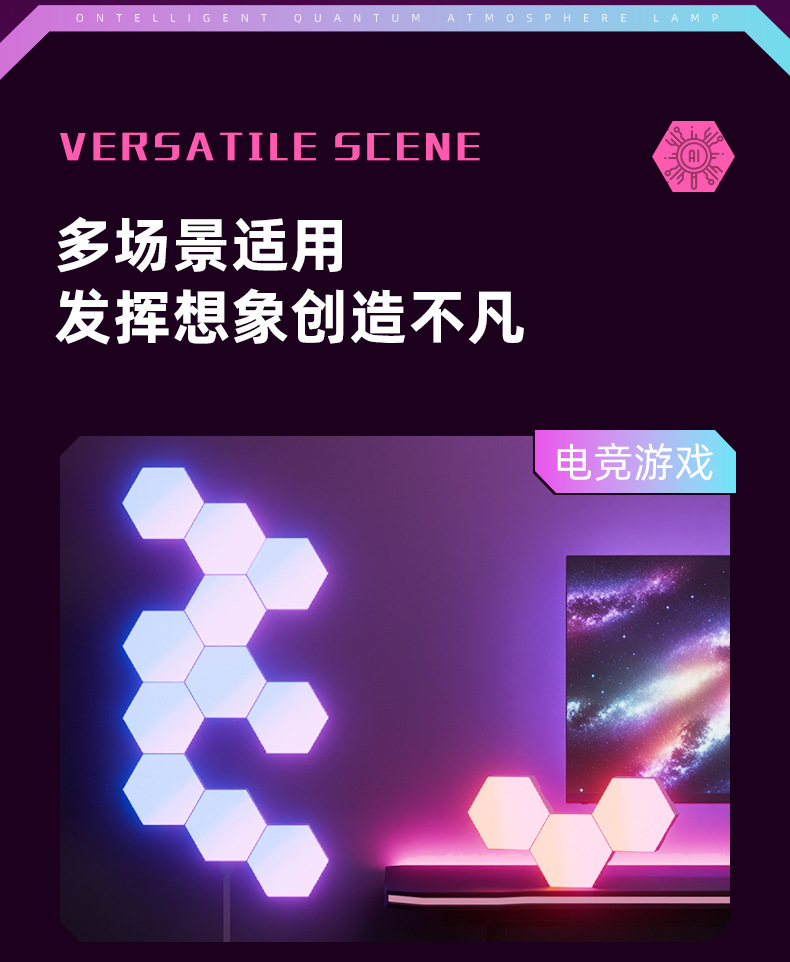 e스포츠 분위기 조명, 크로스보더 스마트 그래피티 WIFI 퀀텀 라이트, 리모컨 음성인식 조명, 벽등스토어 가기