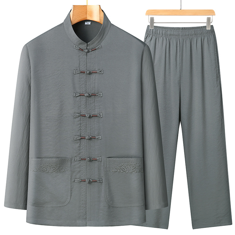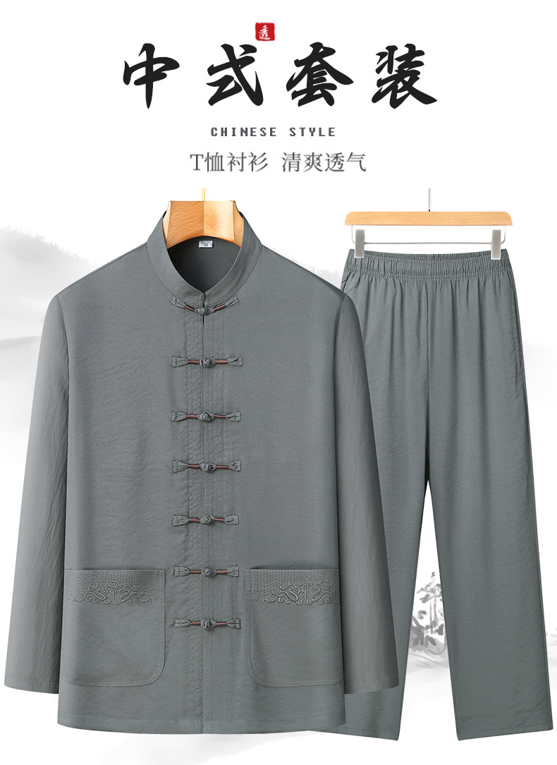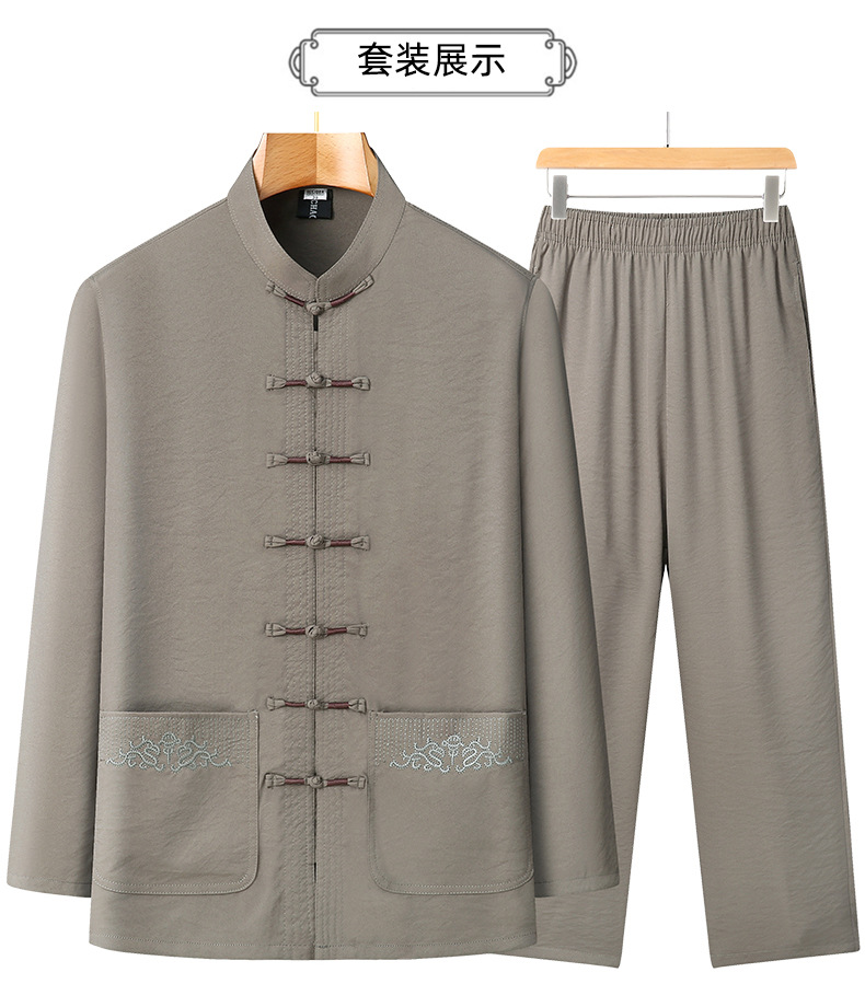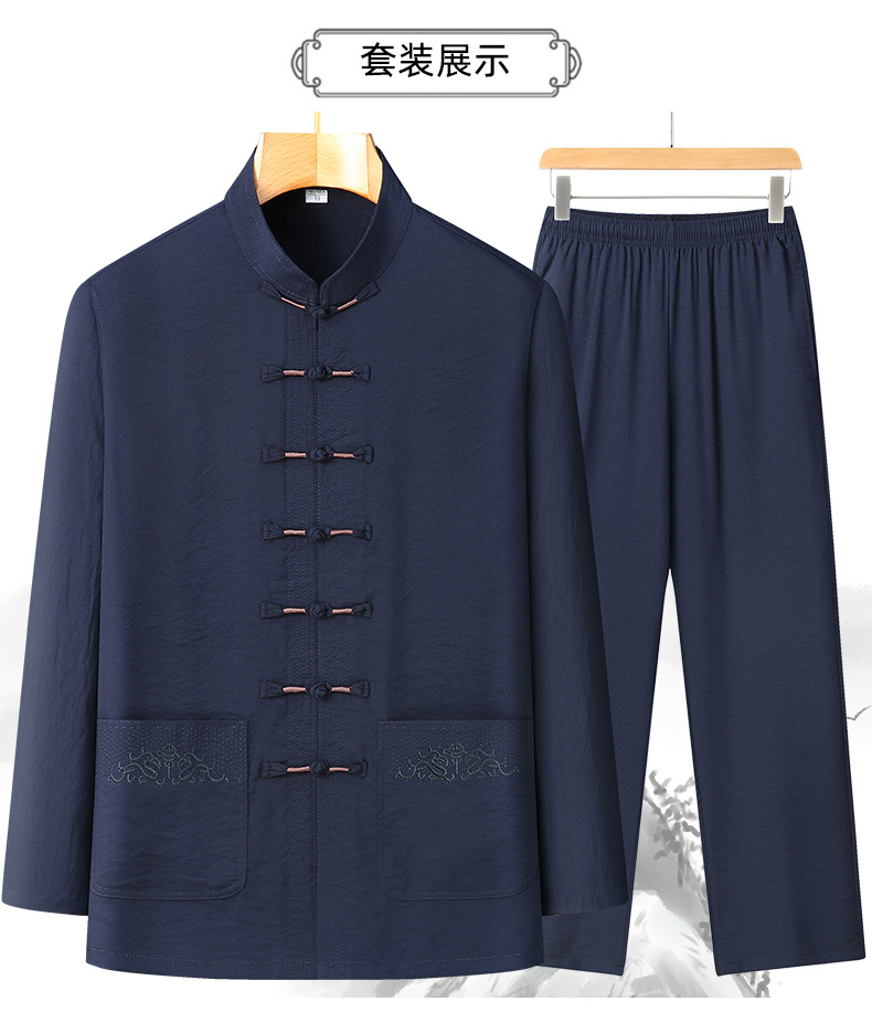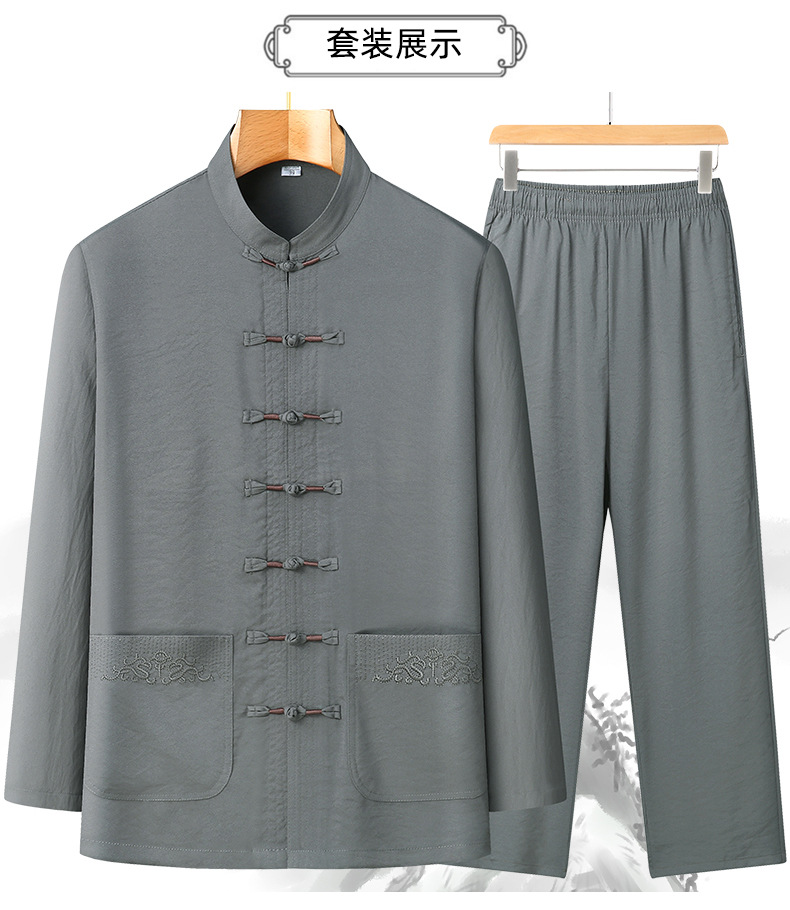 중년 및 노인 탕 세트 남성 긴팔 스탠드 칼라 세트 노인 봄과 여름 아빠의 중국식 옷 할아버지의 옷