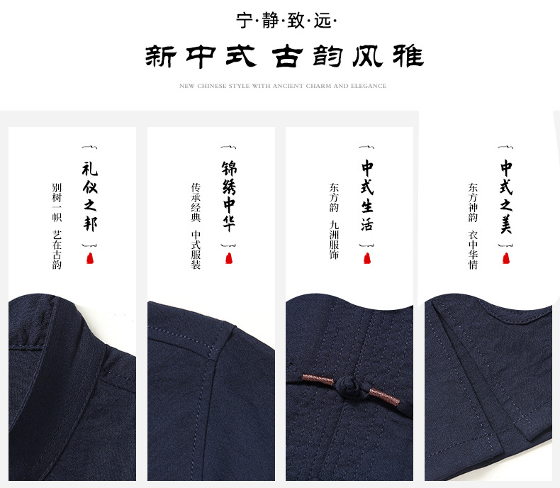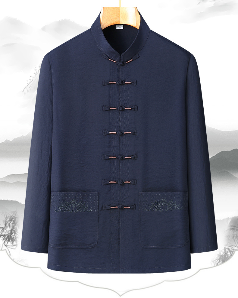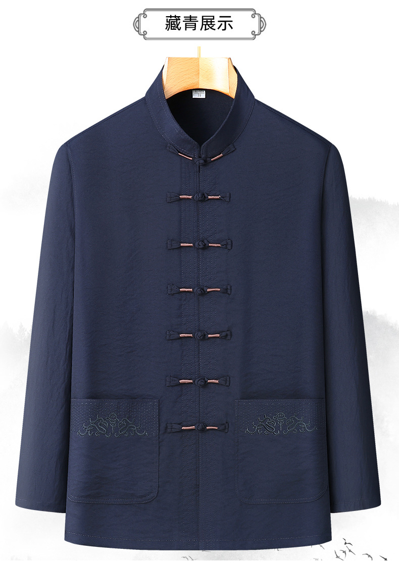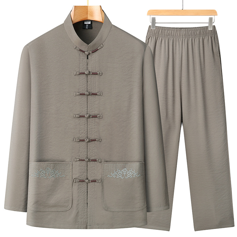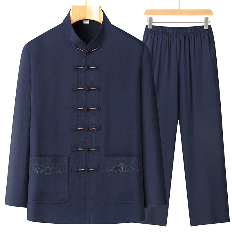 중년 및 노인 탕 세트 남성 긴팔 스탠드 칼라 세트 노인 봄과 여름 아빠의 중국식 옷 할아버지의 옷