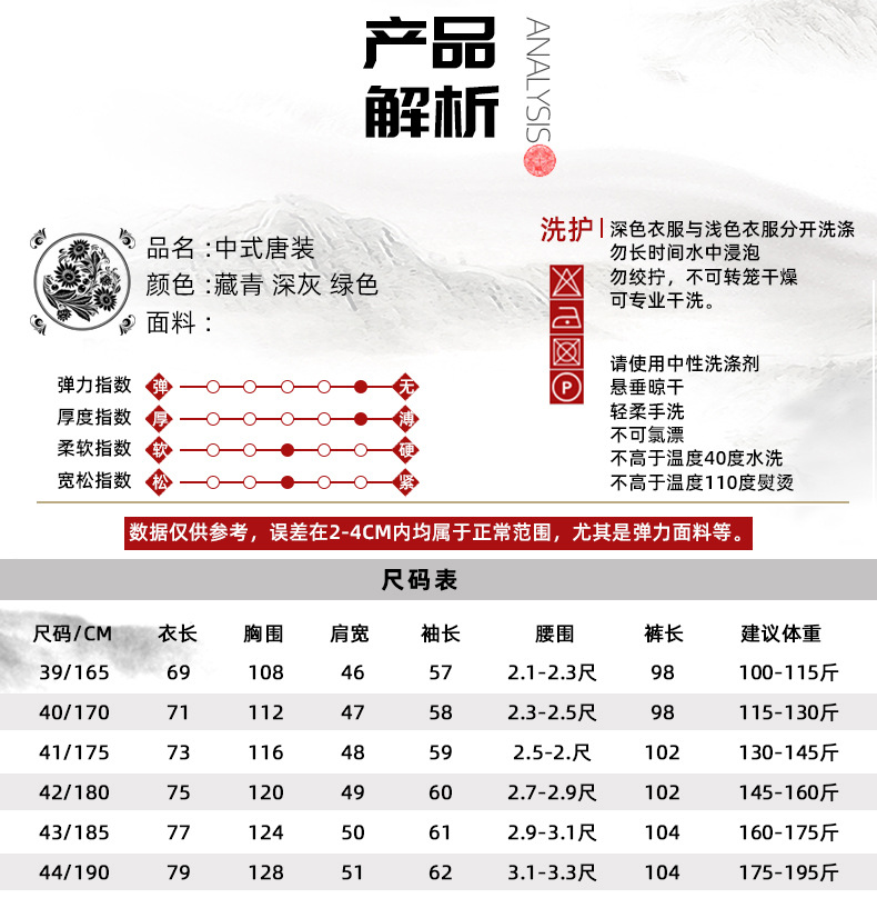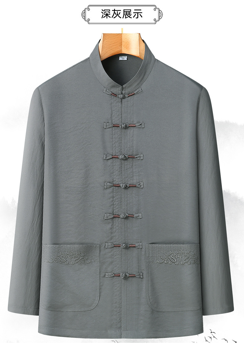 중년 및 노인 탕 세트 남성 긴팔 스탠드 칼라 세트 노인 봄과 여름 아빠의 중국식 옷 할아버지의 옷스토어 가기
