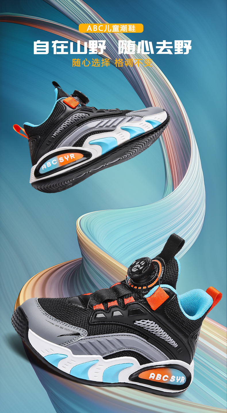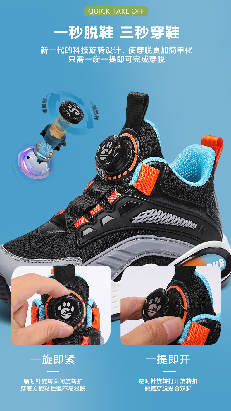 2024 인기있는 어린이 소년 운동화 메쉬 통기성 캐주얼 경량 어린이 운동화 회전 버튼 소년 신발스토어 가기