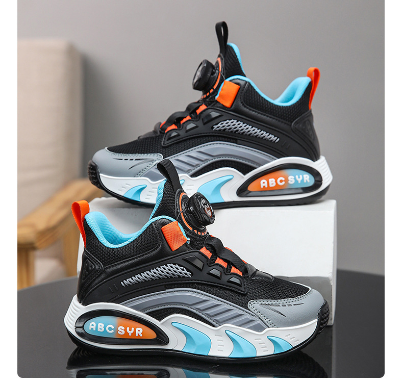 2024 인기있는 어린이 소년 운동화 메쉬 통기성 캐주얼 경량 어린이 운동화 회전 버튼 소년 신발