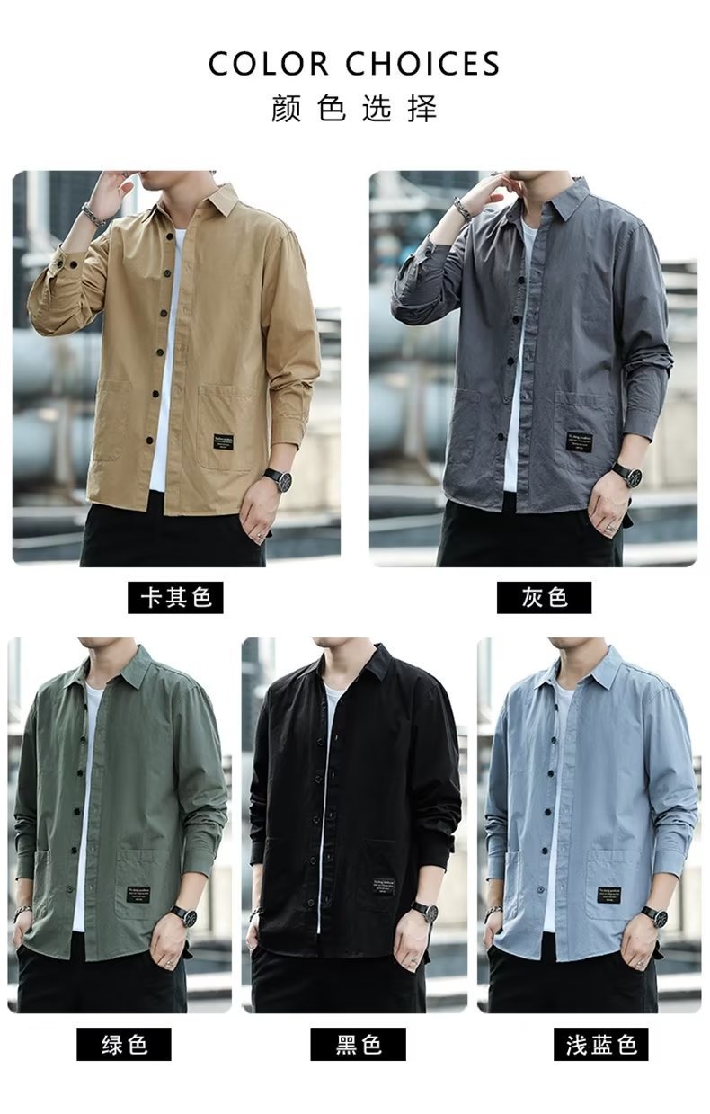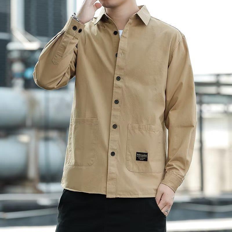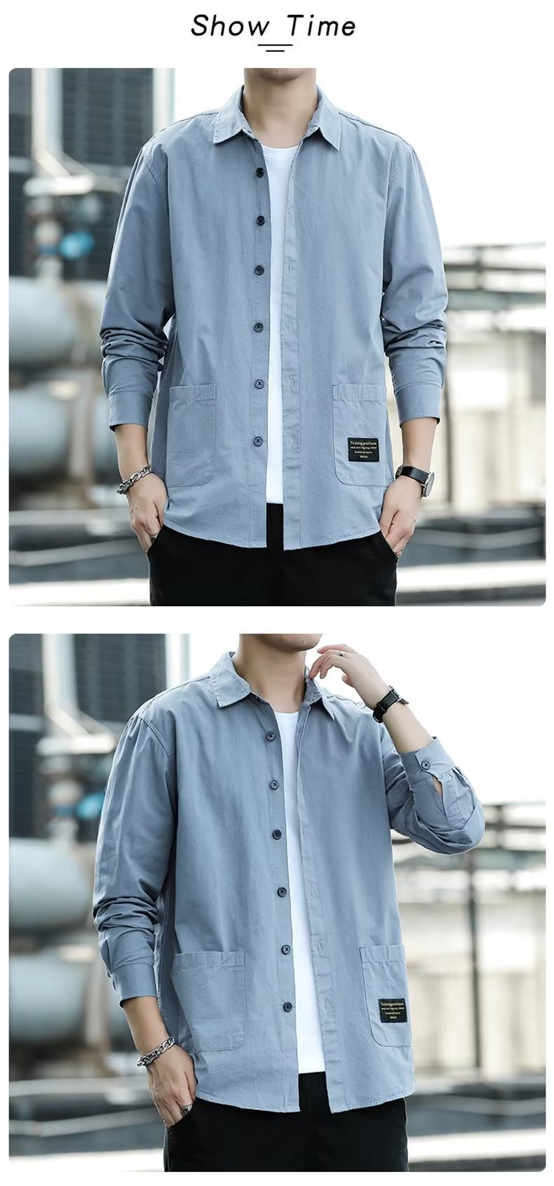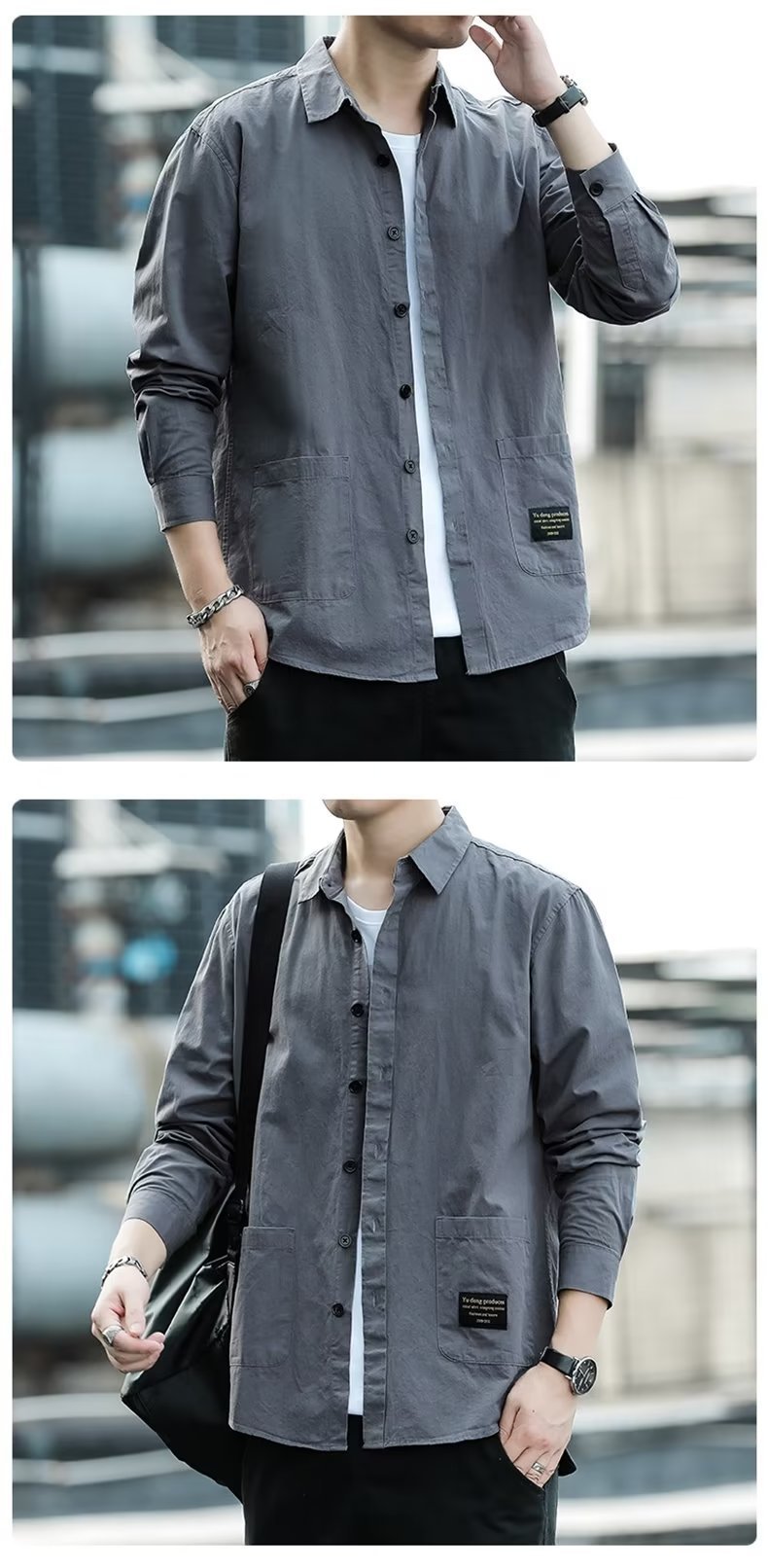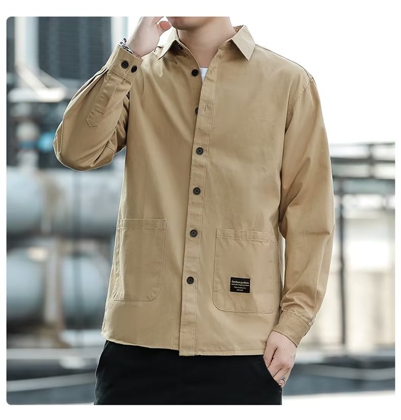 2024 새로운 남성 비 다림질 긴 소매 멀티 포켓 작업복 셔츠 남성용 셔츠 느슨한 탑 한국식 다목적 패션스토어 가기