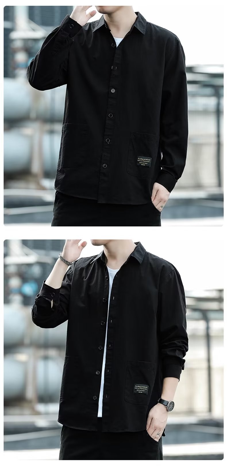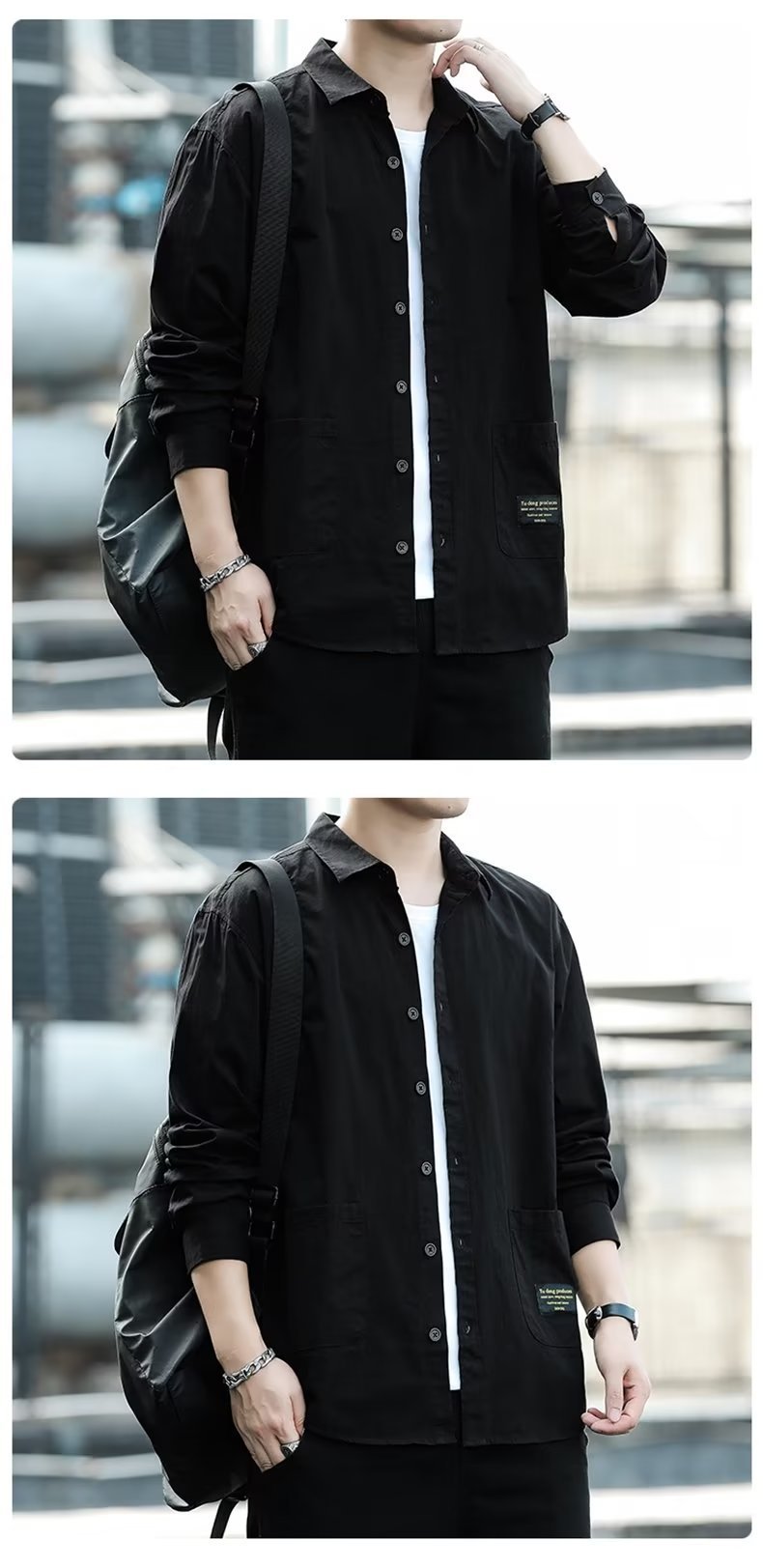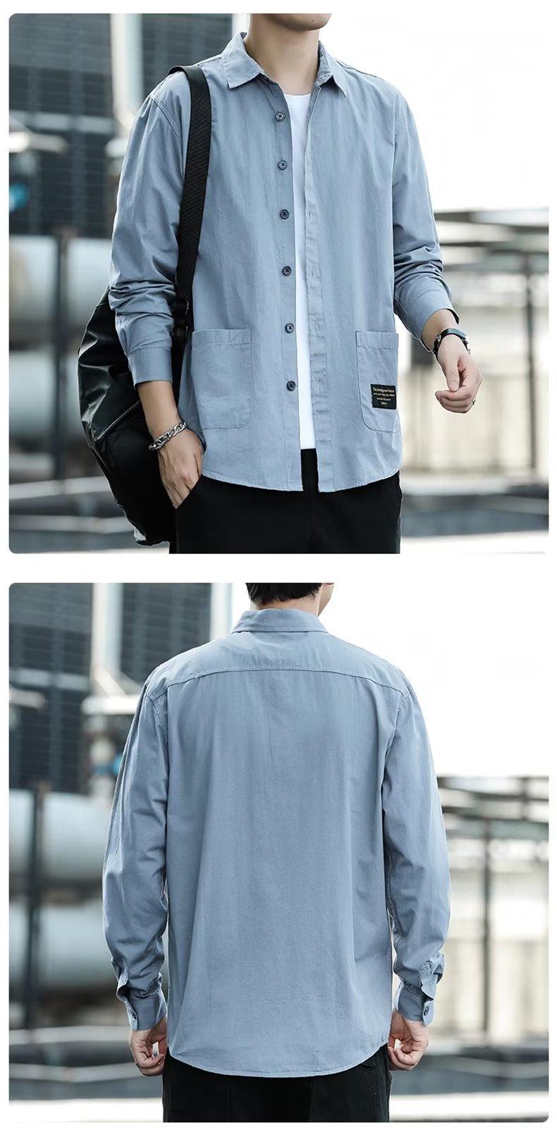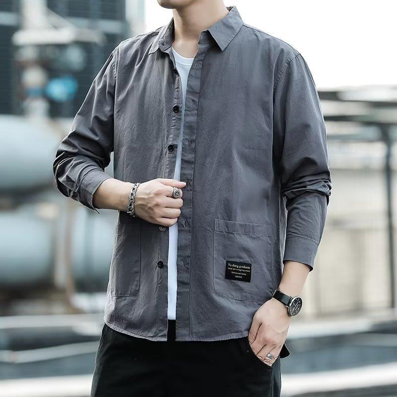 2024 새로운 남성 비 다림질 긴 소매 멀티 포켓 작업복 셔츠 남성용 셔츠 느슨한 탑 한국식 다목적 패션스토어 가기