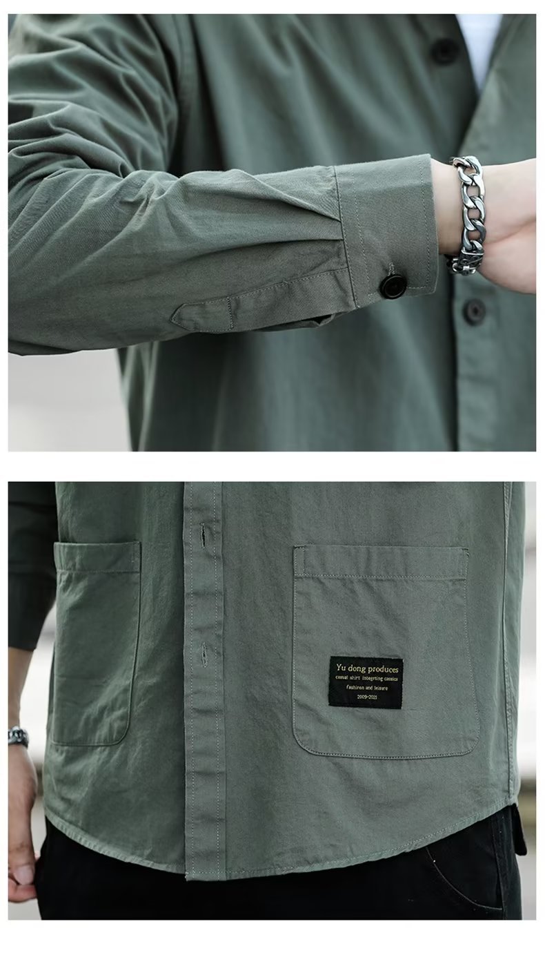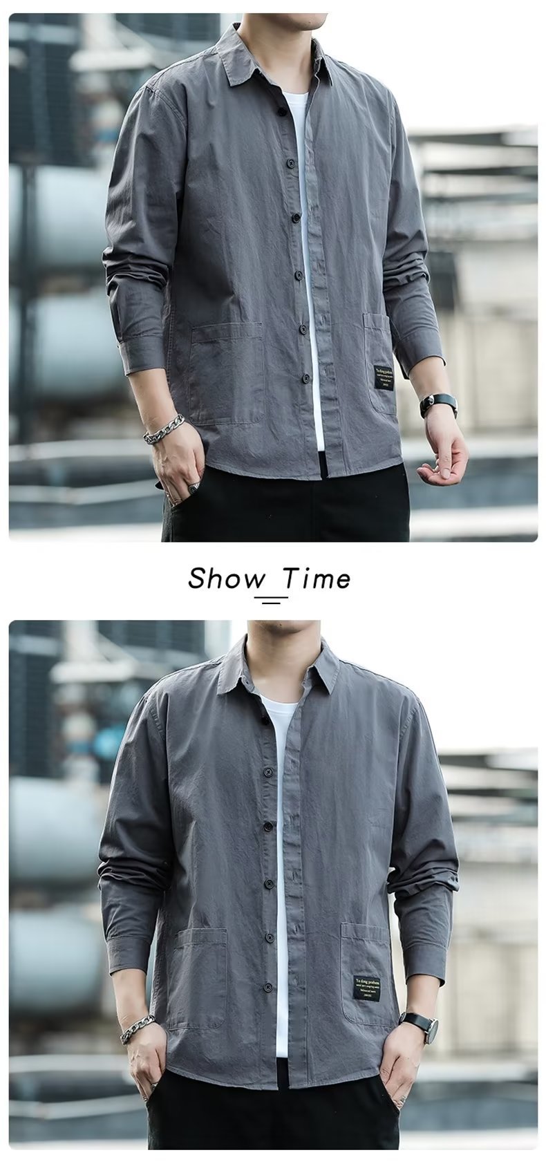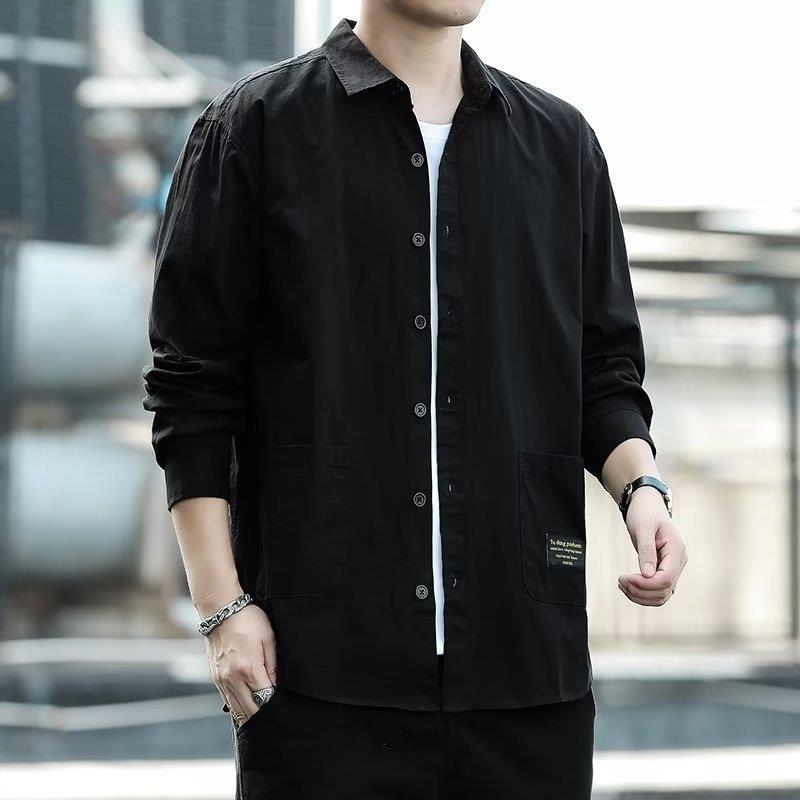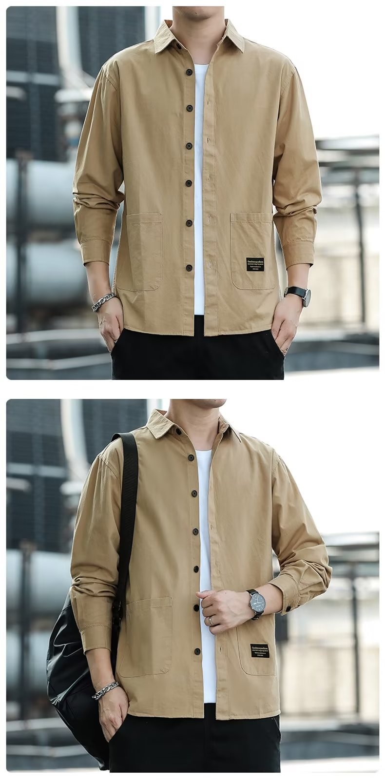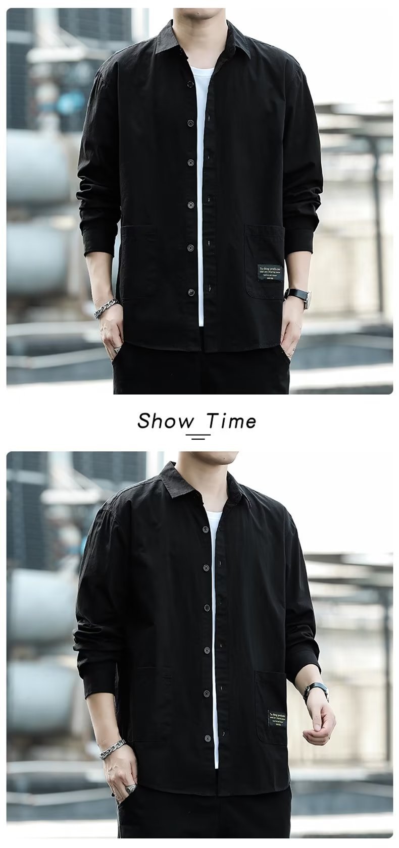 2024 새로운 남성 비 다림질 긴 소매 멀티 포켓 작업복 셔츠 남성용 셔츠 느슨한 탑 한국식 다목적 패션스토어 가기