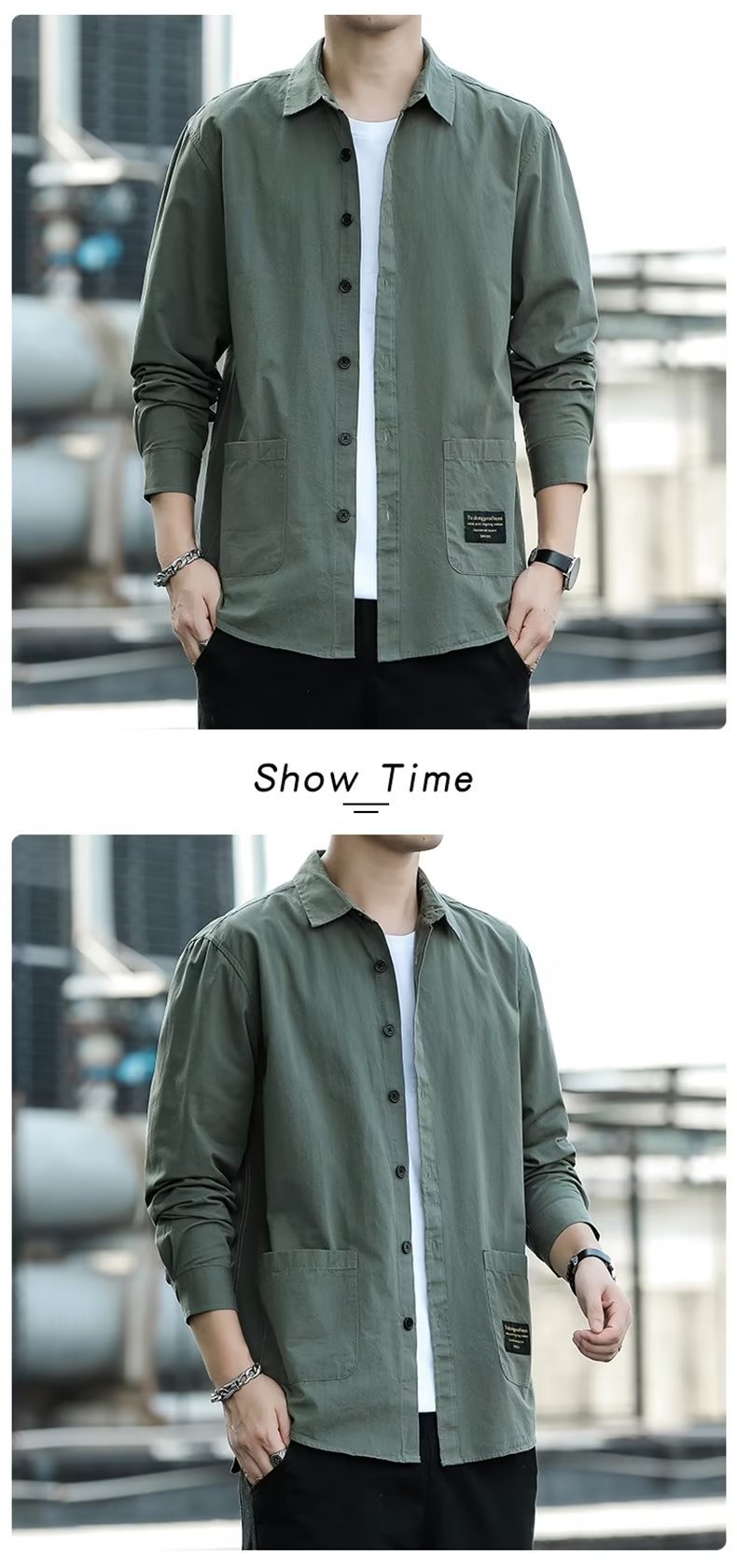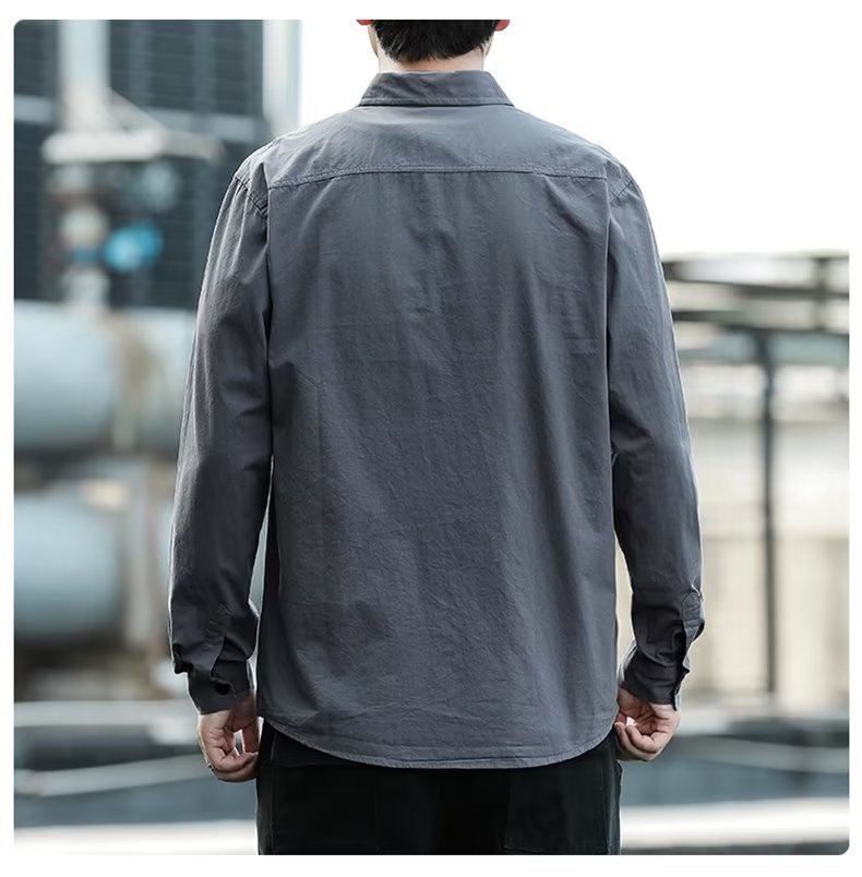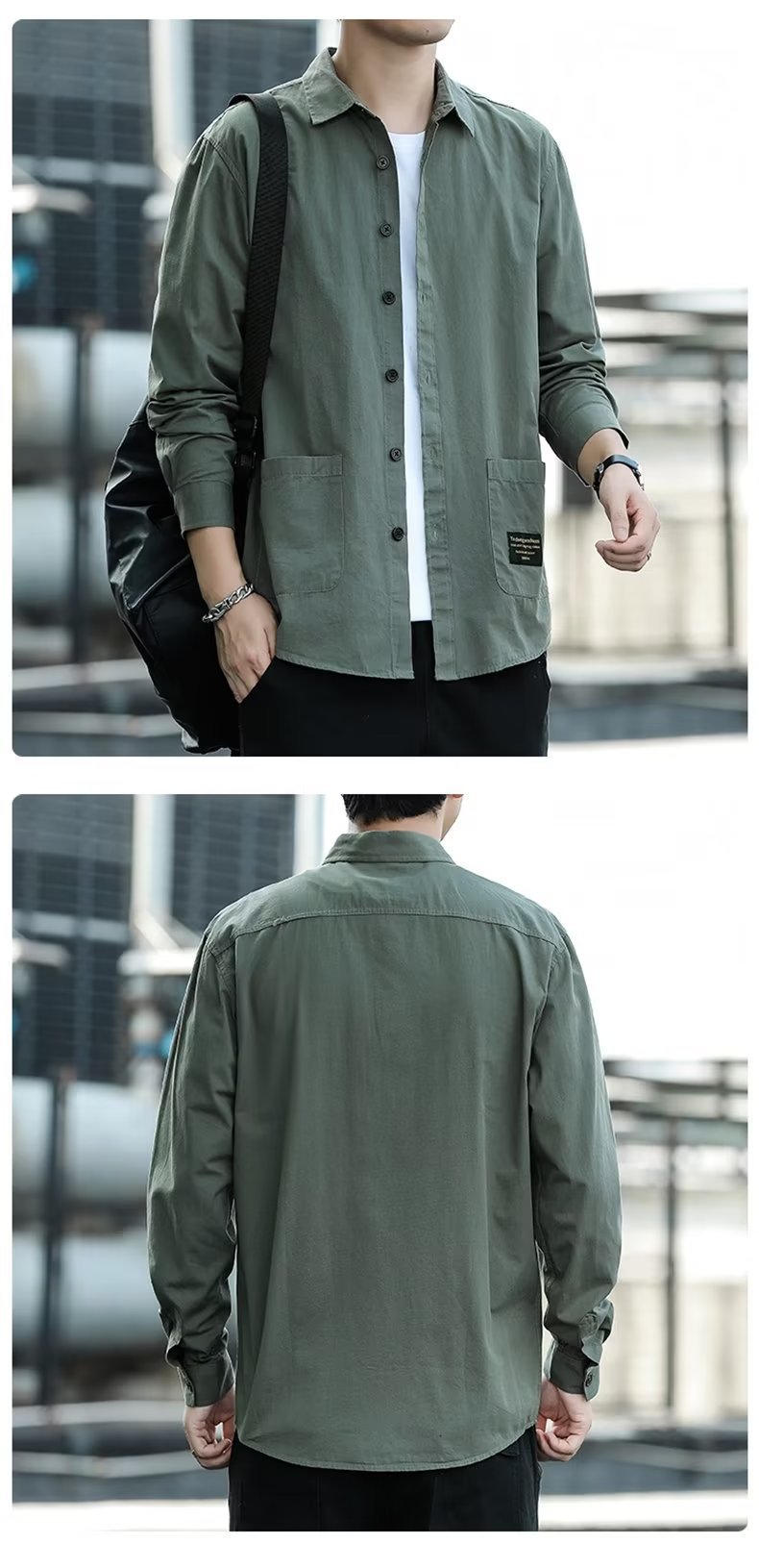 2024 새로운 남성 비 다림질 긴 소매 멀티 포켓 작업복 셔츠 남성용 셔츠 느슨한 탑 한국식 다목적 패션