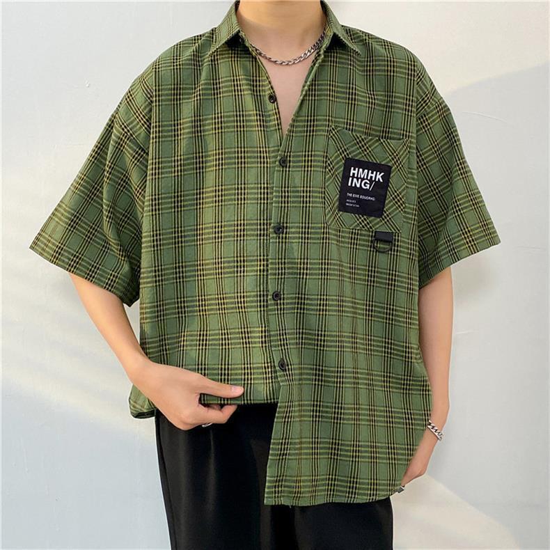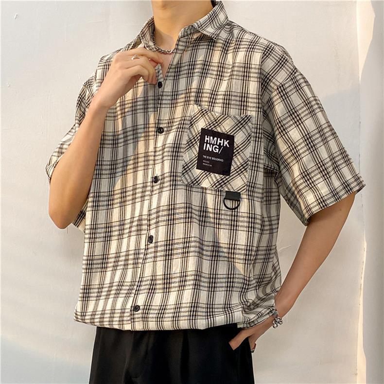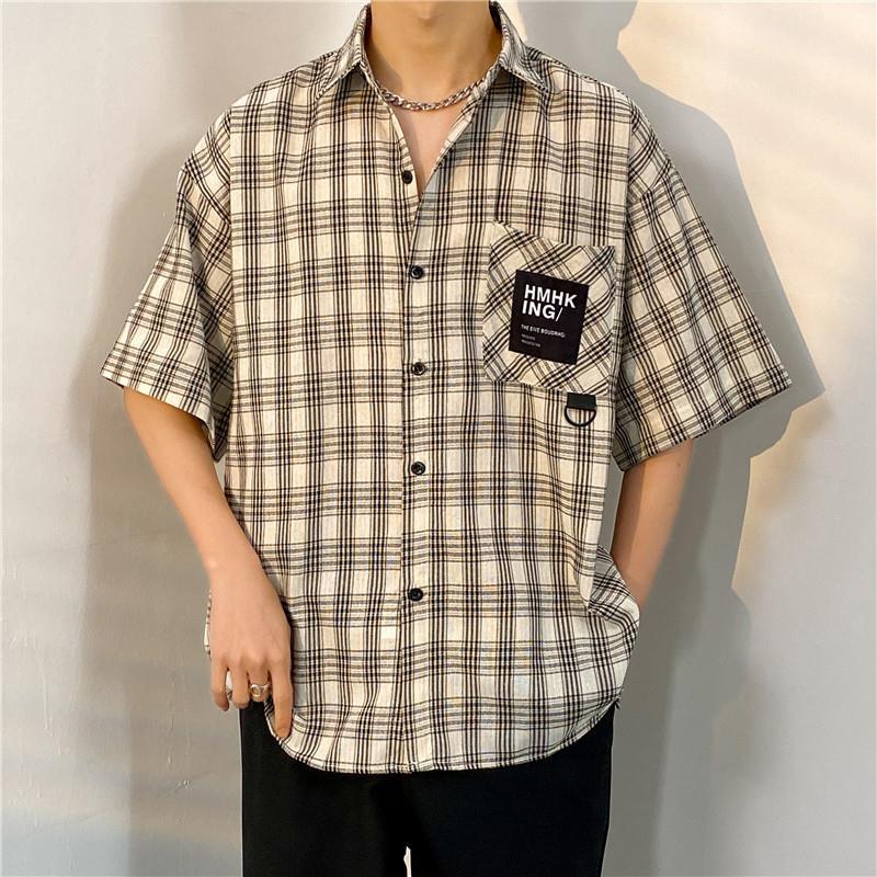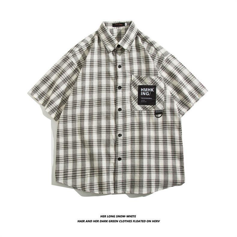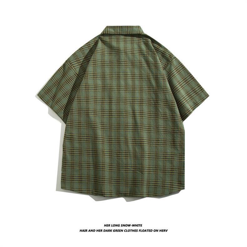 여름 반팔 남성 패션 브랜드 셔츠 체크 무늬 셔츠 2024 새로운 미국 복고풍 캐주얼 탑 코트스토어 가기