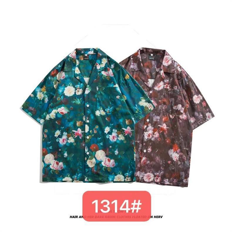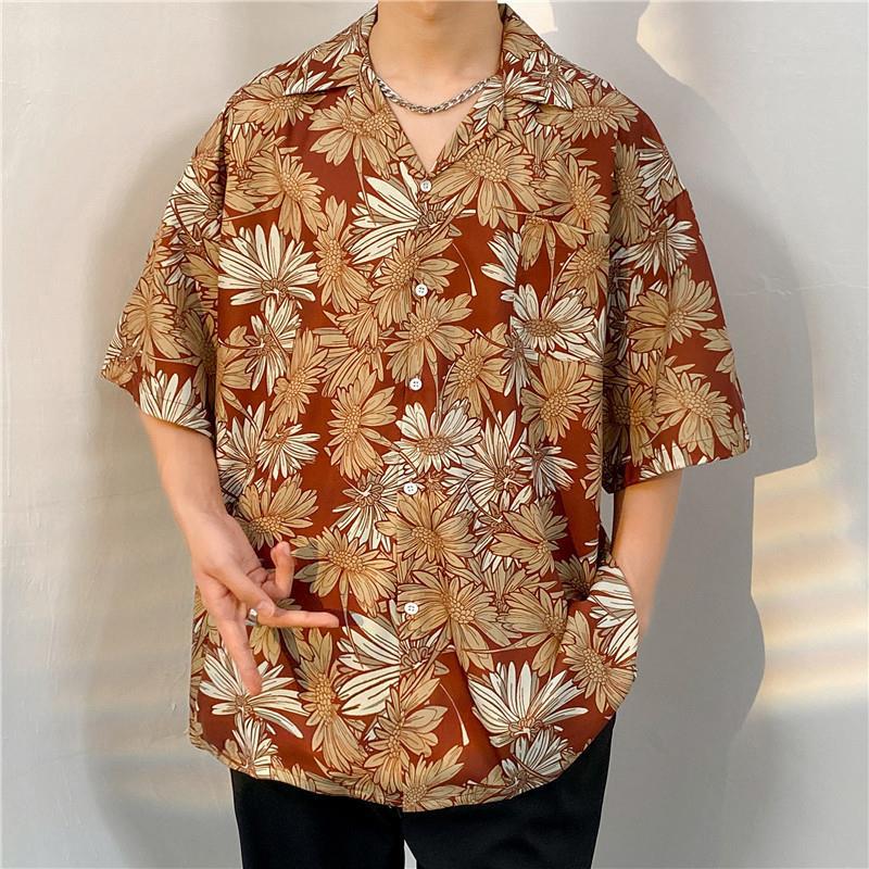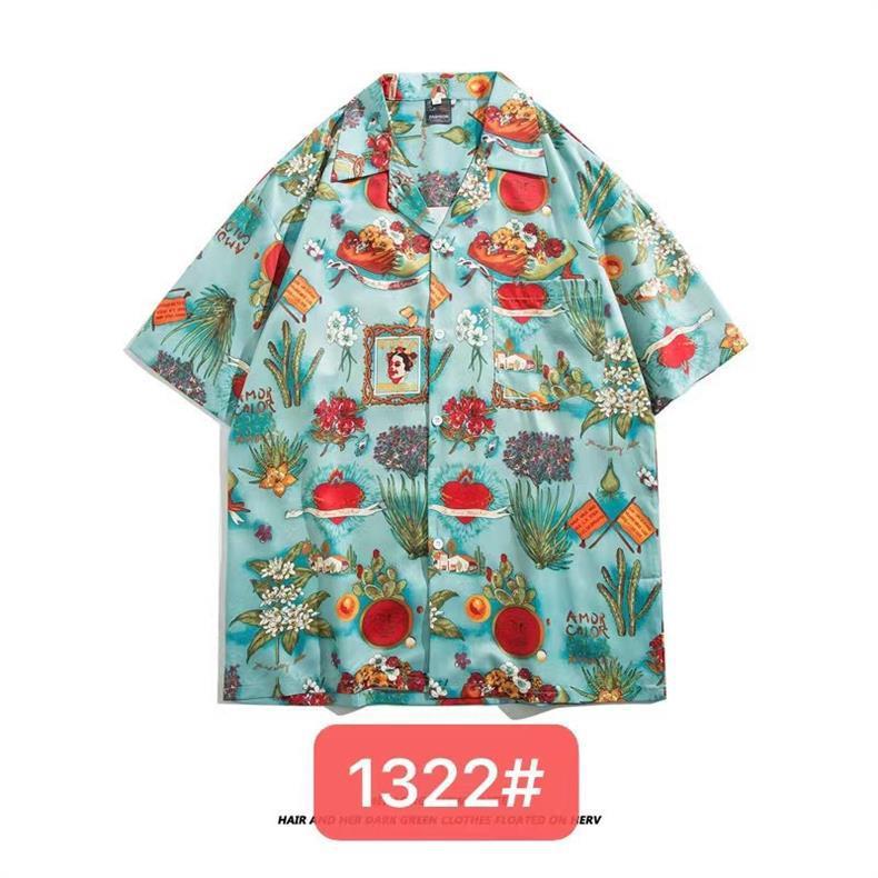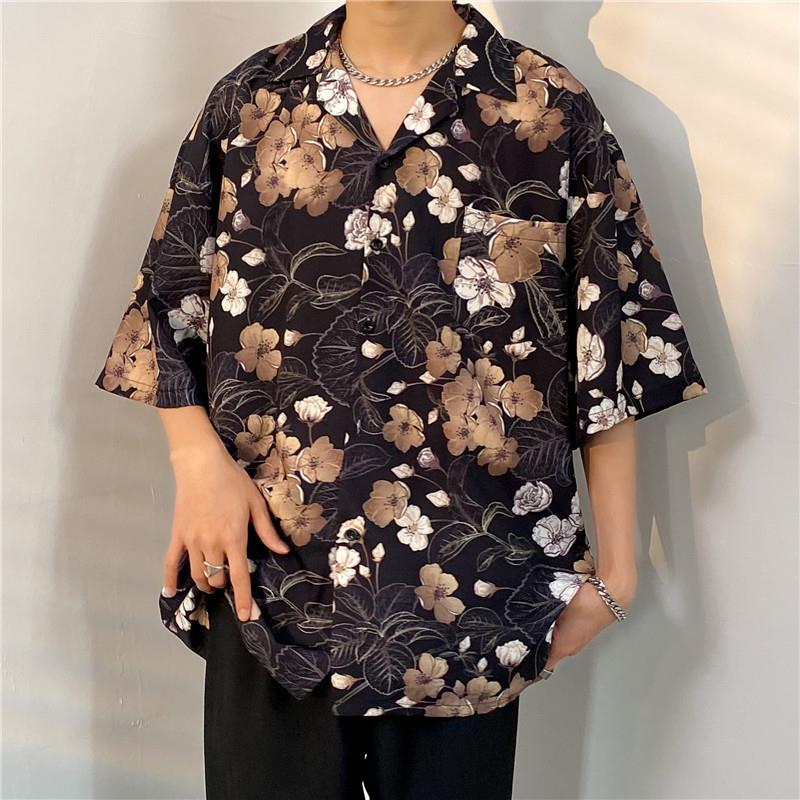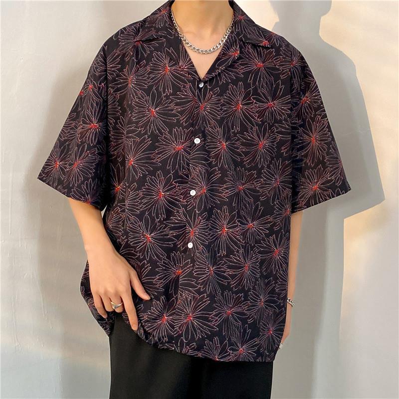 해골 꽃 플러스 사이즈 오래된 총 짧은 소매 쿠바 칼라 지방 꽃 셔츠 일본 복고풍 남성과 여성 태국 하와이 패션스토어 가기