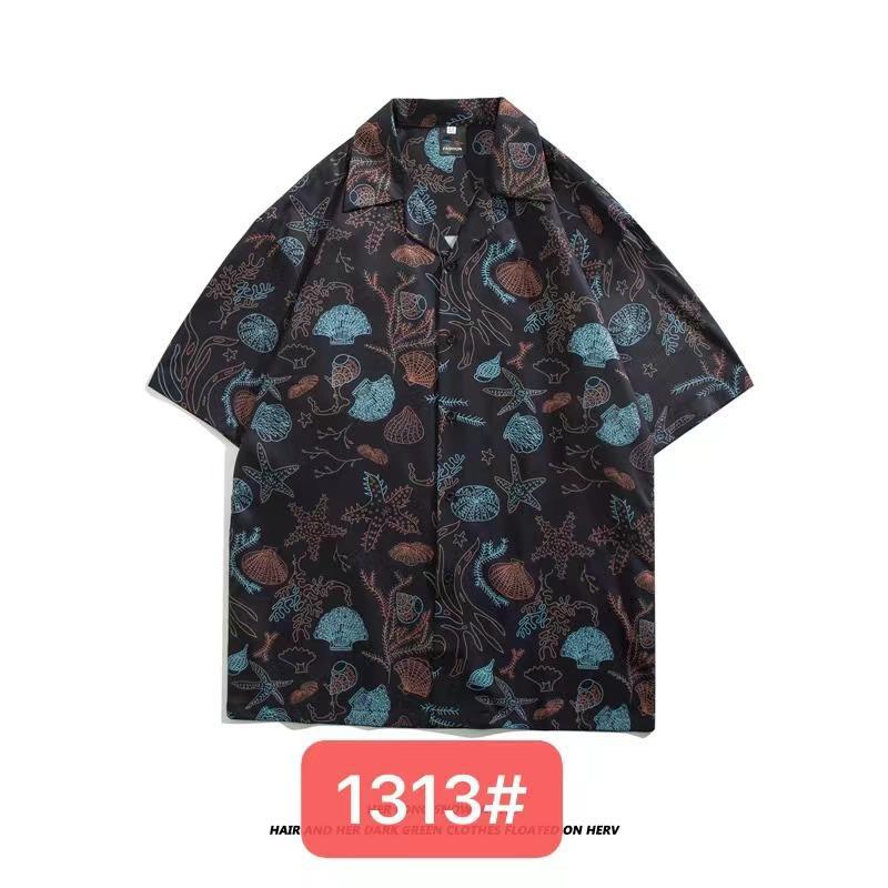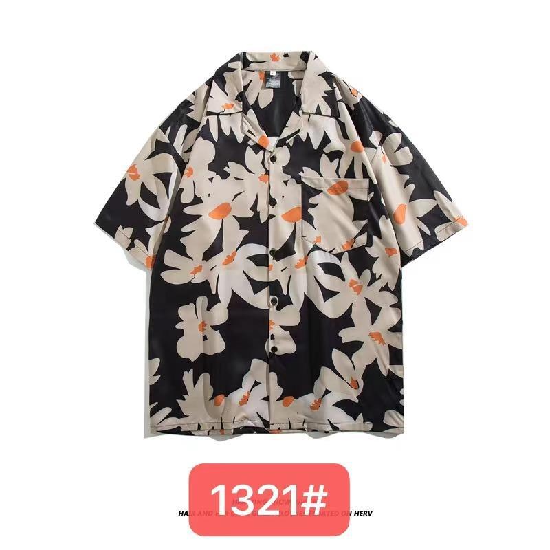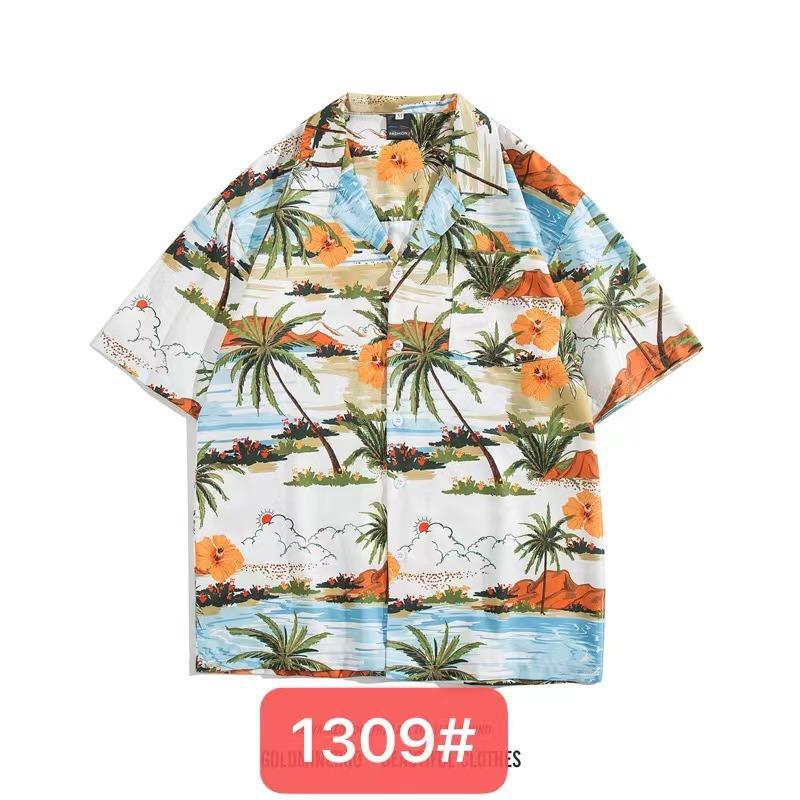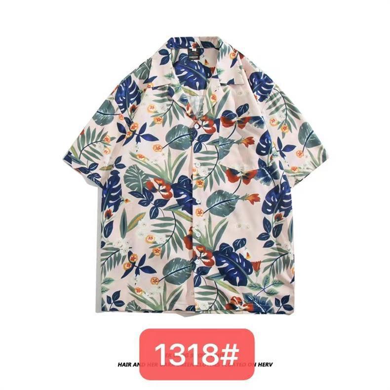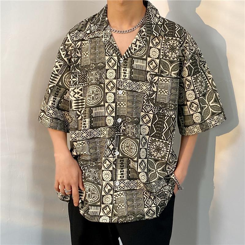 해골 꽃 플러스 사이즈 오래된 총 짧은 소매 쿠바 칼라 지방 꽃 셔츠 일본 복고풍 남성과 여성 태국 하와이 패션스토어 가기