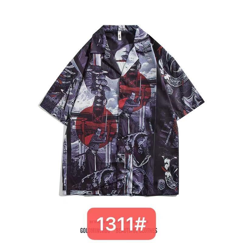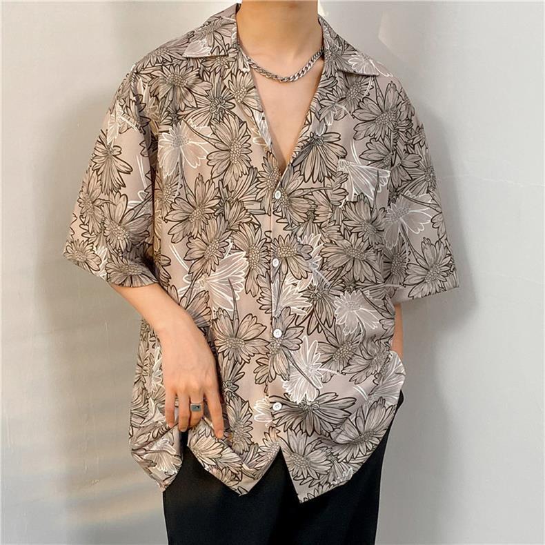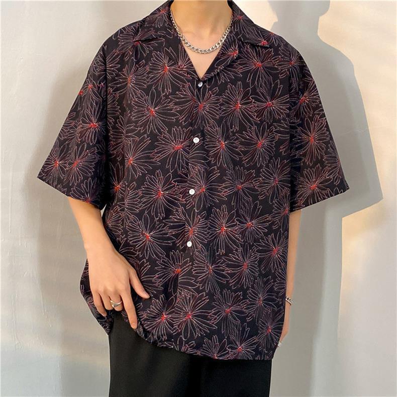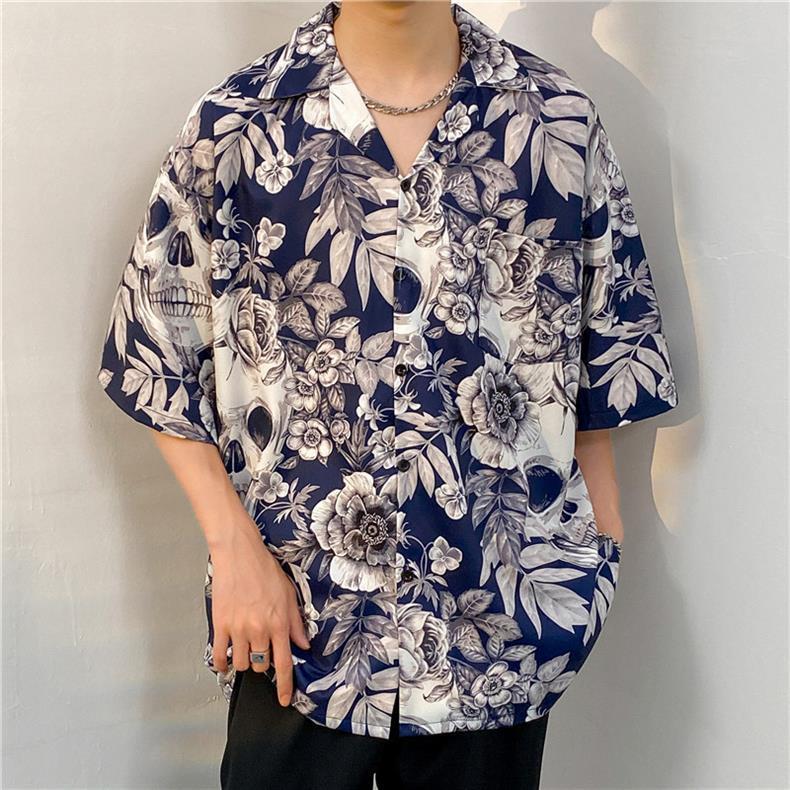 해골 꽃 플러스 사이즈 오래된 총 짧은 소매 쿠바 칼라 지방 꽃 셔츠 일본 복고풍 남성과 여성 태국 하와이 패션