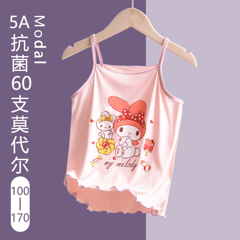 소녀 캐미솔 여름 아이스 실크 모달 어린이 잠옷 여름 학생 소녀 홈 웨어 중 큰 아이들