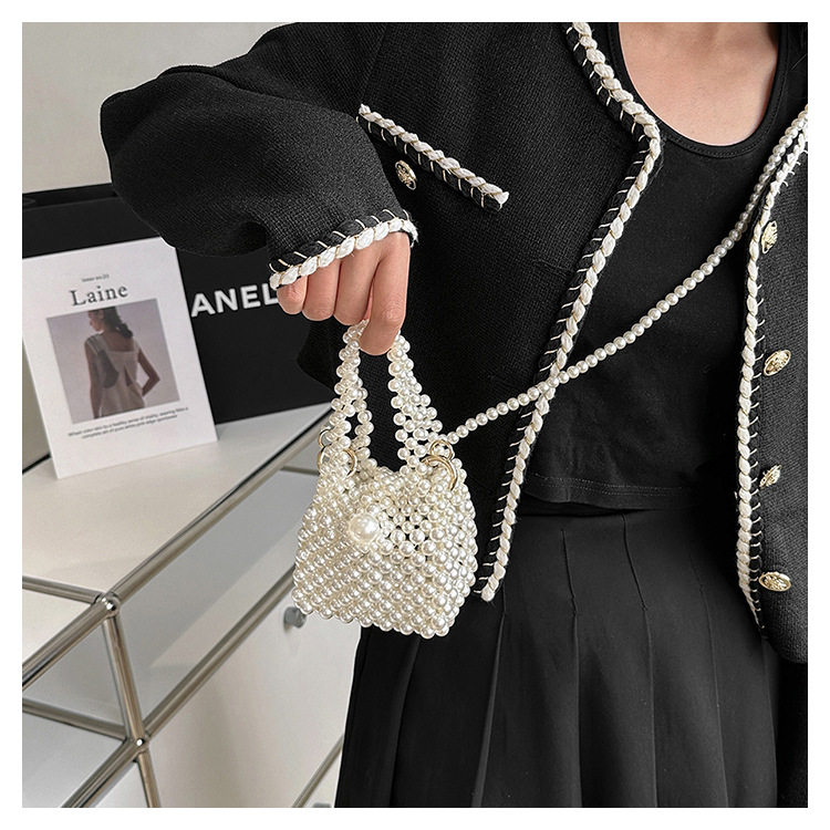 여성용 진주 가방 새 여름 2024 버킷 가방 서양식 부모-자식 미니 메신저 가방 액세서리 동전 지갑