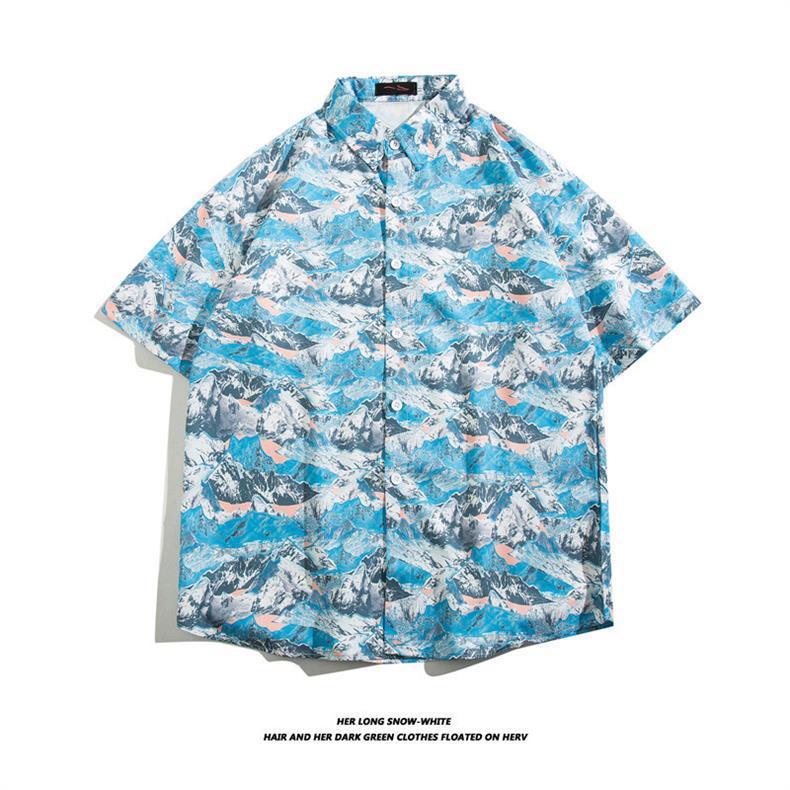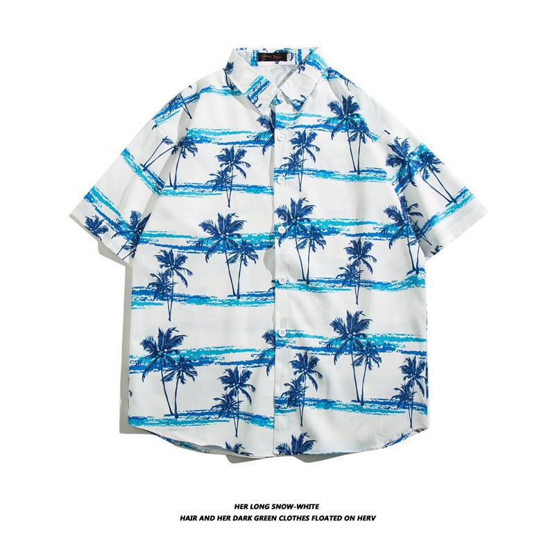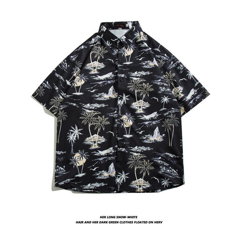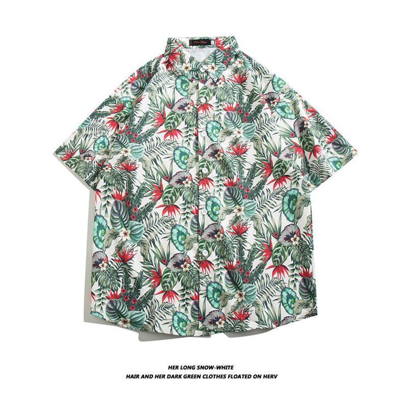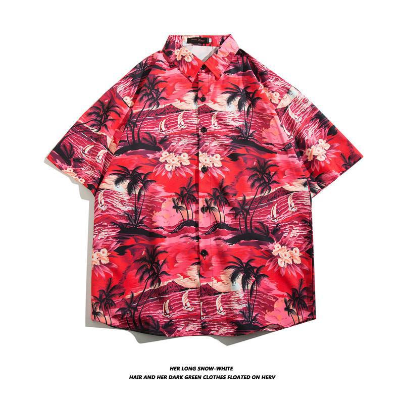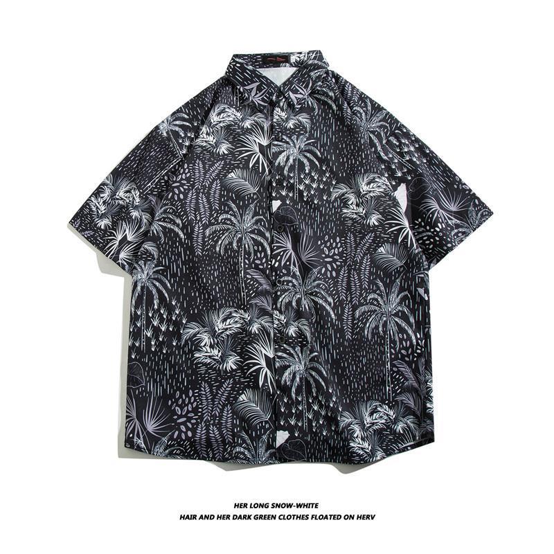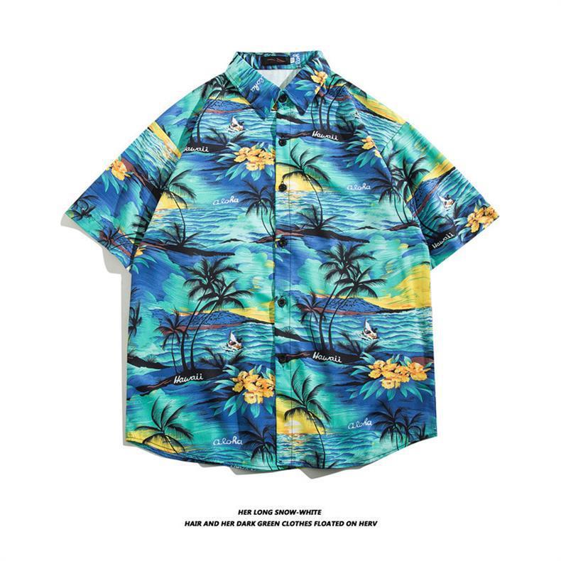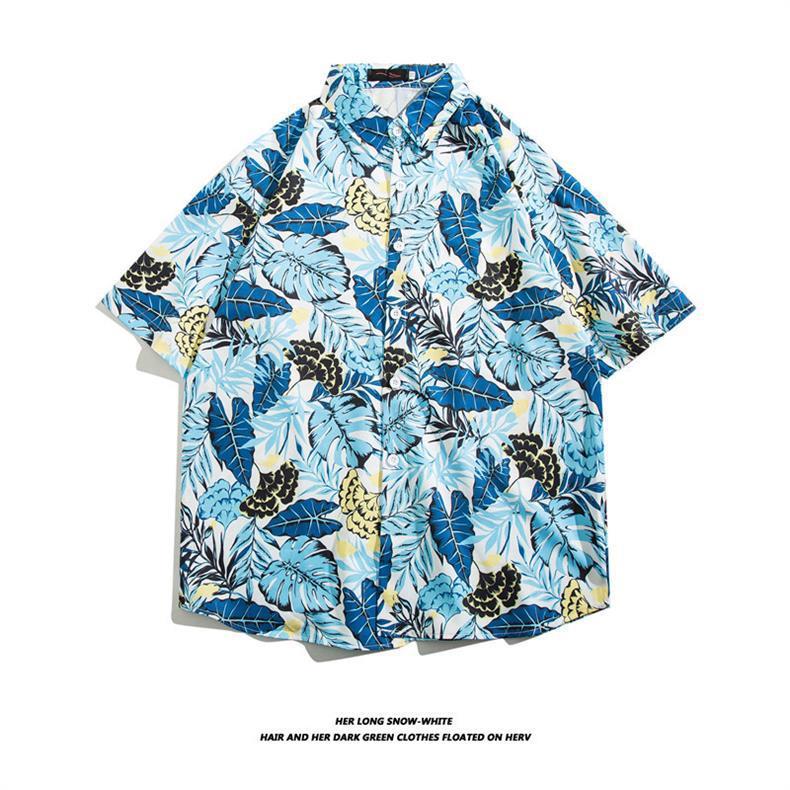 하와이 아이스 실크 셔츠 남성 패션 브랜드 반팔 셔츠 남성 여름 해변 꽃 셔츠 커플의 느슨한 코트스토어 가기