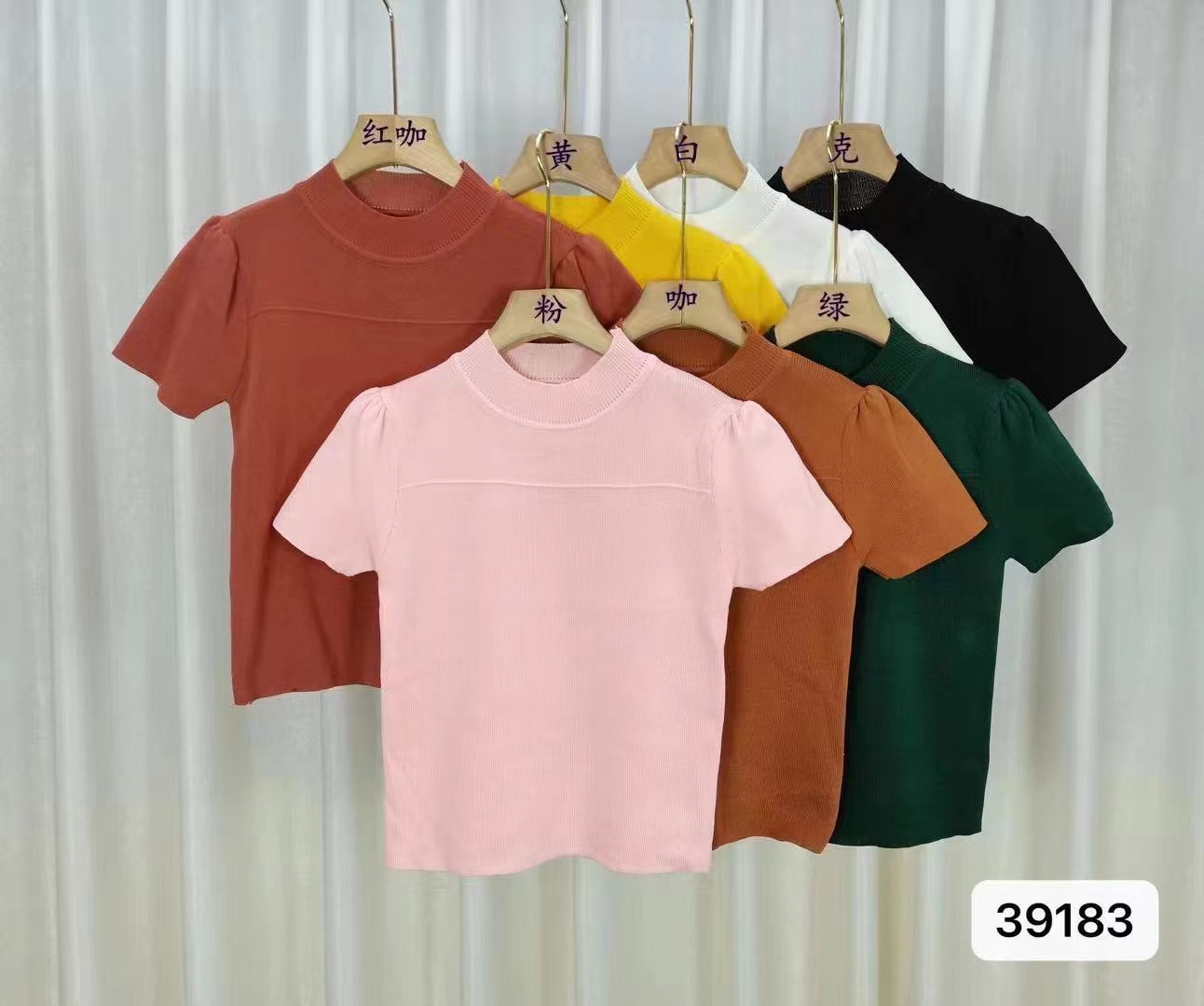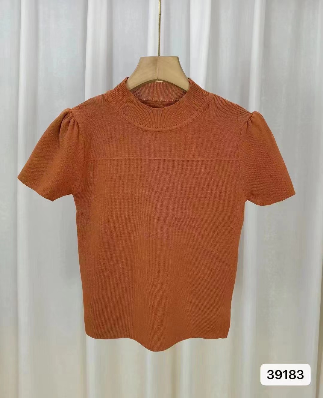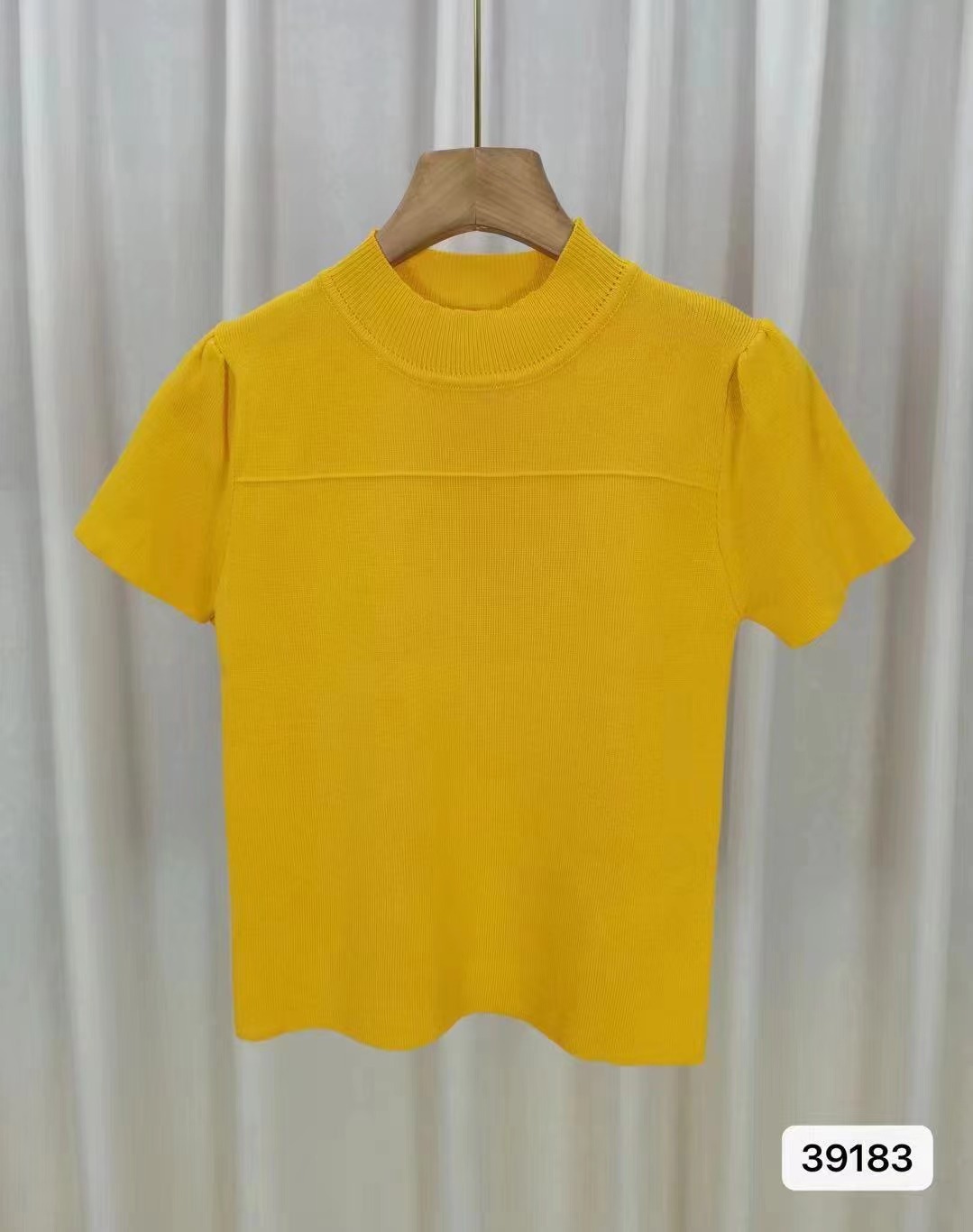 2025 봄과 여름 짧은 퍼프 슬리브 스웨터 기질 슬림 하프 터틀넥 바닥 셔츠 여성용 얇은 반팔 티셔츠스토어 가기