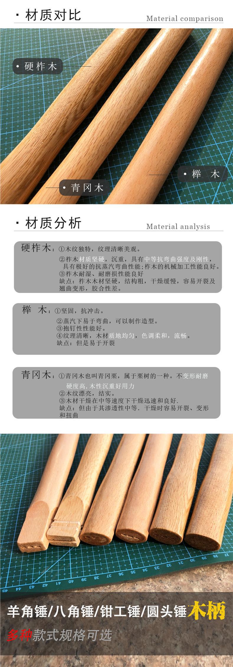 해머 손잡이, 팔각 해머, 둥근 머리 해머, 뿔 나무 손잡이, 해머 손잡이 표면 바니시, 너도밤나무, 청강나무, 참나무 원목 손잡이