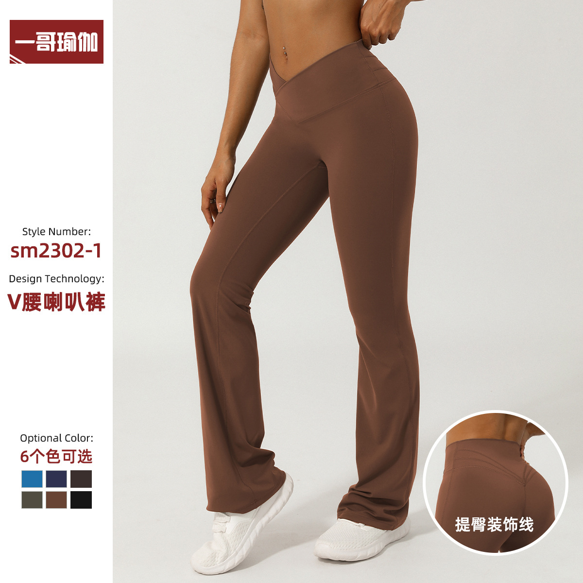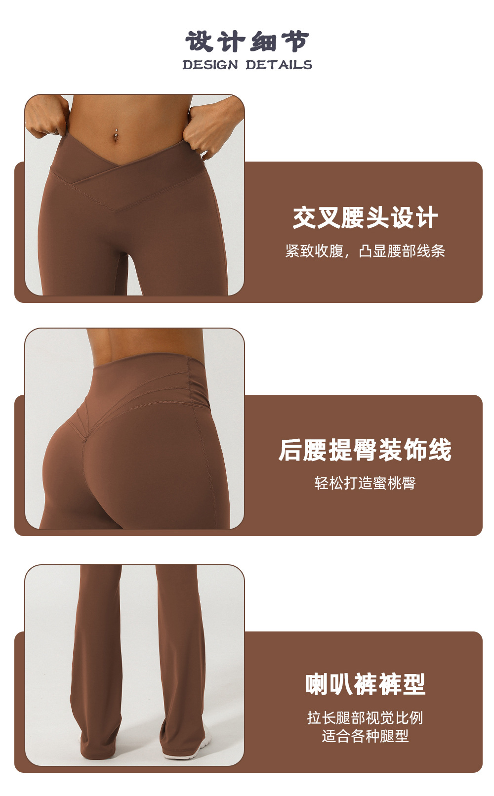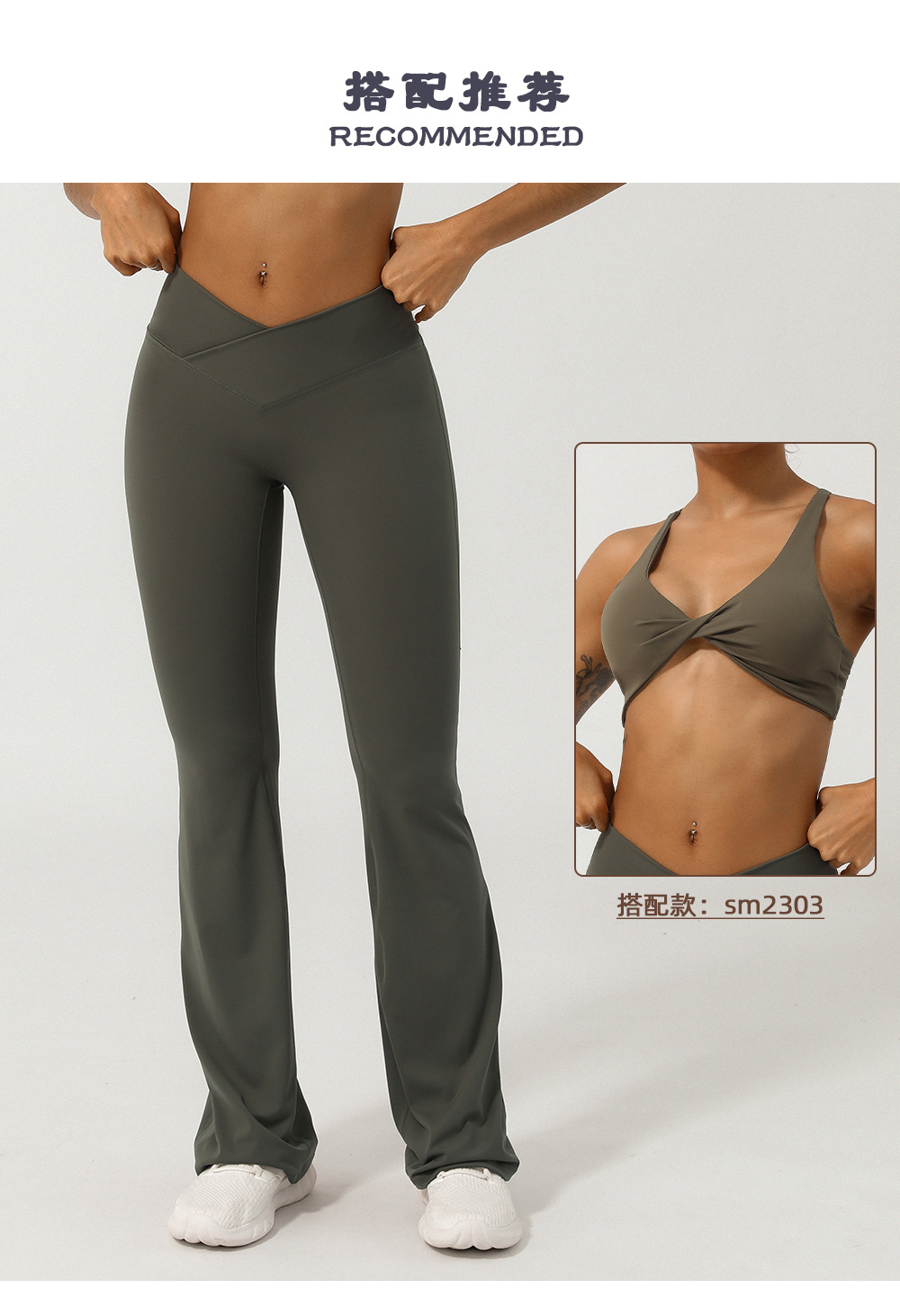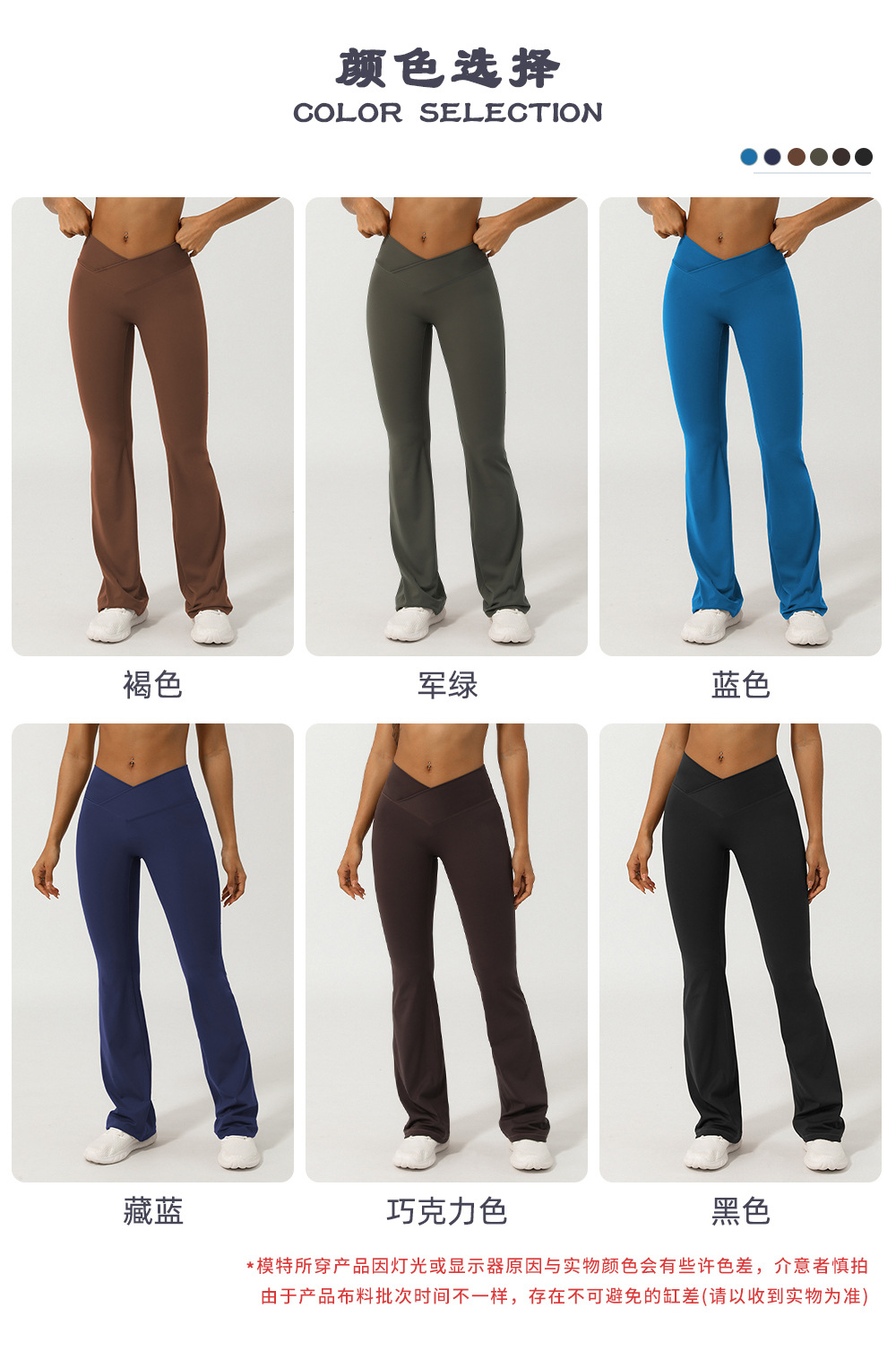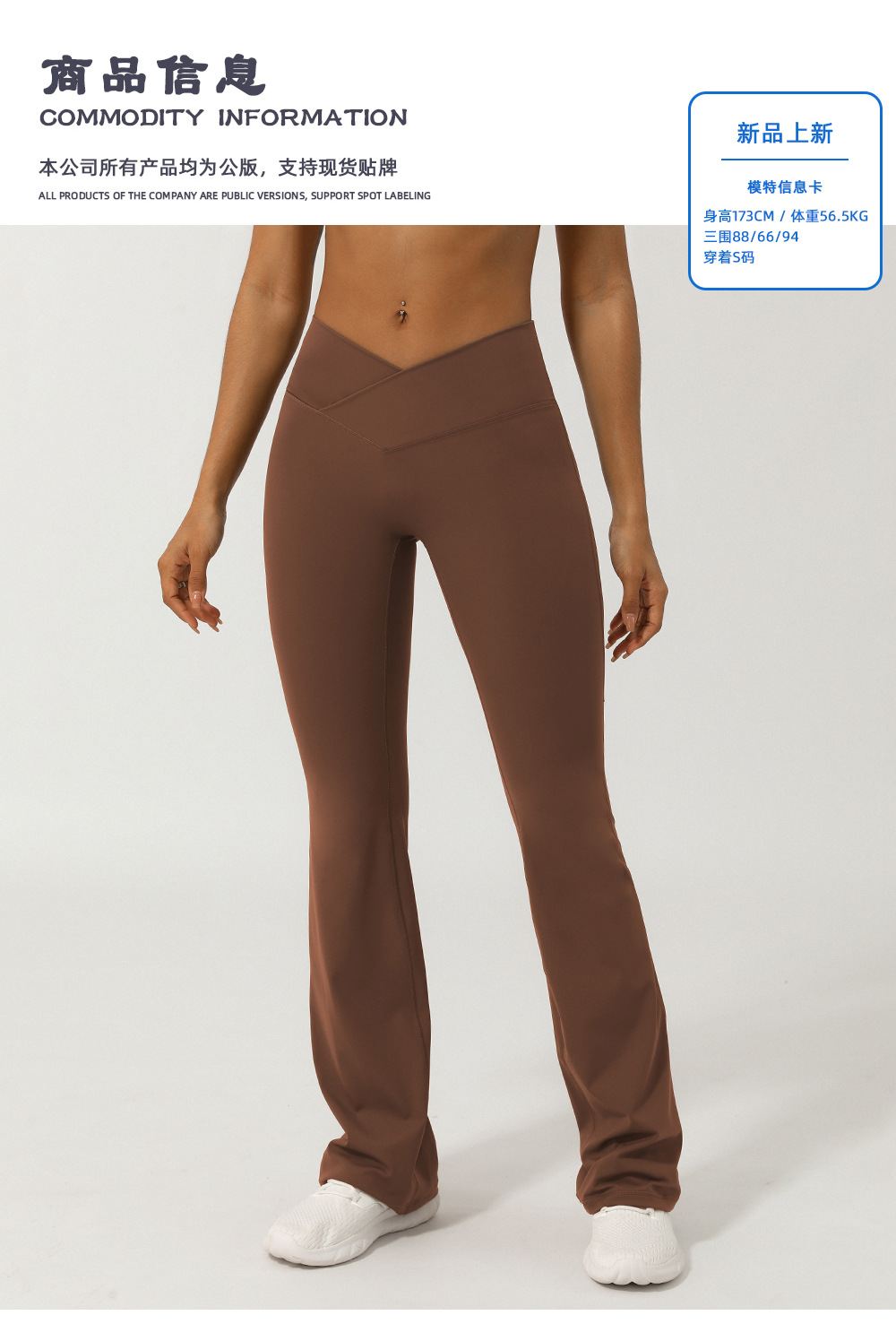 유럽과 미국의 누드 V-웨이스트 크로스 와이드 레그 팬츠 여성용 복숭아 엉덩이 피트니스 스포츠 요가 T-프리 팬츠 캐주얼 플레어 팬츠스토어 가기