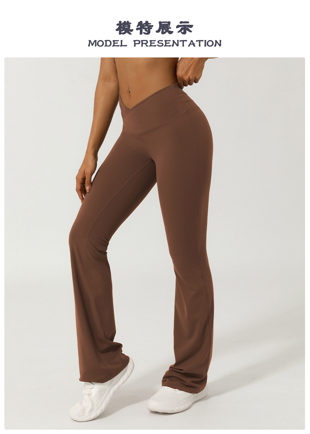 유럽과 미국의 누드 V-웨이스트 크로스 와이드 레그 팬츠 여성용 복숭아 엉덩이 피트니스 스포츠 요가 T-프리 팬츠 캐주얼 플레어 팬츠