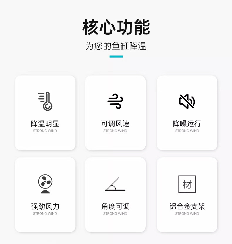跨境鱼缸降温风扇散热冷却风扇水族两档调节风速草缸虾缸1至6头