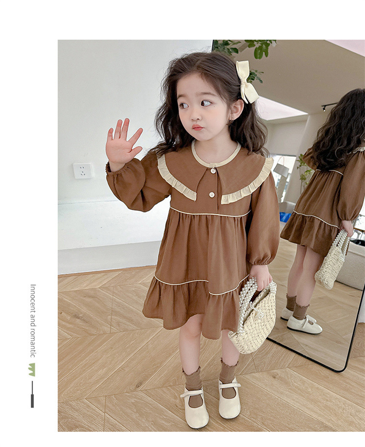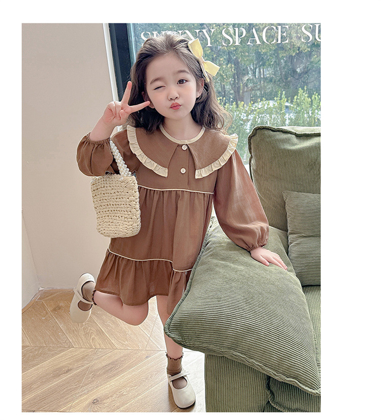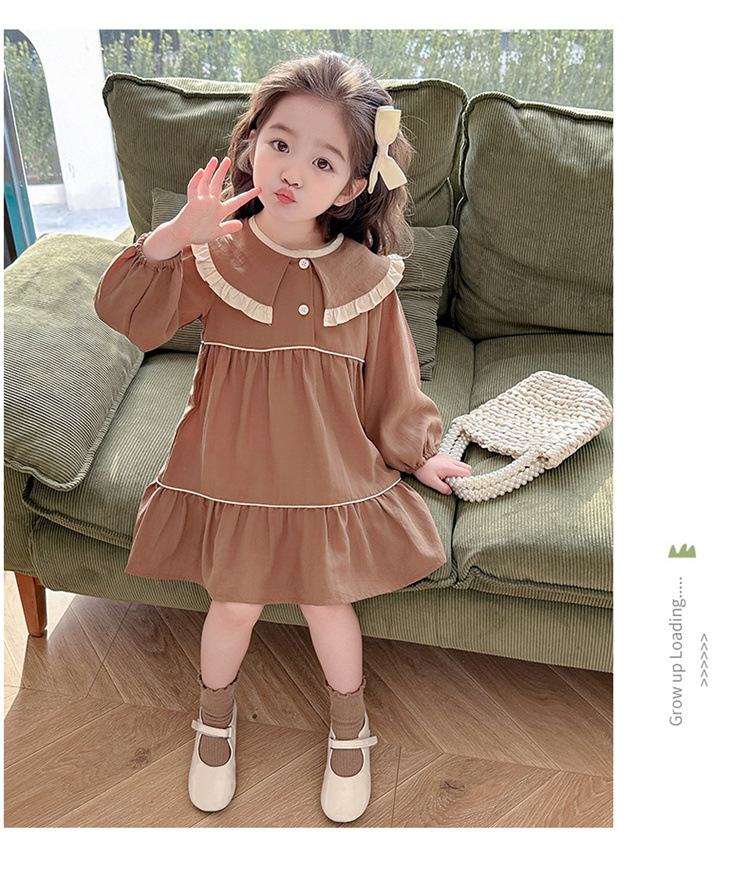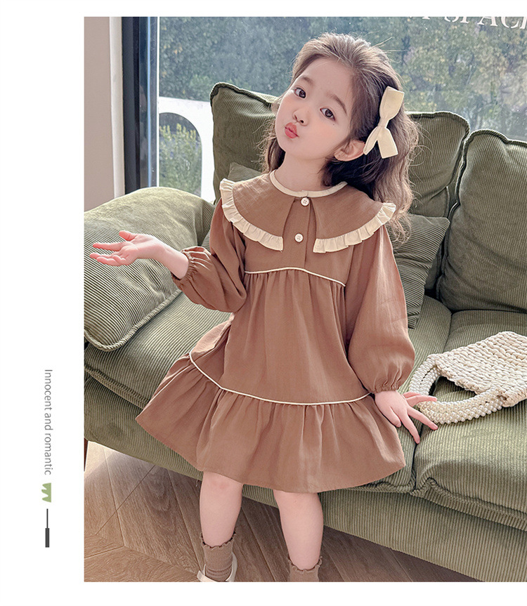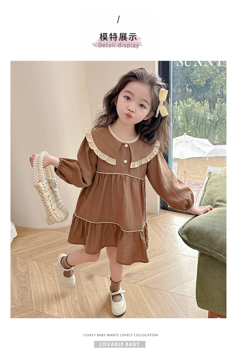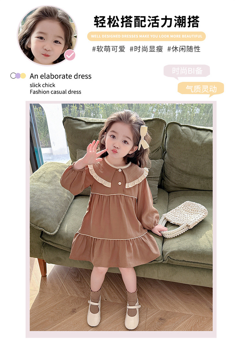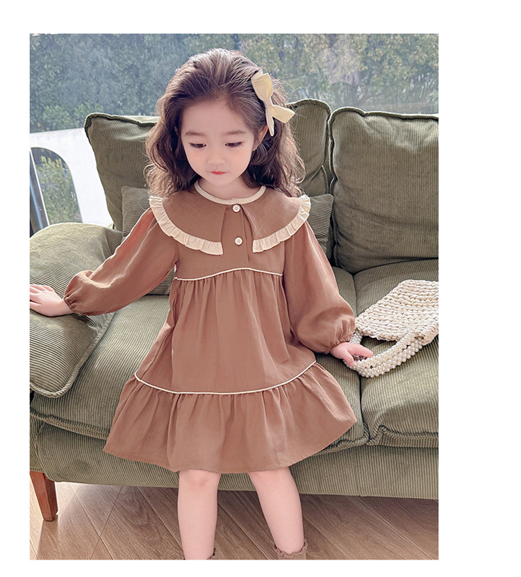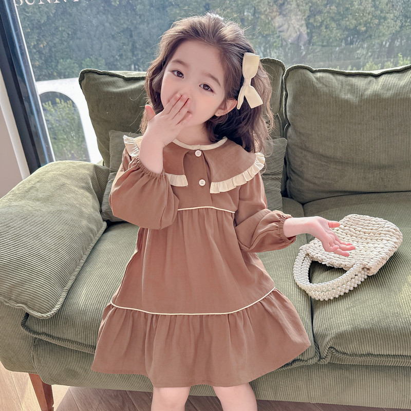 소녀 단색 옷깃 원피스 2024 봄 새로운 서양식 유행 아동복 아기 소녀의 긴 소매 공주 원피스스토어 가기