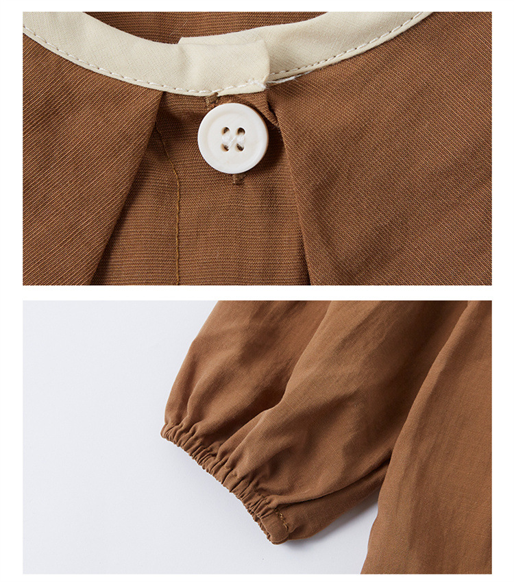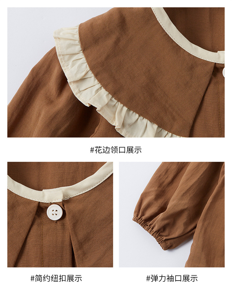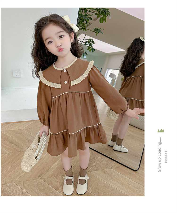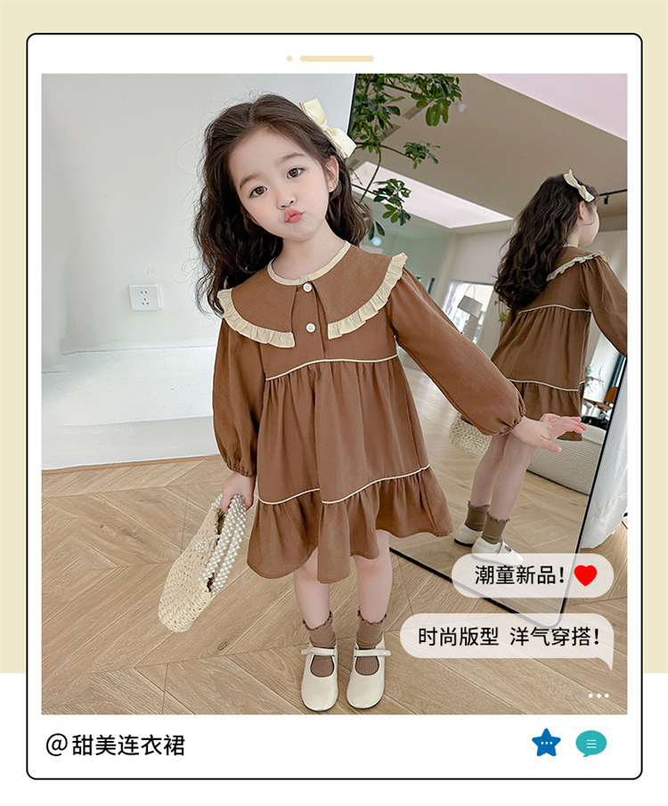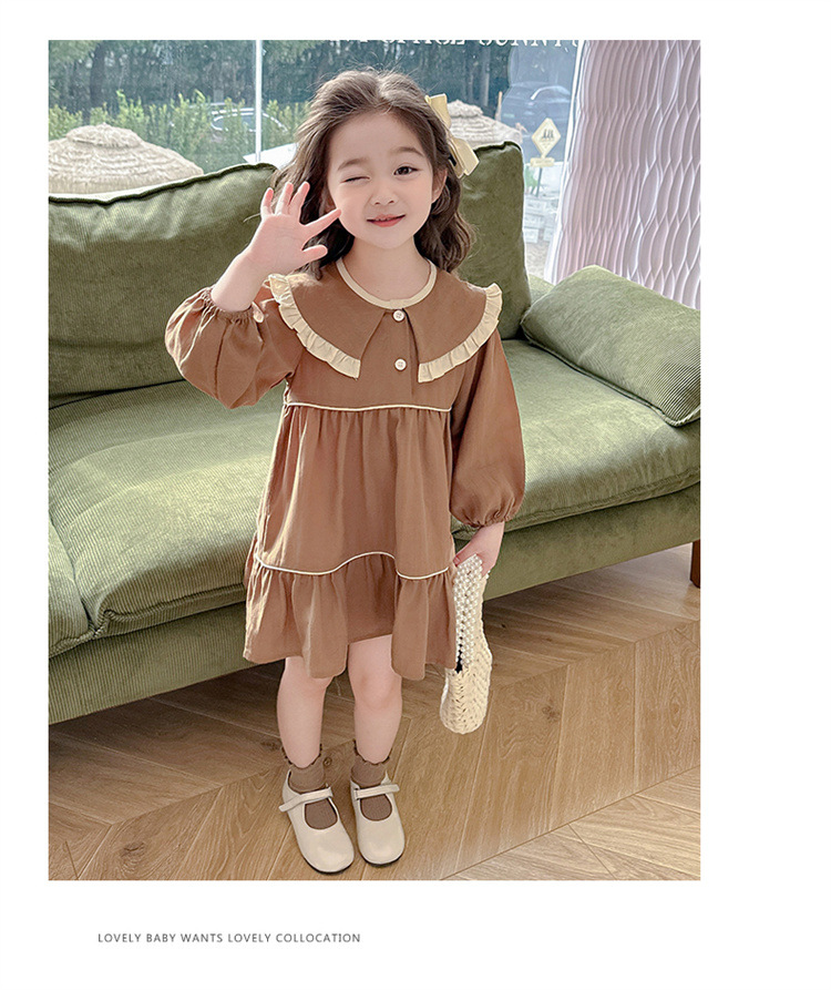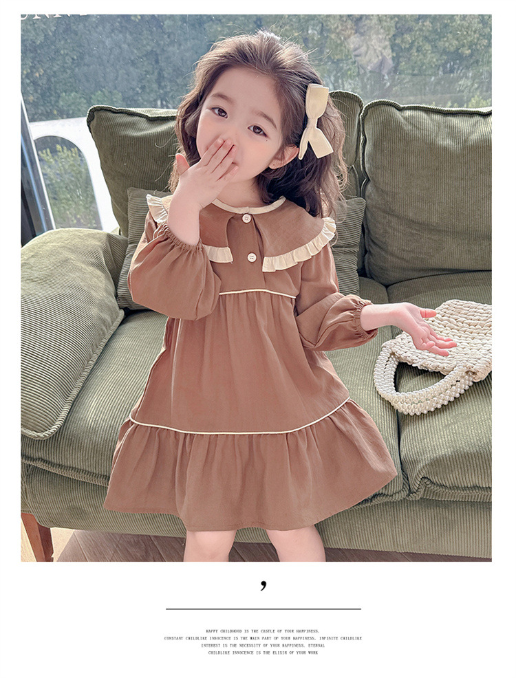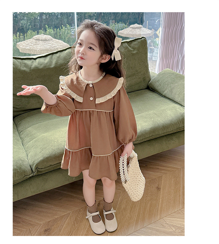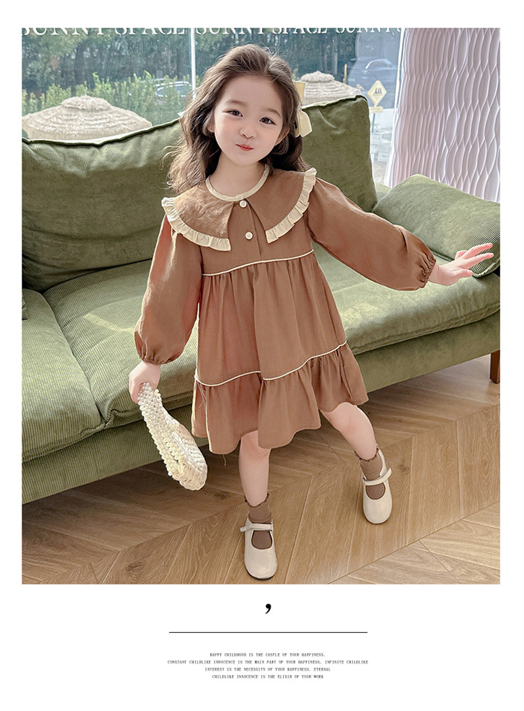 소녀 단색 옷깃 원피스 2024 봄 새로운 서양식 유행 아동복 아기 소녀의 긴 소매 공주 원피스스토어 가기