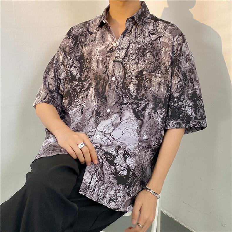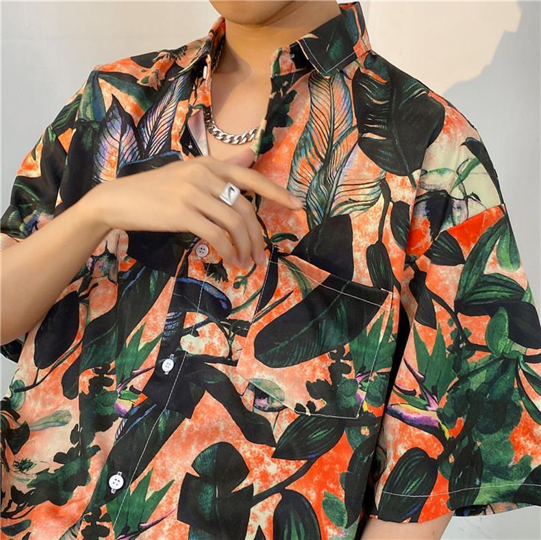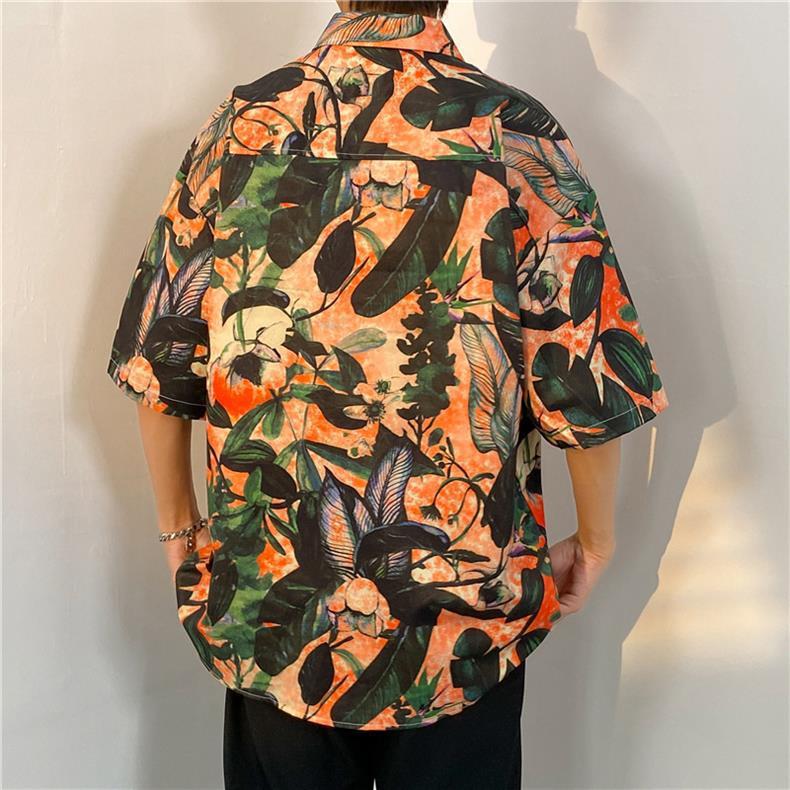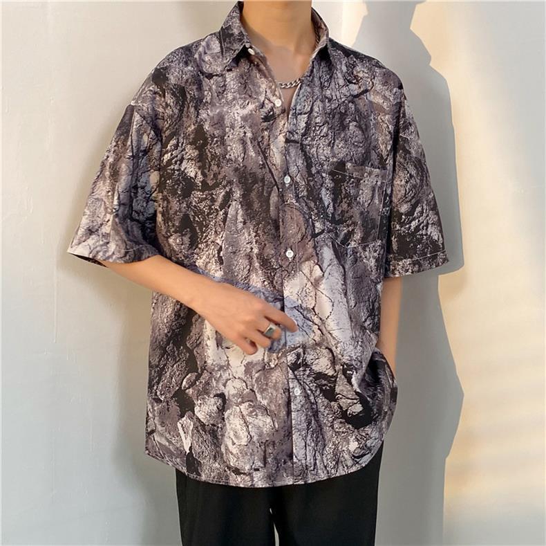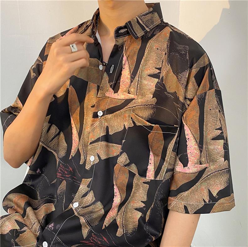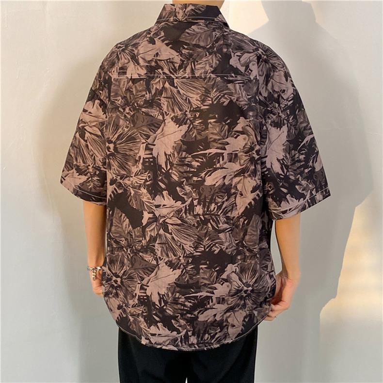 셔츠 남자의 여름 얇은 미국 복고풍 프린트 반팔 셔츠 다용도, 하이 스트리트 캐주얼 느슨한 탑 옷