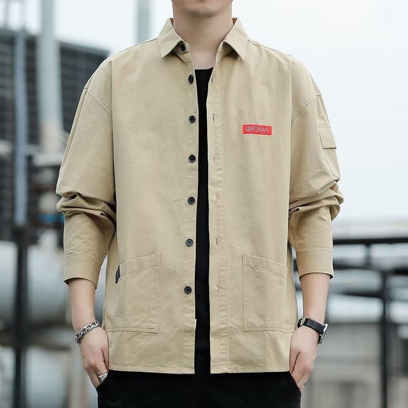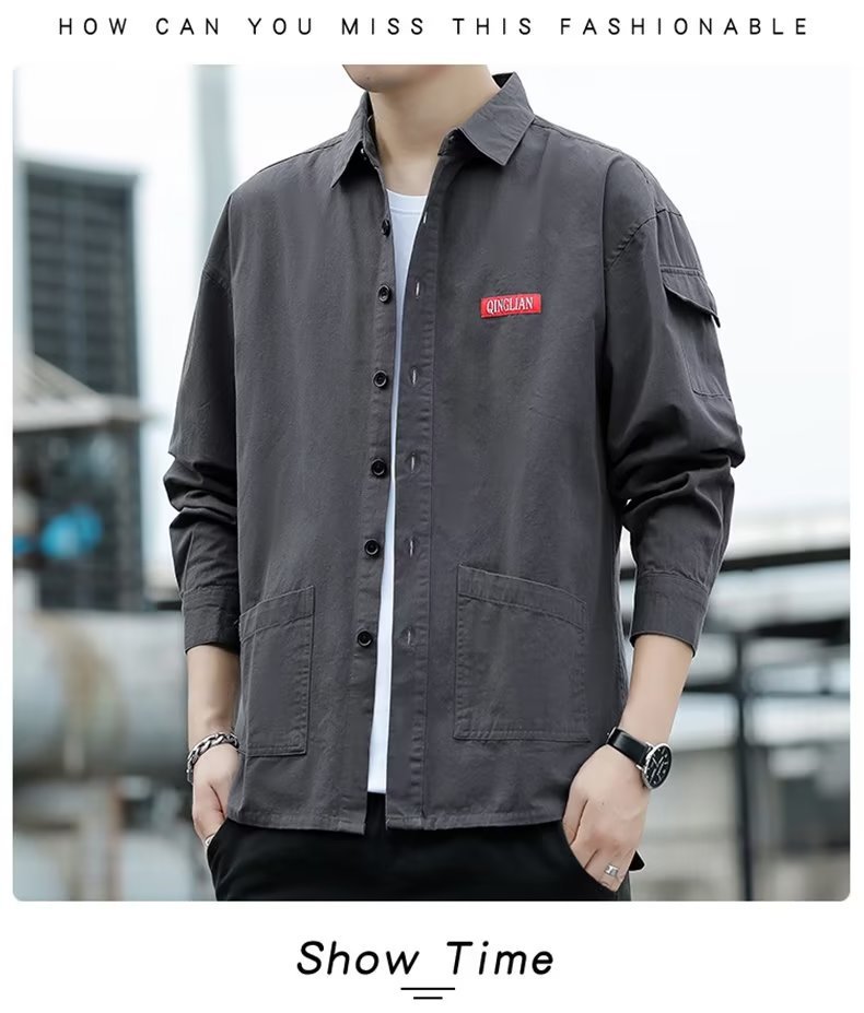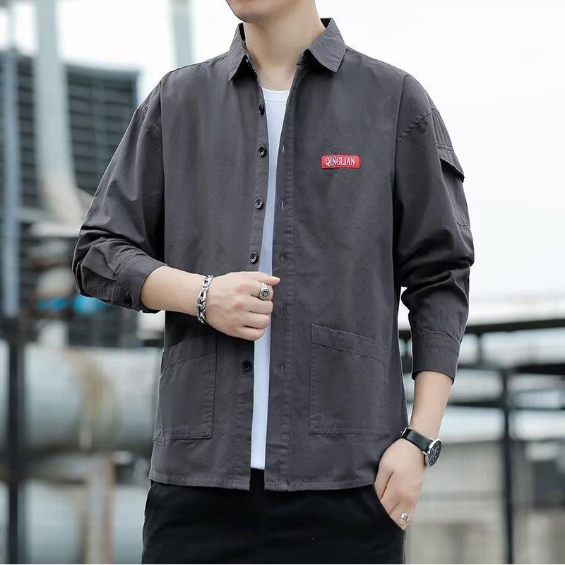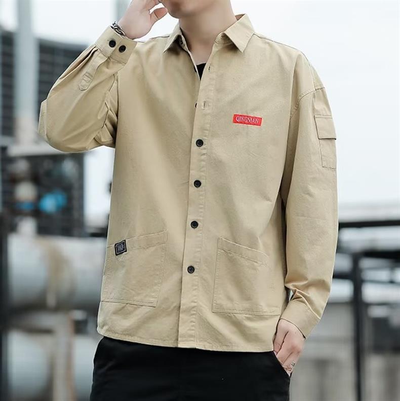 봄과 가을 셔츠 남성용 긴팔 작업복 트렌디 한 다용도 멀티 포켓 홍콩 스타일 셔츠 캐주얼 재킷 1/2 조각스토어 가기