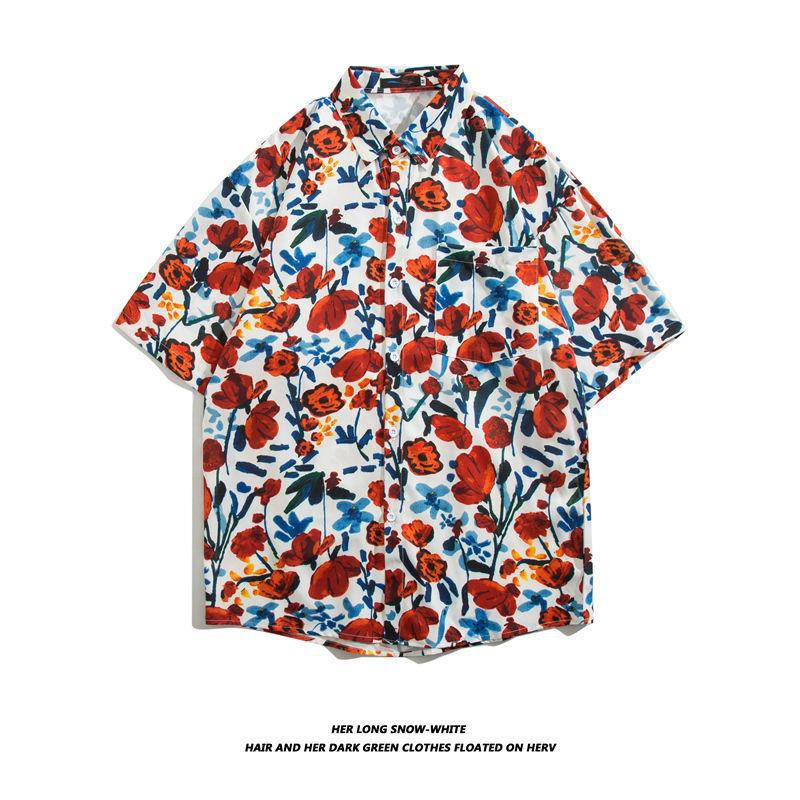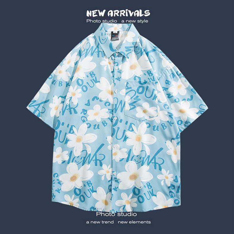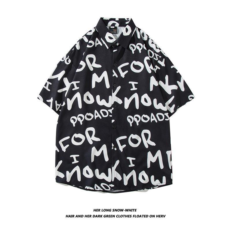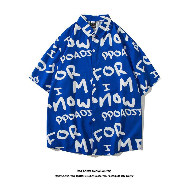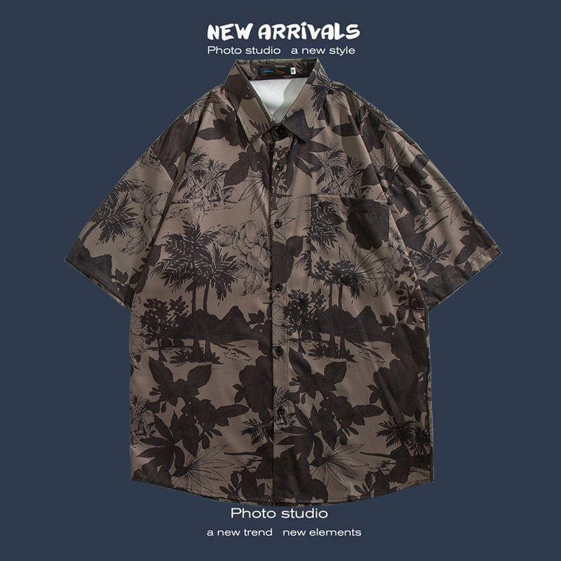 일본 남자 반팔 셔츠 남자의 트렌디 한 잘 생긴 여름 남자 소금 새로운 트렌디 한 커플 느슨한 셔츠스토어 가기