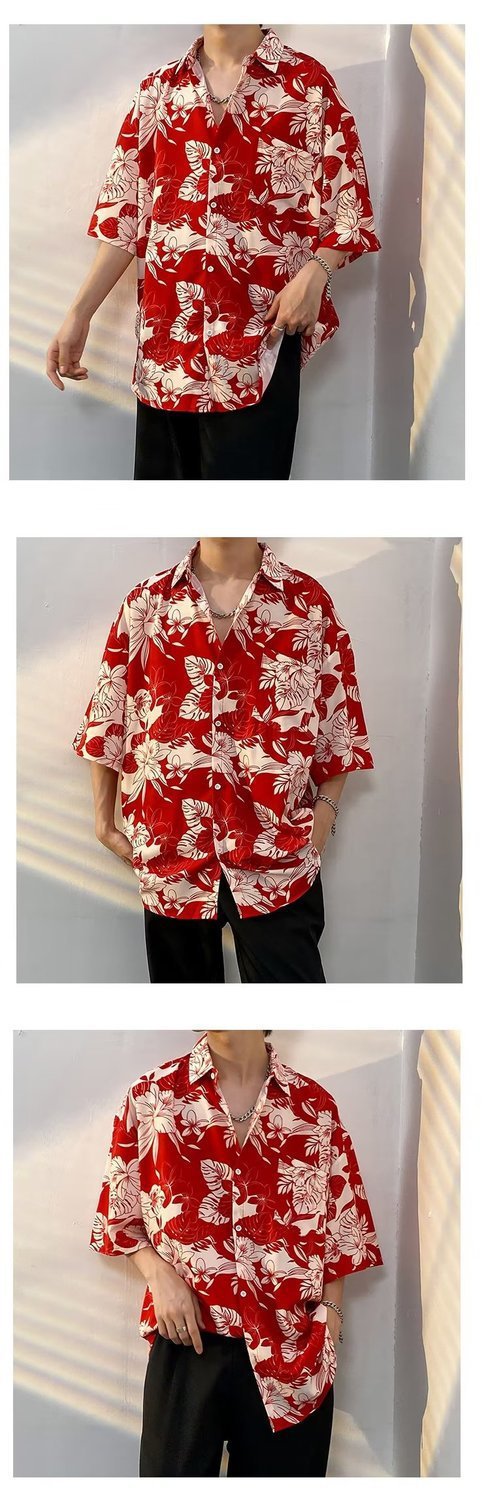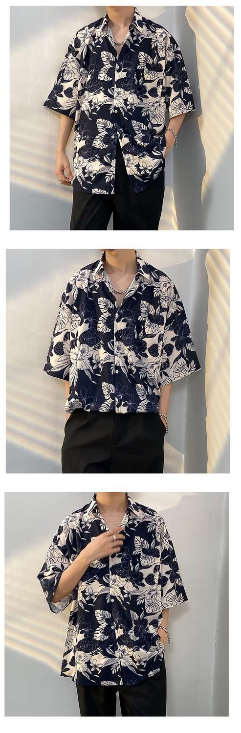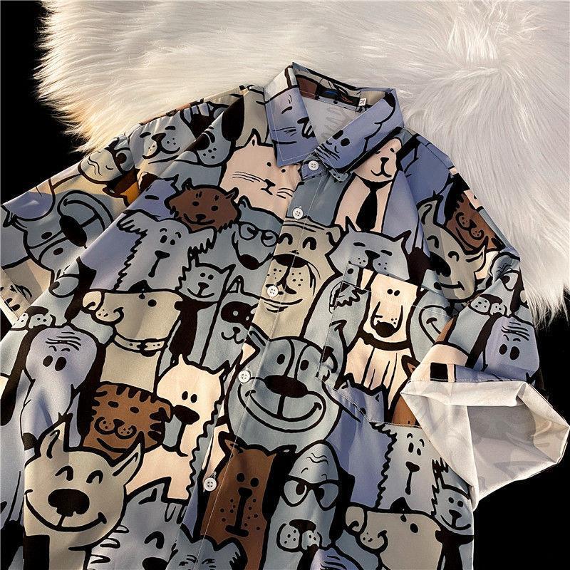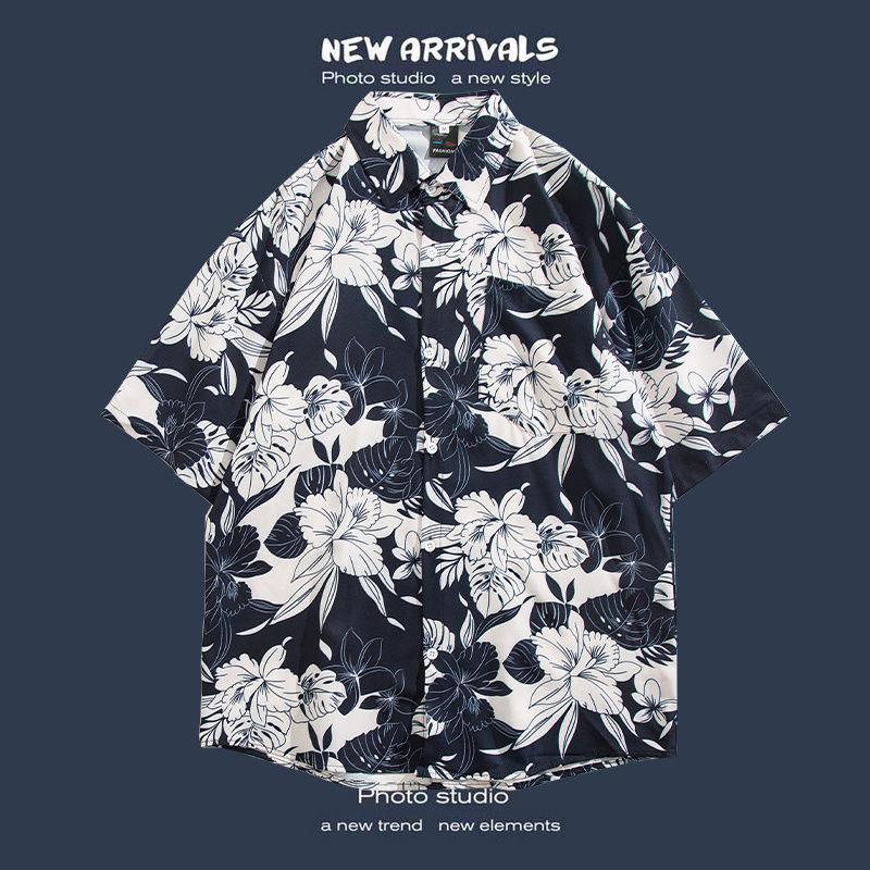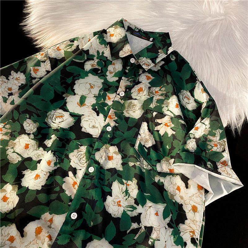일본 남자 반팔 셔츠 남자의 트렌디 한 잘 생긴 여름 남자 소금 새로운 트렌디 한 커플 느슨한 셔츠스토어 가기