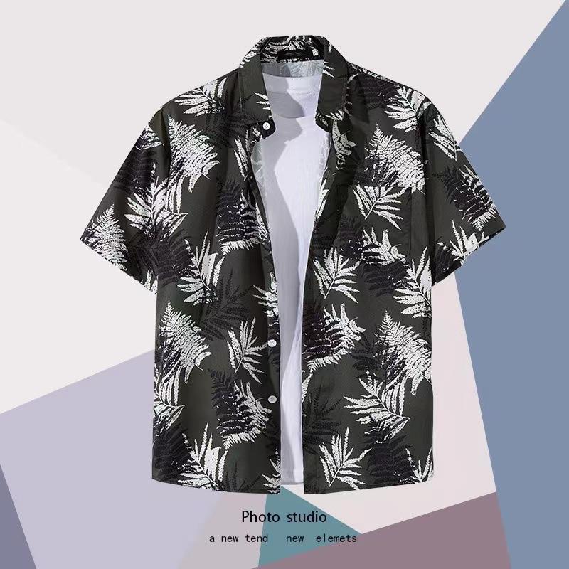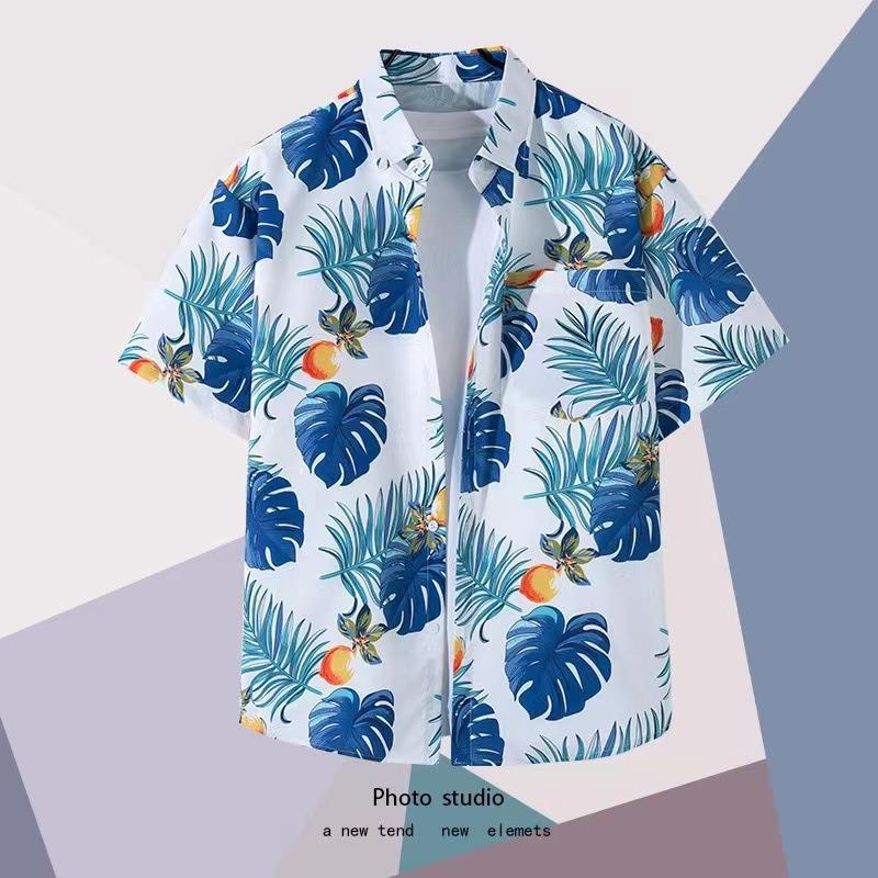 여름 해변 꽃 남성과 여성의 얇은 셔츠, 트렌디 한 하와이 크로스 보더 느슨한 넥타이 염색 짧은 소매 커플 셔츠