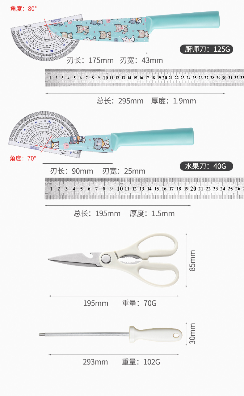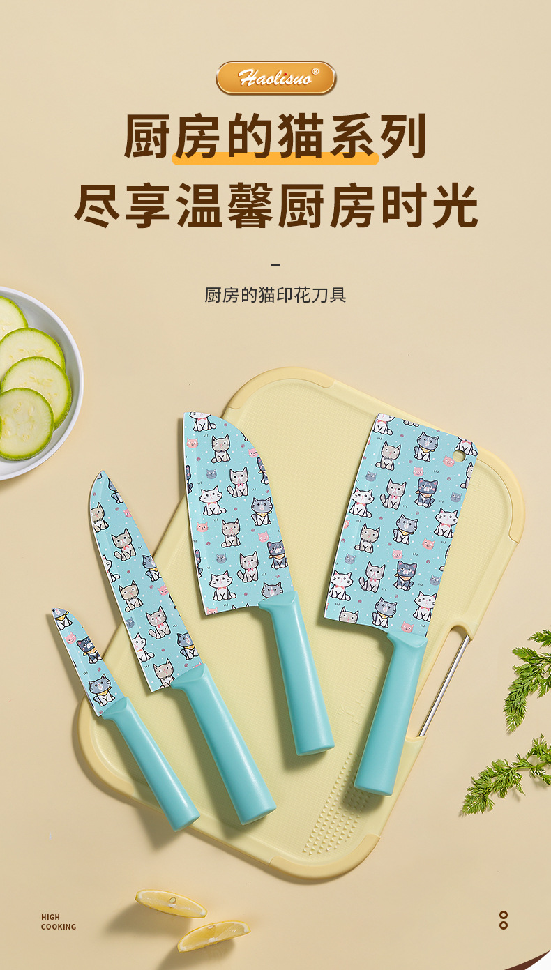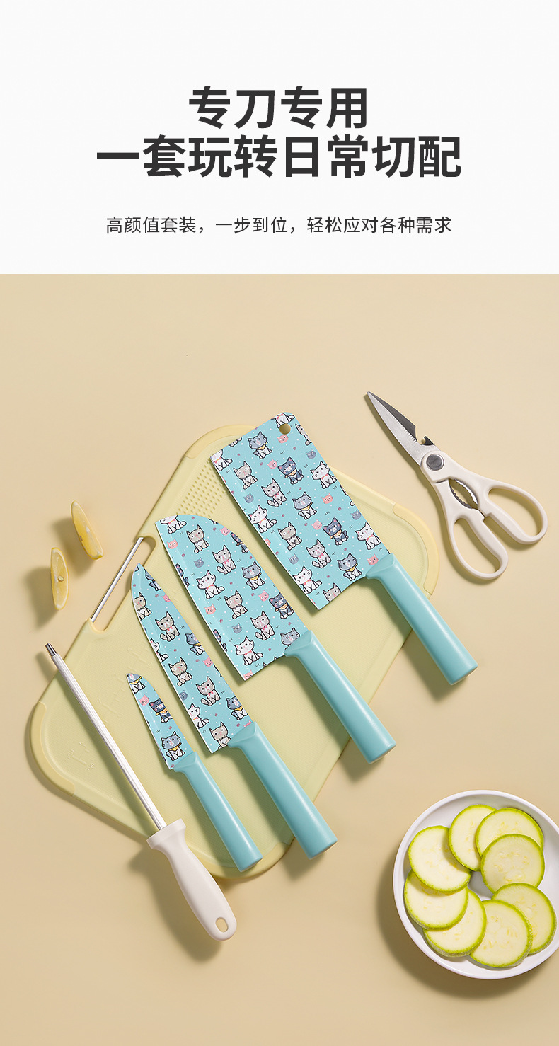 안티 스틱 코팅 가정용 주방 칼 슬라이스 칼 요리사 칼 귀여운 인쇄 과일 칼 특수 뼈 커터 칼 세트