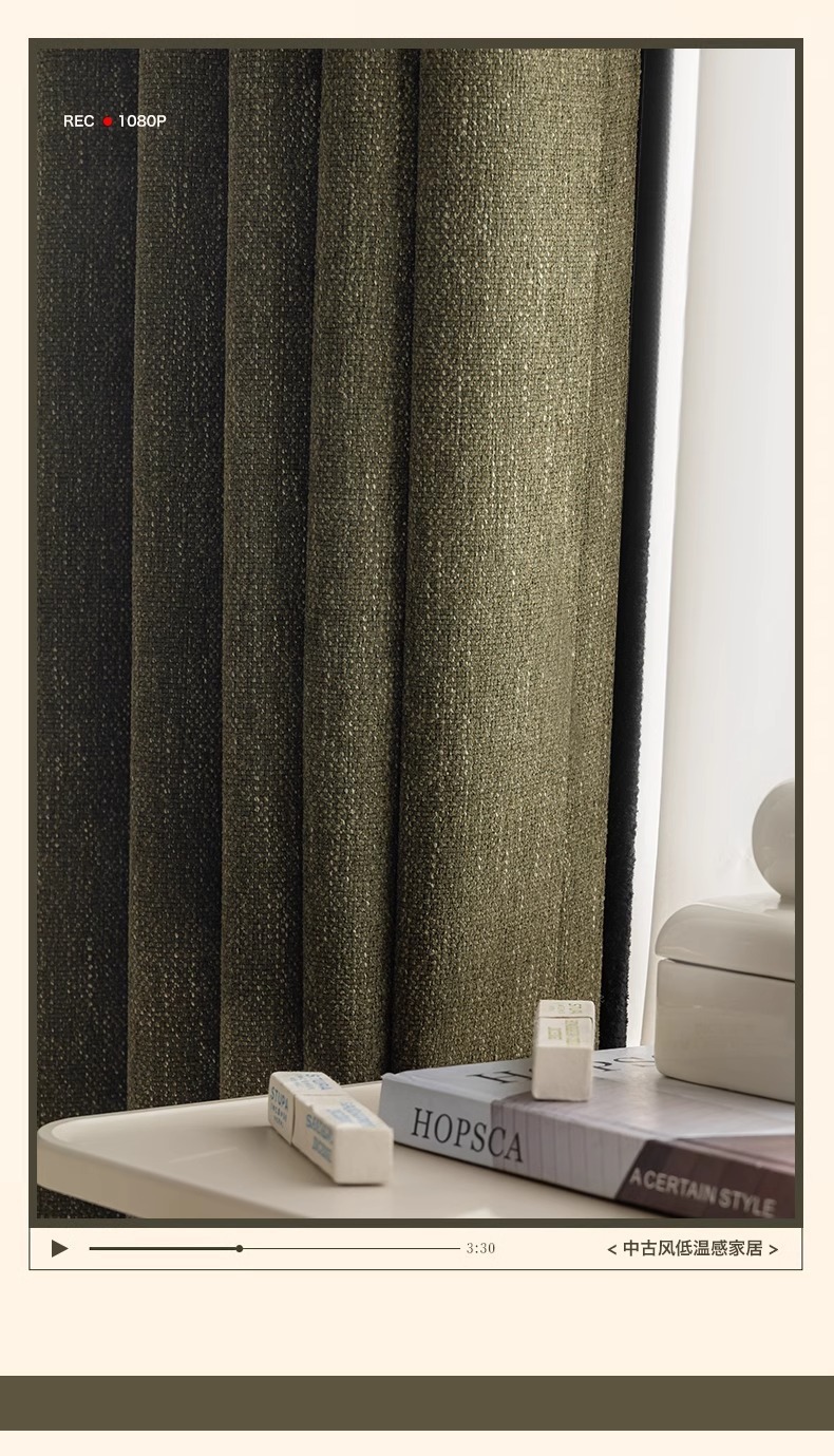 중국 고대 스타일 원사 염색 셔닐 커튼 빈티지 다크 그린 블랙 에지 침실 음영 고급 감각 거실 프랑스 완제품스토어 가기
