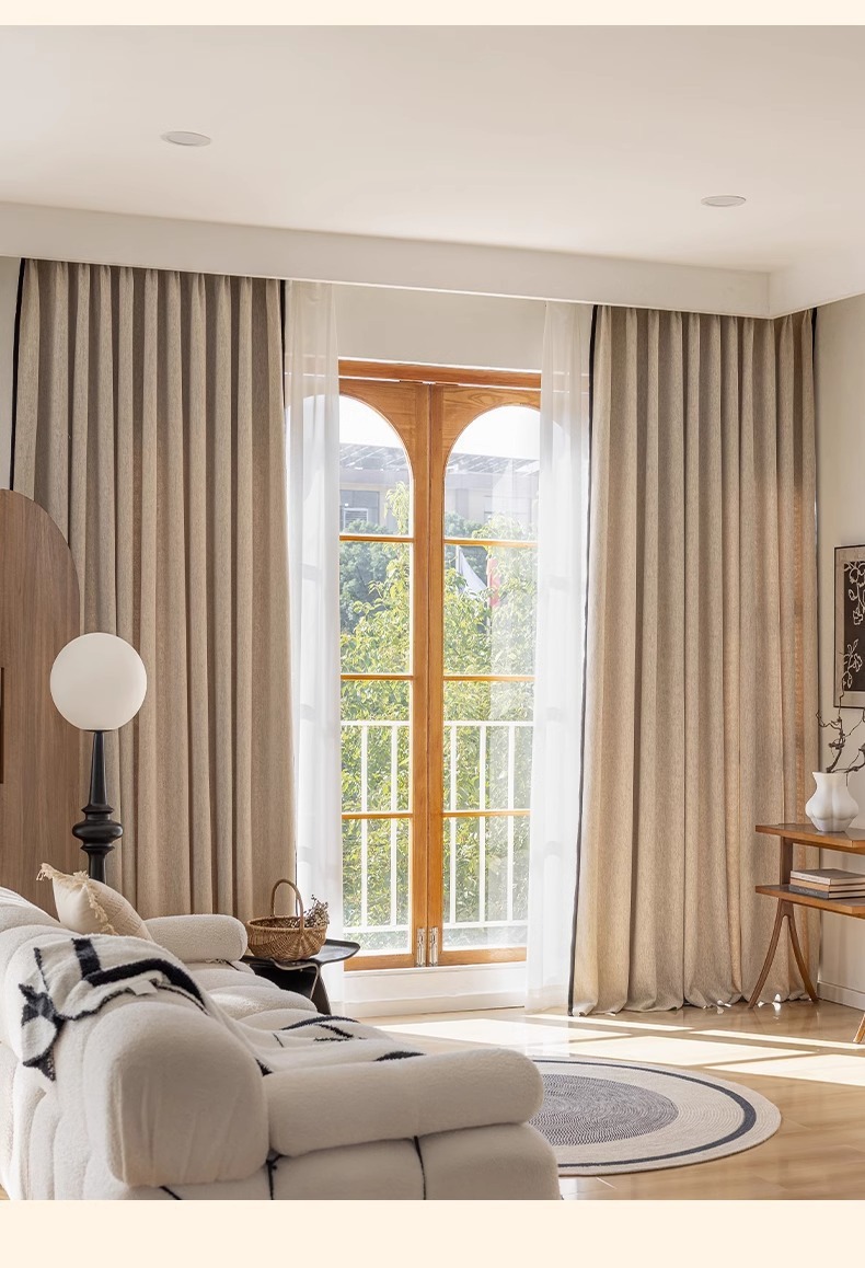 중국 고대 스타일 원사 염색 셔닐 커튼 빈티지 다크 그린 블랙 에지 침실 음영 고급 감각 거실 프랑스 완제품