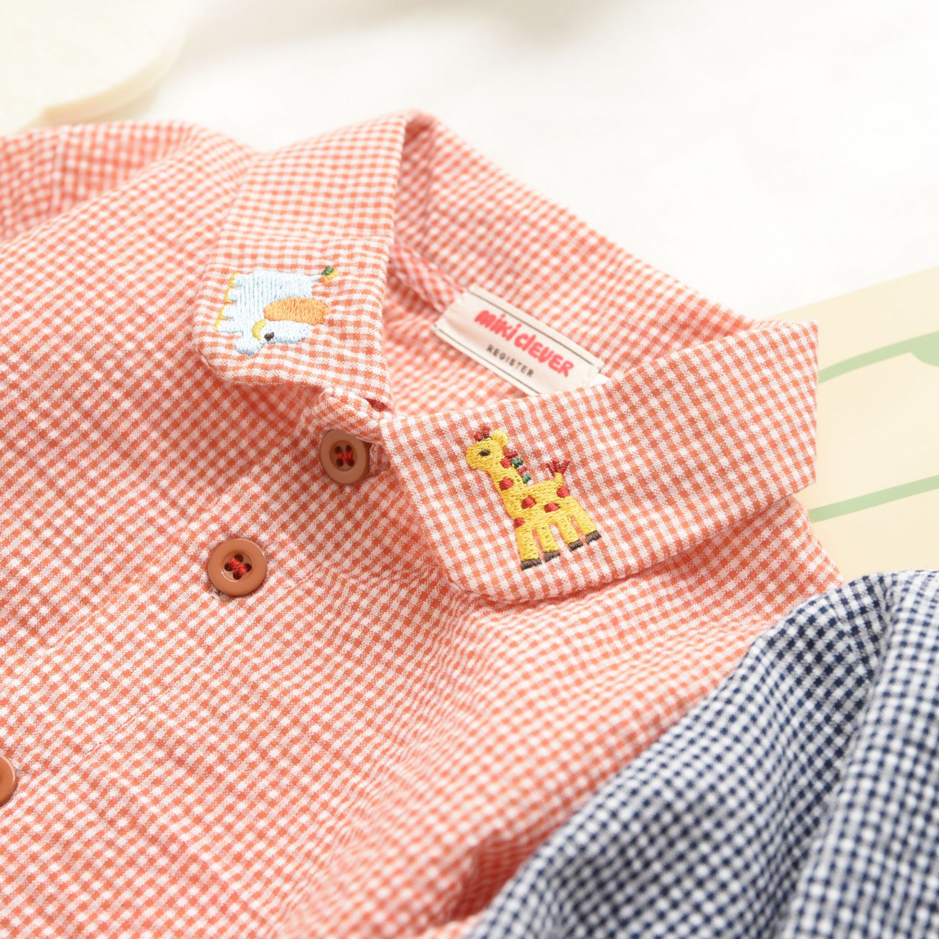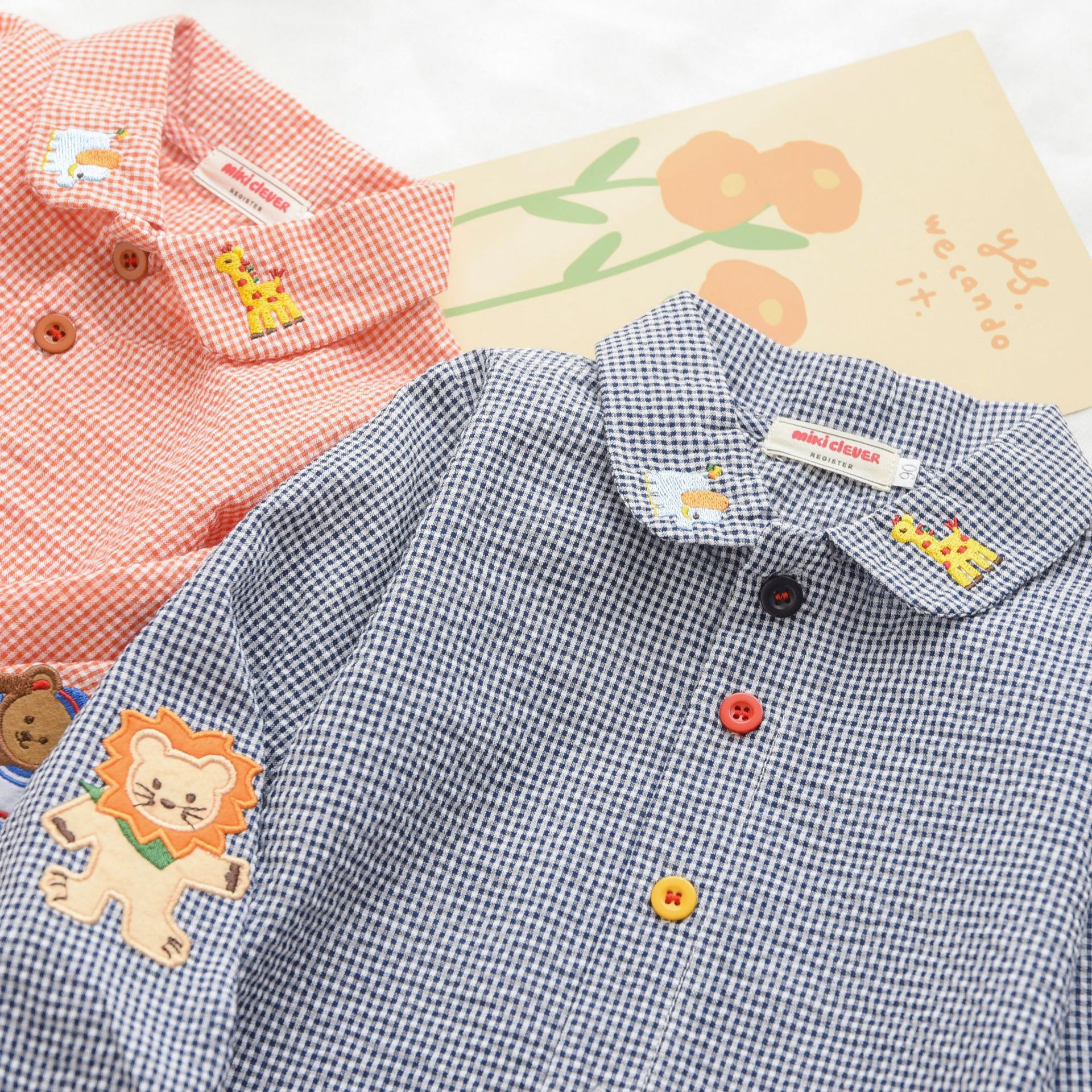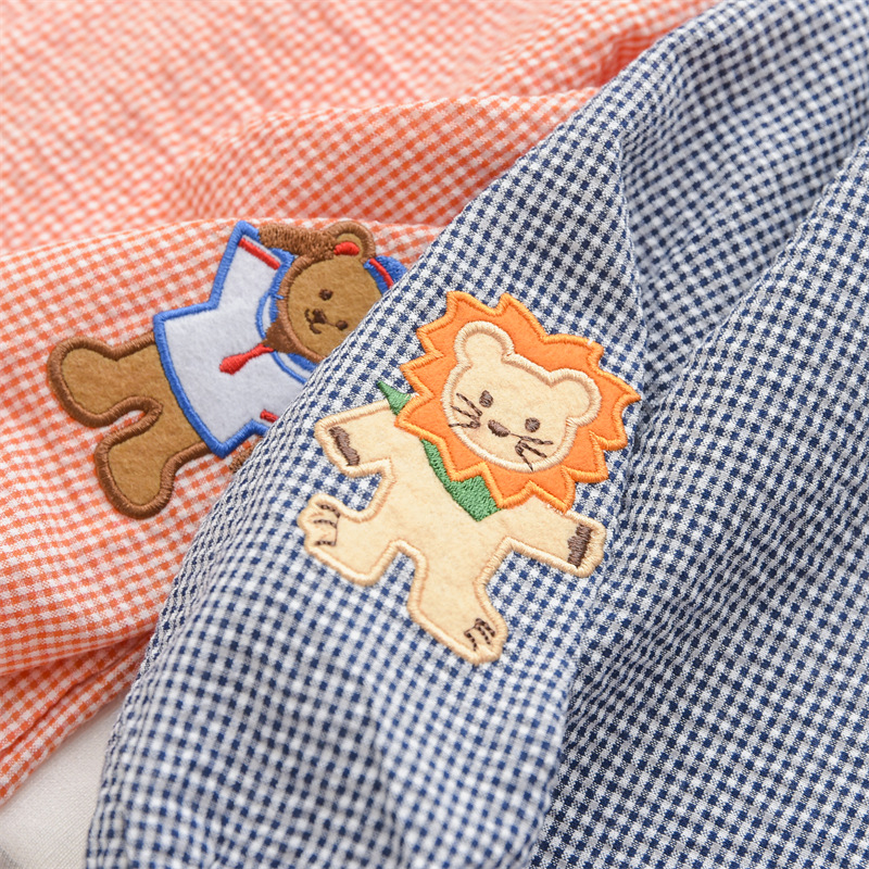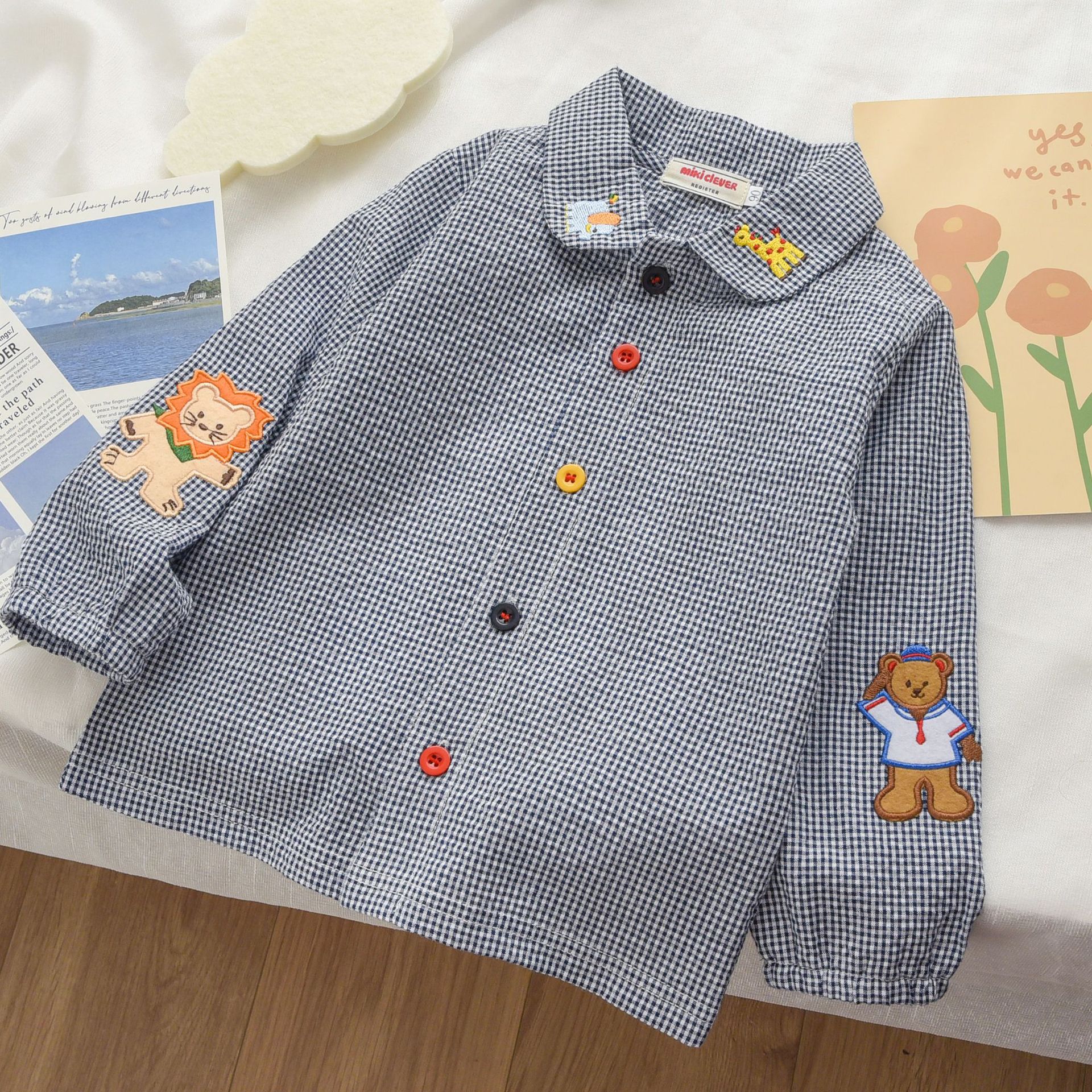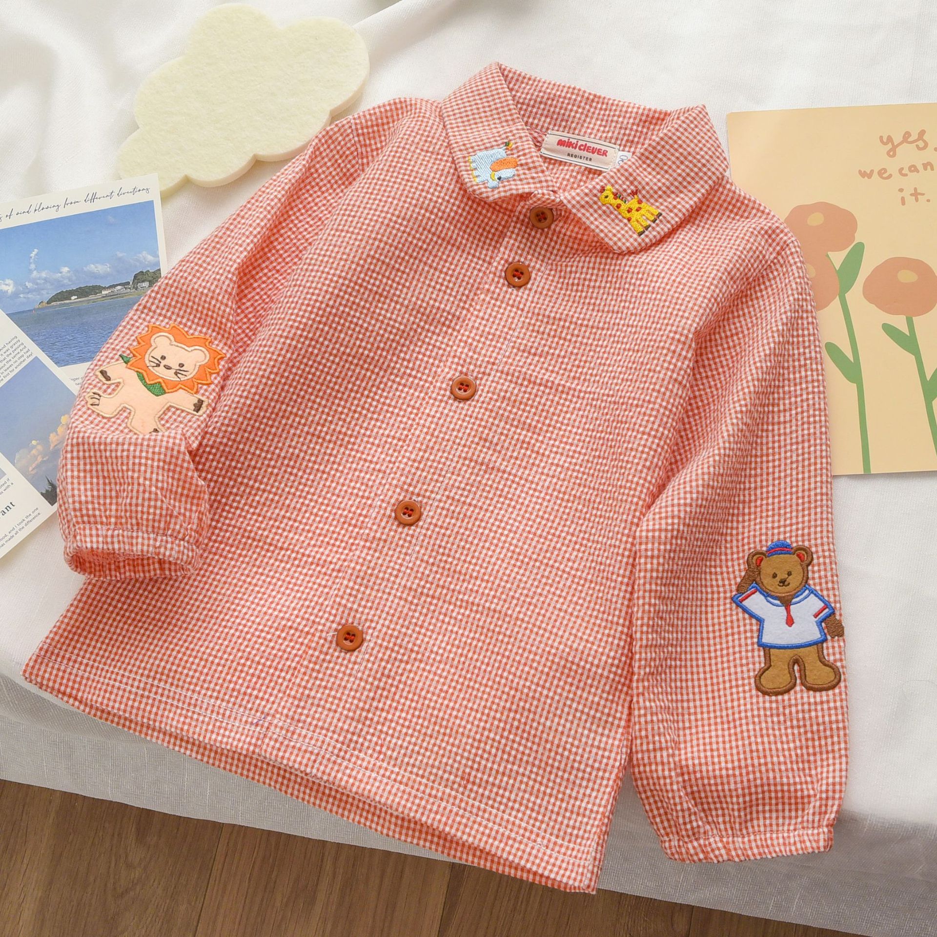 재고 Mikiclever24 여름 새로운 아동복 소년과 소녀 만화 곰 체크 무늬 셔츠 만화 긴 소매 내복 2759