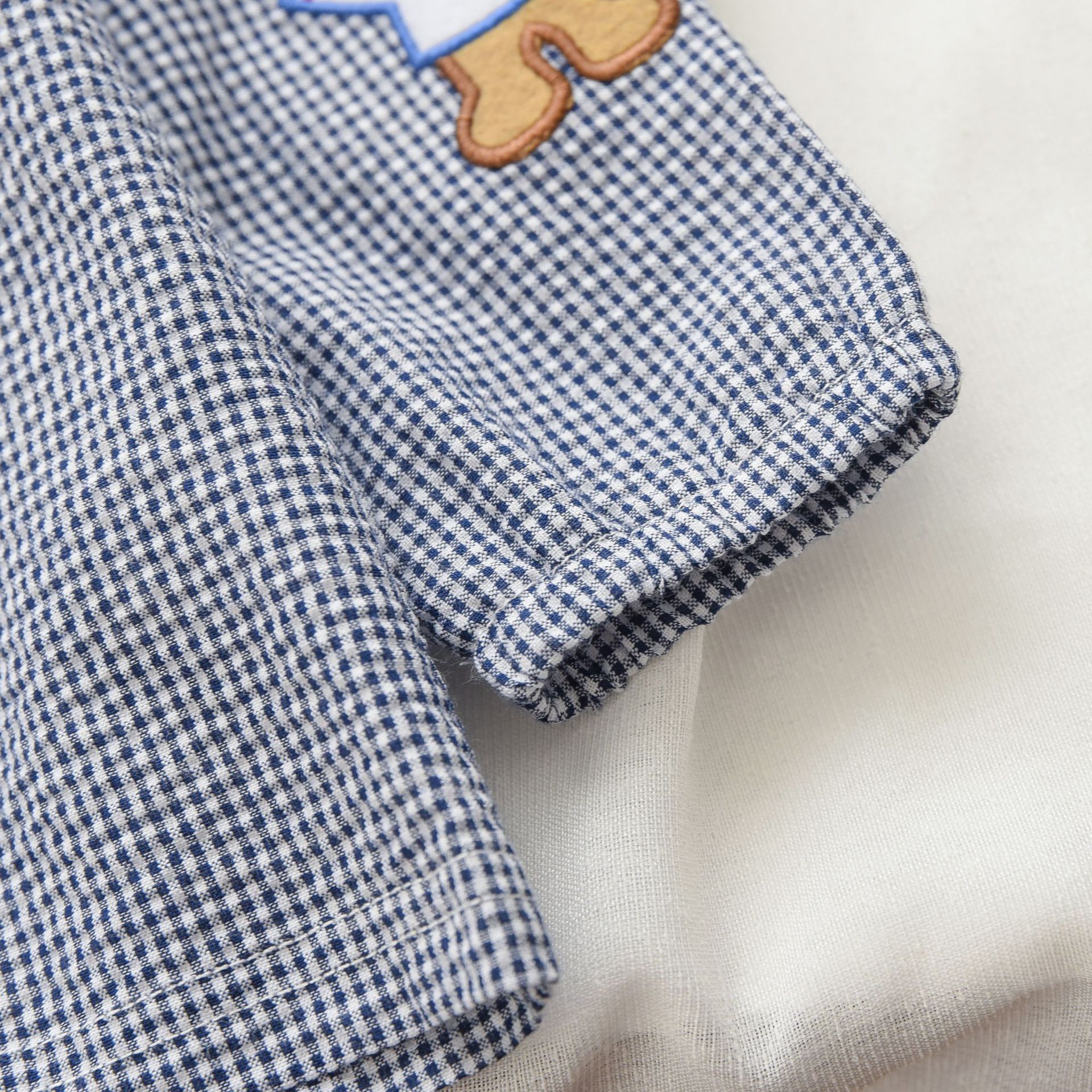 재고 Mikiclever24 여름 새로운 아동복 소년과 소녀 만화 곰 체크 무늬 셔츠 만화 긴 소매 내복 2759스토어 가기