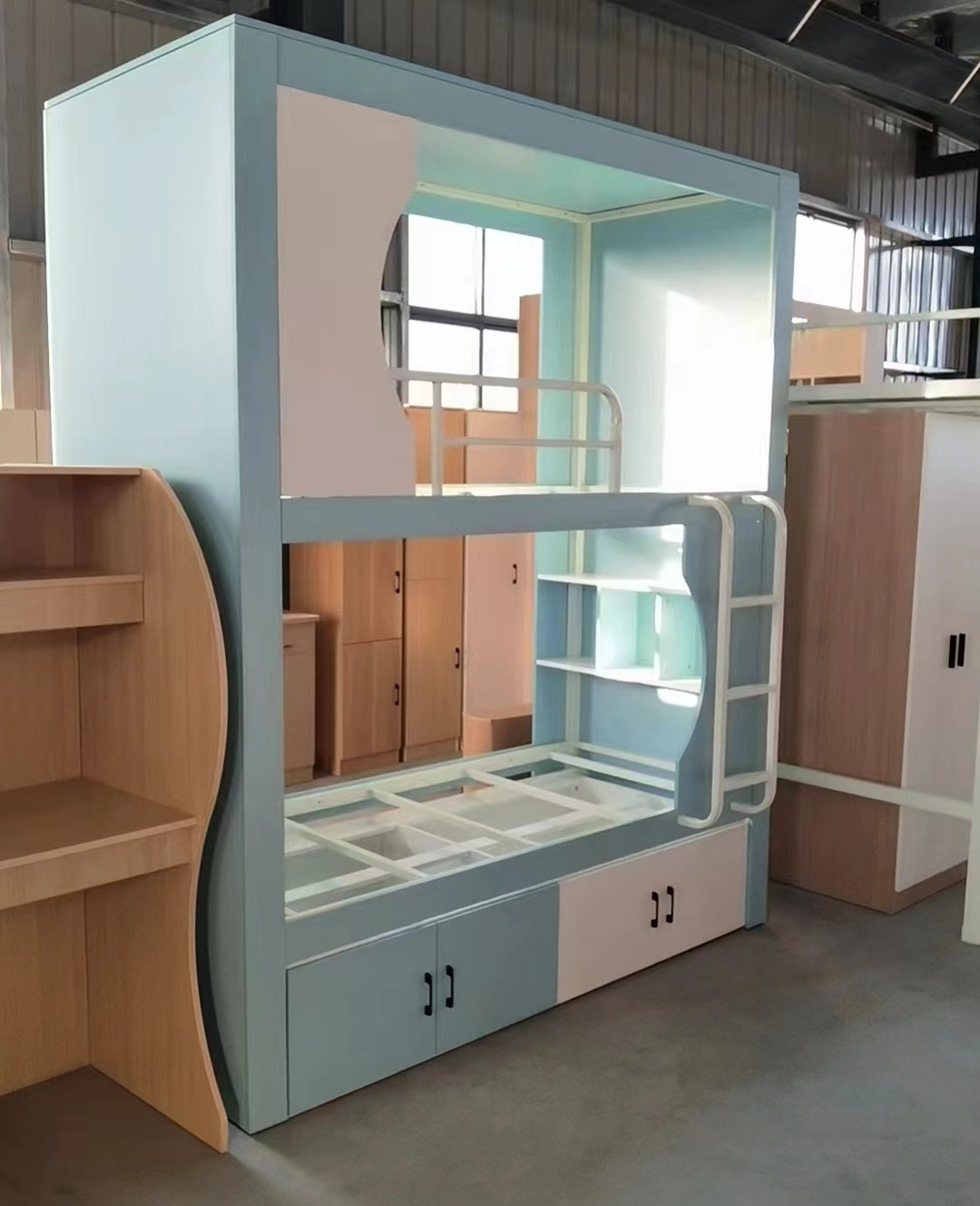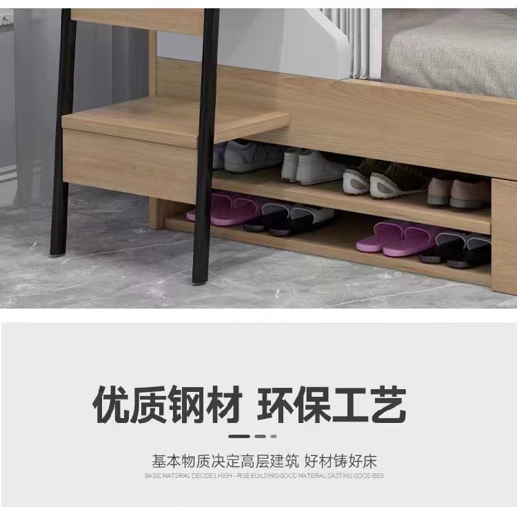 공간 캡슐 상부 및 하부 침대 강철 목재 결합 이층 침대 청소년 아파트 모든 것을 포함하는 침대 학생 기숙사 아파트 침대 높이 및 낮은 침대스토어 가기