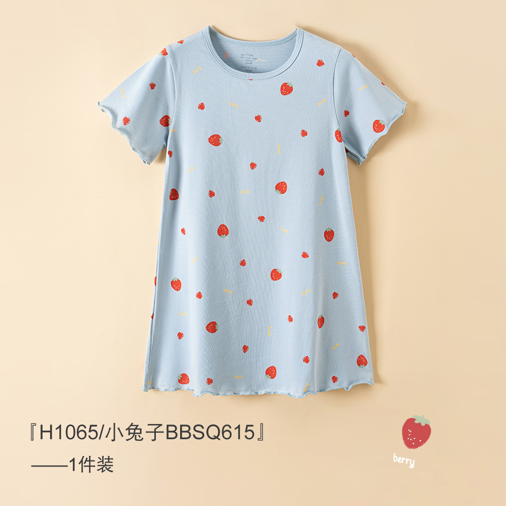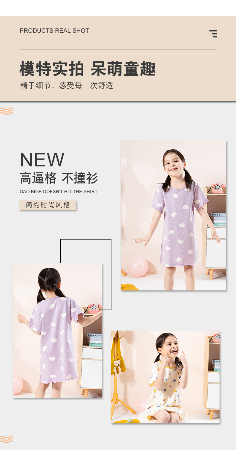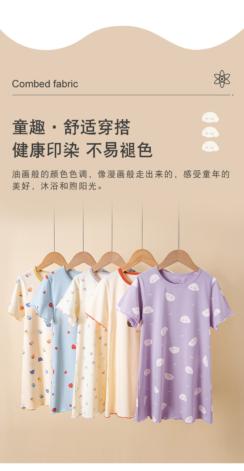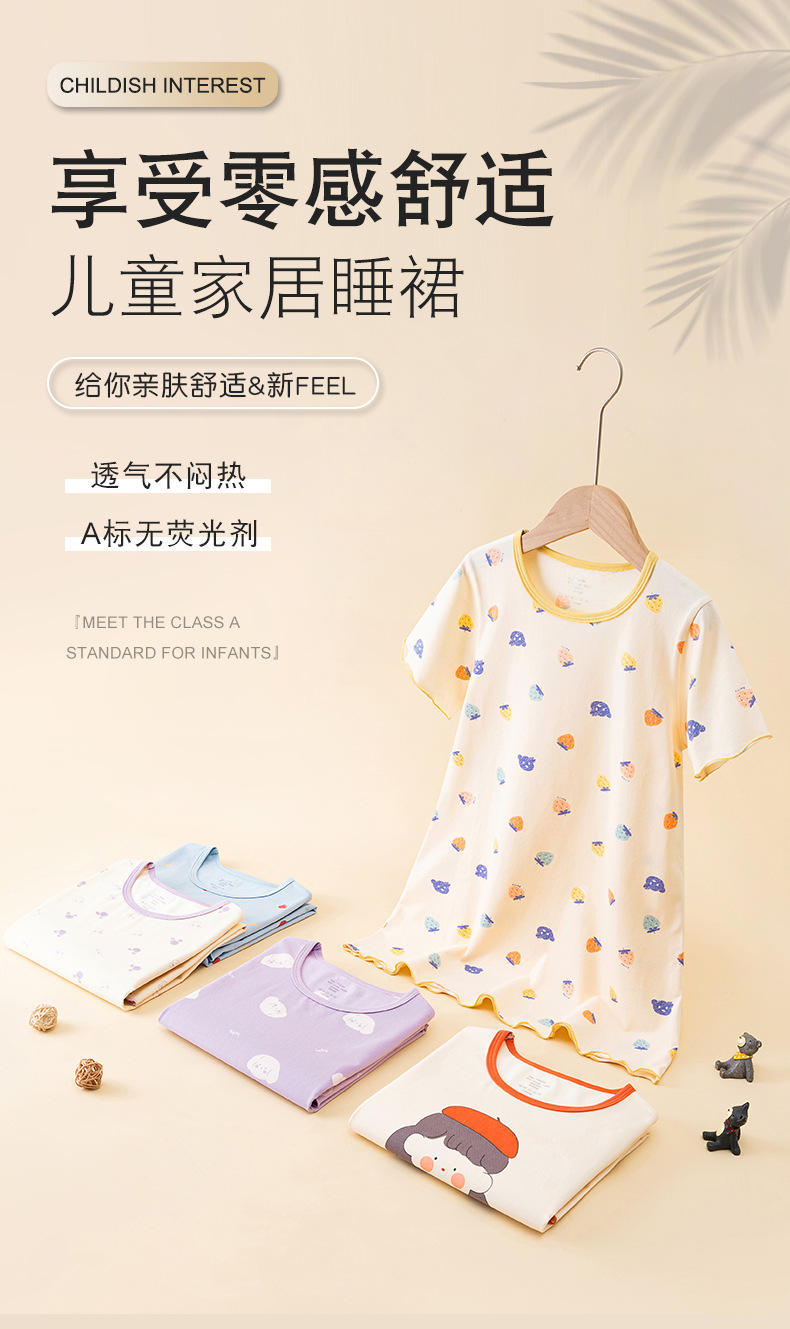 어린이 원피스 2024 여름 얇은 순면 소녀의 레이스 반팔 홈 착용 만화 항균 소녀의 잠옷스토어 가기