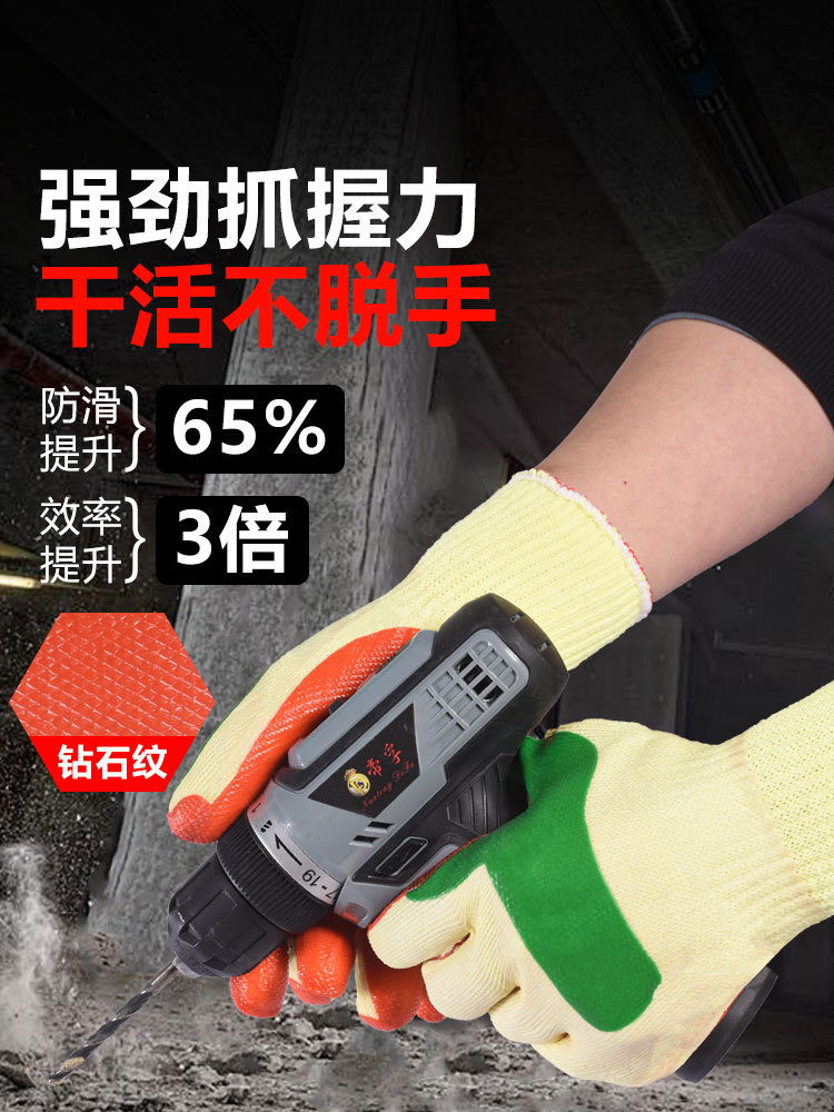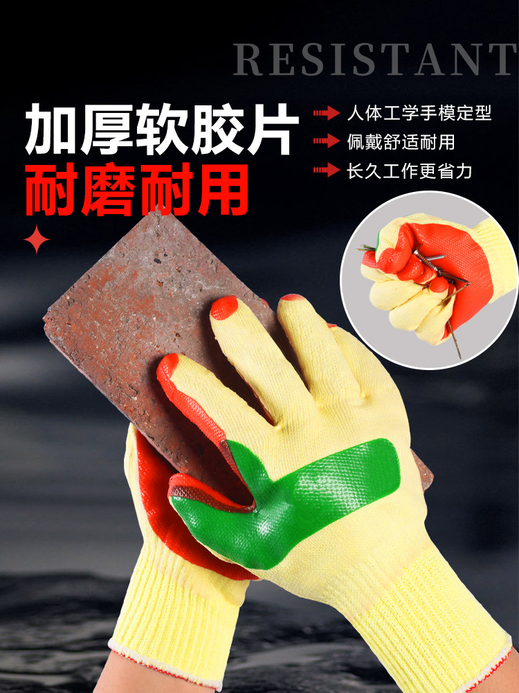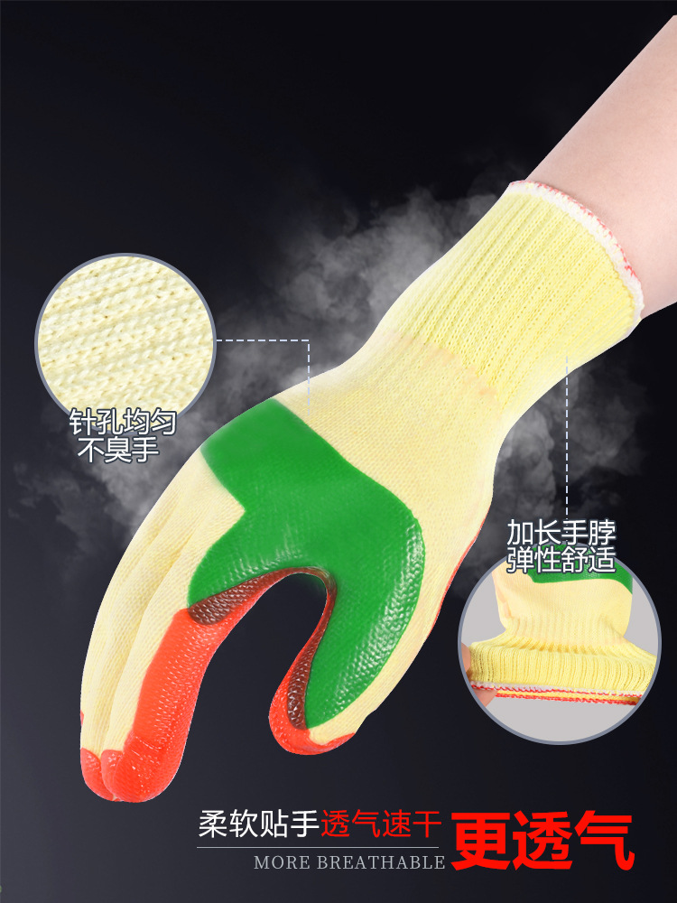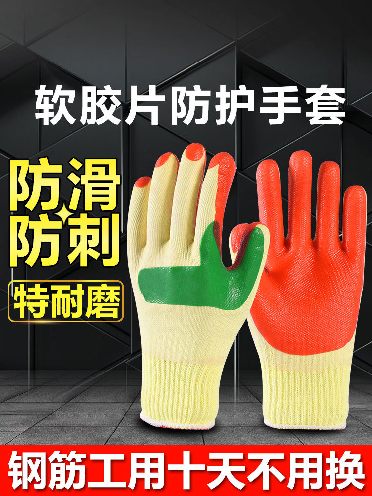 더블 울프 필름 장갑, 건설 현장 철근 작업용, 내마모성, 미끄럼 방지, 편안함, 통기성, 절단 방지, 고무 장갑, 노동 보호스토어 가기