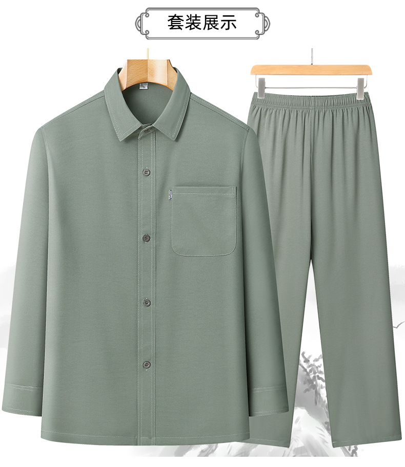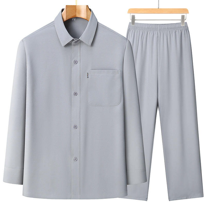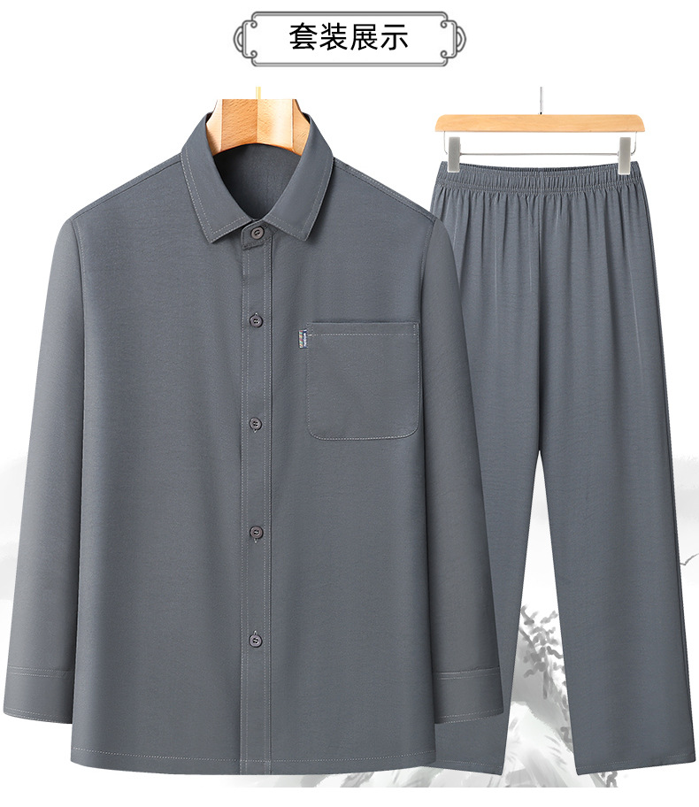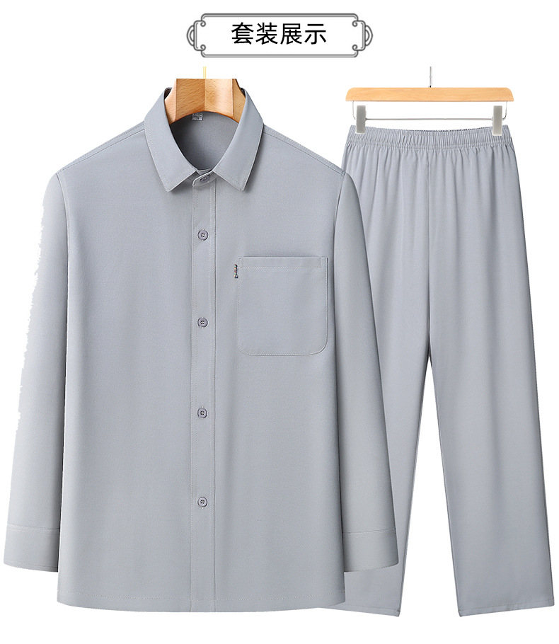 2024 봄과 여름 작은 느슨한 아빠는 남성용 옷깃 세트 스몰 사이즈 캐주얼 중년 및 노인 긴팔 셔츠를 입습니다.스토어 가기
