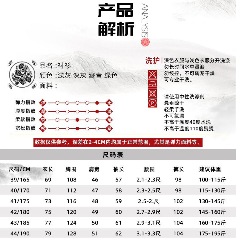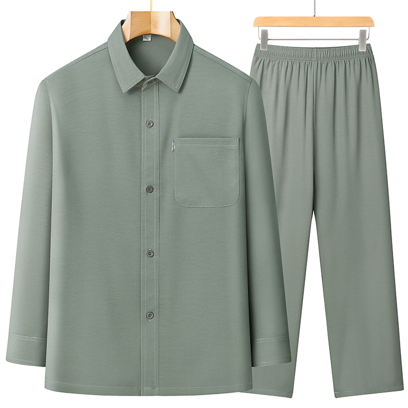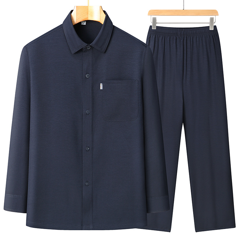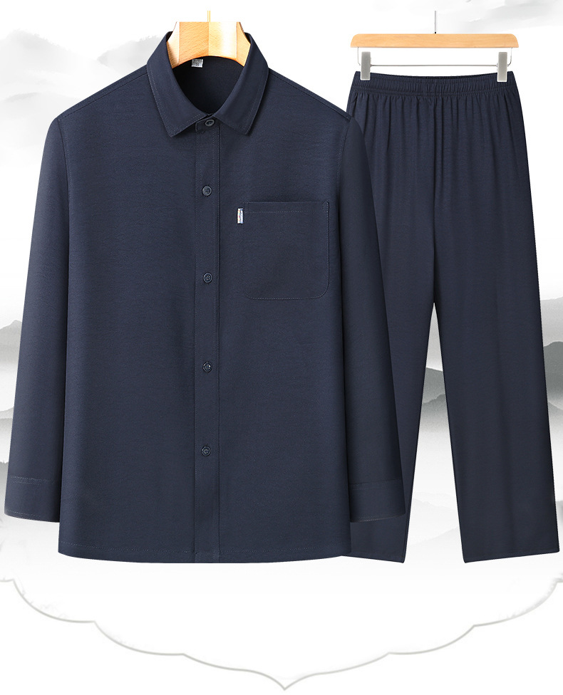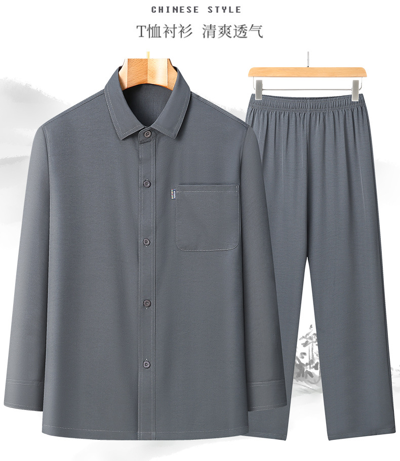 2024 봄과 여름 작은 느슨한 아빠는 남성용 옷깃 세트 스몰 사이즈 캐주얼 중년 및 노인 긴팔 셔츠를 입습니다.스토어 가기